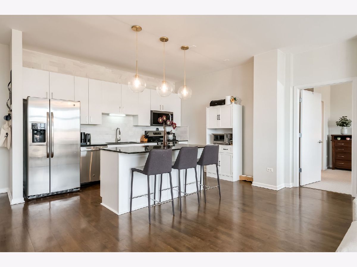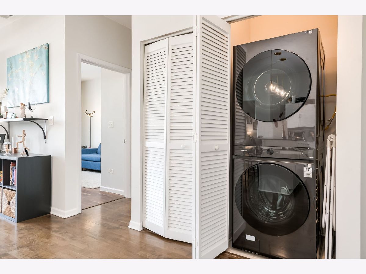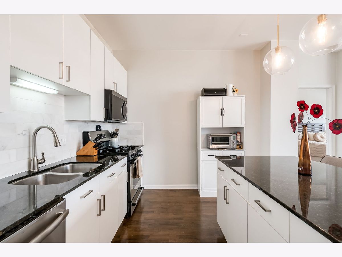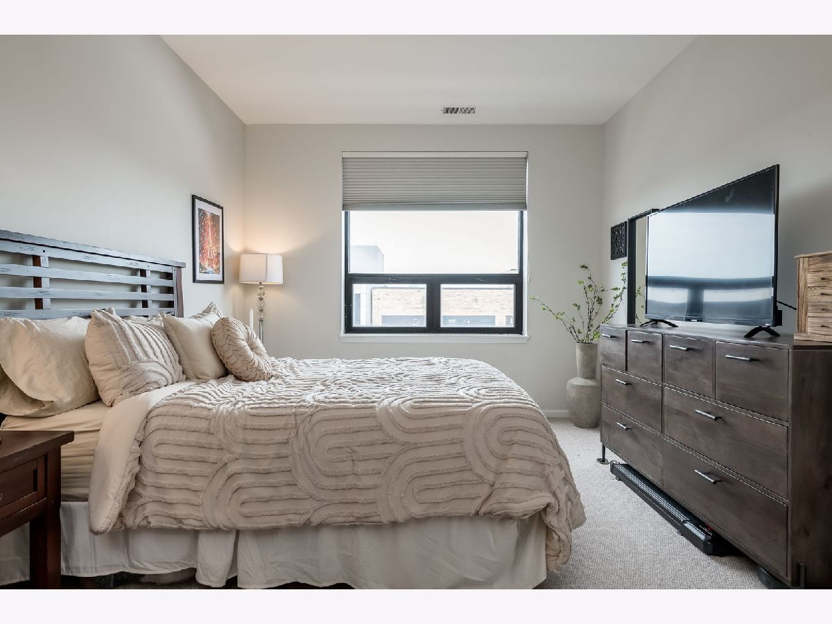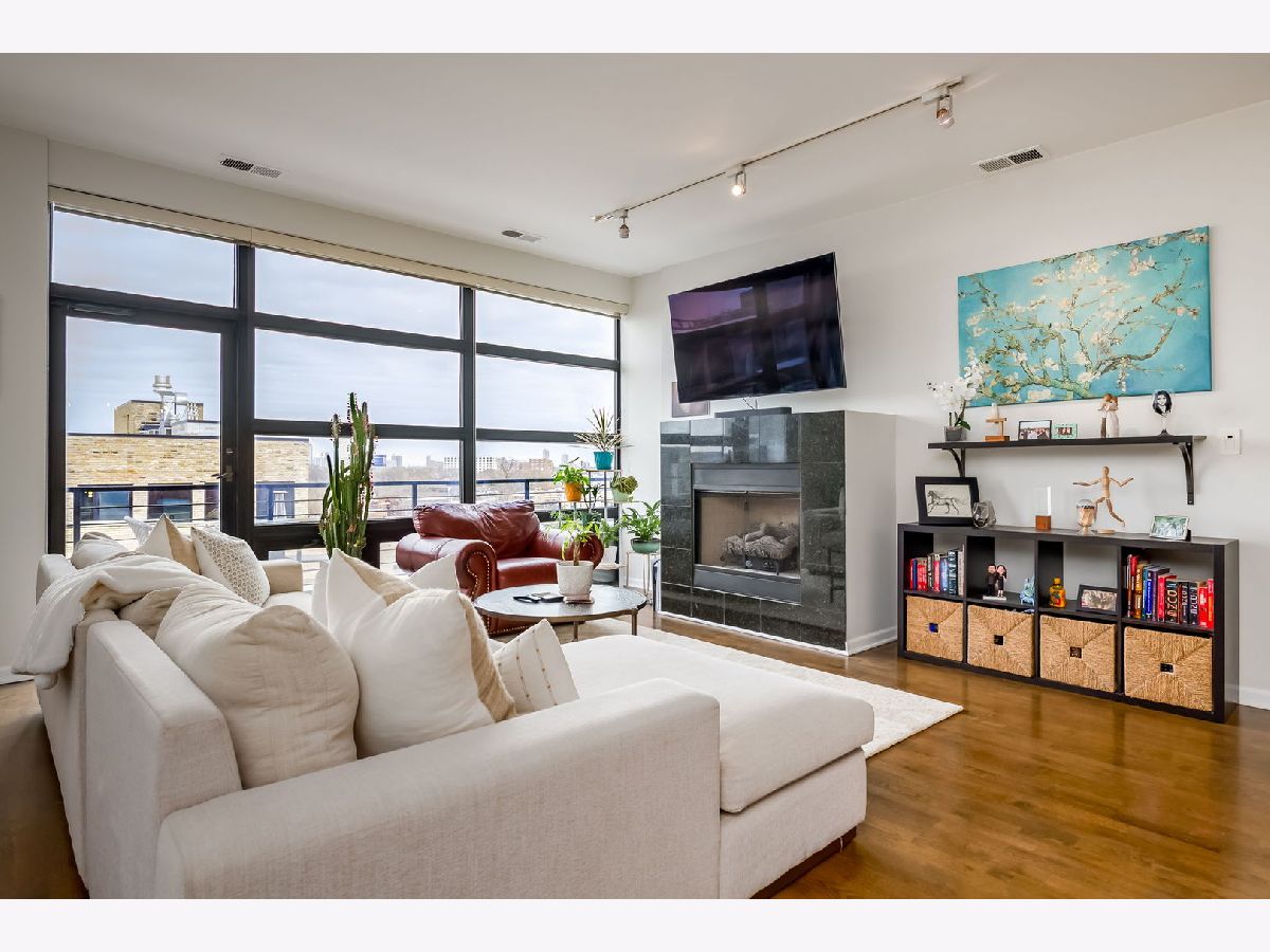 Experience the best of Bucktown living in this thoughtfully designed 2-bedroom, 2-bath penthouse, where soaring 10-foot ceilings and expansive floor-to-ceiling windows fill the home with natural light and showcase an airy, open layout. The inviting living room, anchored by a cozy fireplace, seamlessly extends to a private walkout balcony-perfect for relaxing or entertaining. The spacious kitchen is both stylish and functional, featuring a large island, granite countertops, white cabinetry, stainless steel appliances, and recent updates including a new sink (2026) and microwave (2026). The primary bedroom offers a true escape with a generous walk-in closet and a spa-like ensuite bath with double sinks and an enclosed shower. The second bedroom provides flexibility for guests or a home office, while a separate full bath with a soaking tub serves the home, offering both comfort and privacy. Thoughtful updates throughout include a new HVAC system (2022), new washer and dryer (2025), an updated bathroom vanity and sink (2022), updated second bedroom flooring (2021), and freshly painted walls (2026), ensuring a move-in-ready experience. This home is further enhanced by an assigned rooftop space and one deeded garage parking space with an additional storage cage. Conveniently located in the heart of Wicker Park, within walking distance to numerous restaurants, cafes, and the North Ave Blue Line EL stop, this penthouse offers the perfect balance of comfort, style, and city living.