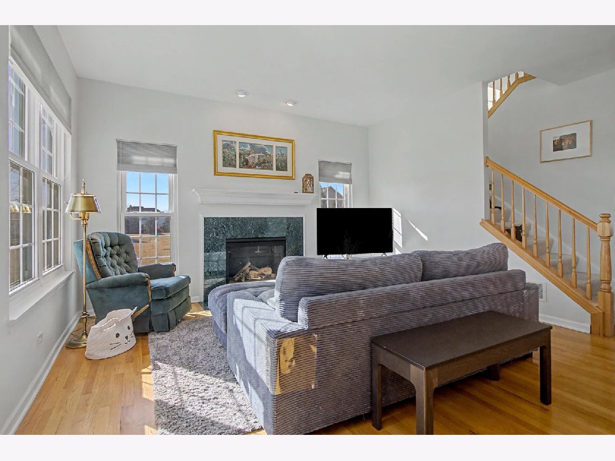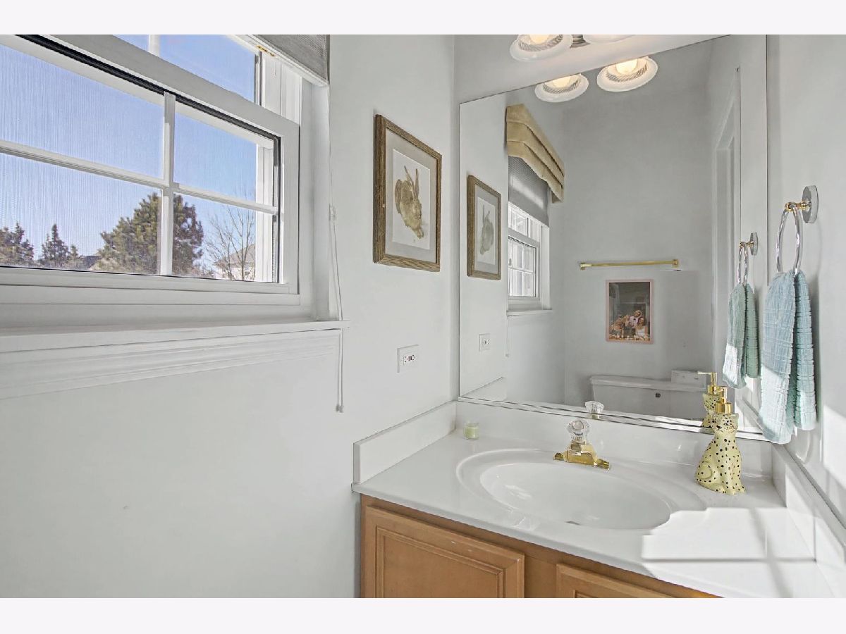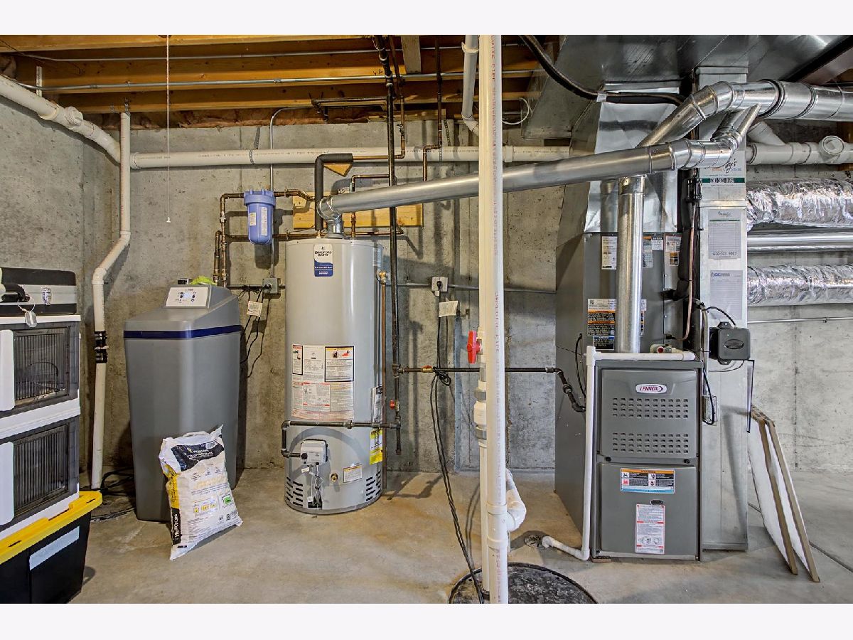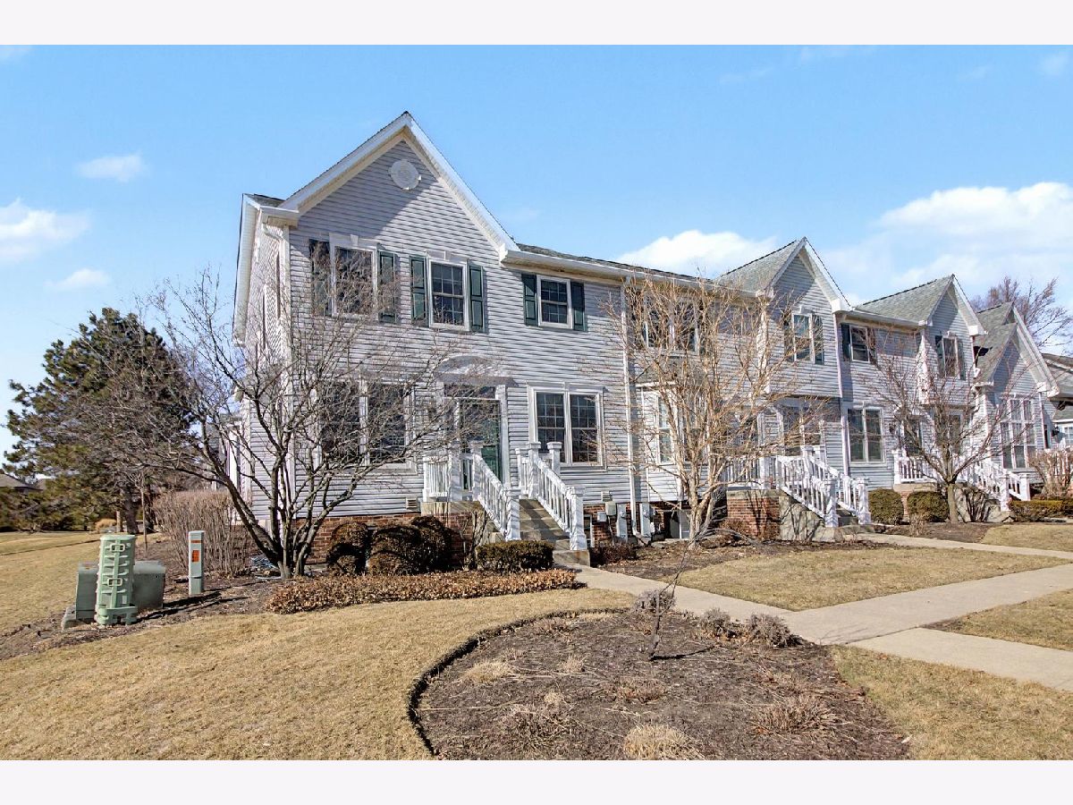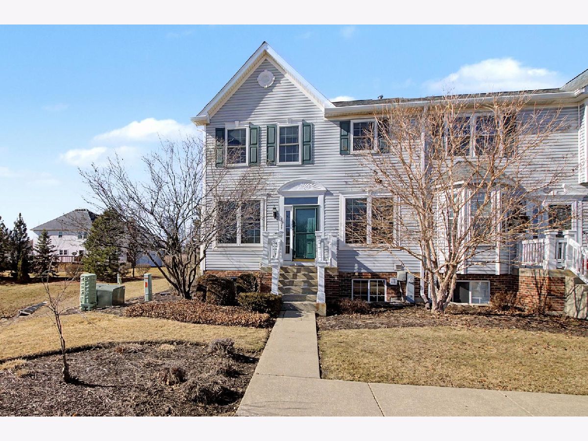 Come see this beautiful former builder's model end unit townhouse in a quiet and comfortable neighborhood located just minutes away from Kirk Road and I-88. The main level features 9 foot ceilings and wood flooring, an inviting marble fireplace for the living room, a formal dining space, ample kitchen cabinetry with center island and butler's pantry, and a lovely breakfast nook with a bay window view of open landscape. A laundry and mud room accesses the garage and is adjacent to a powder room set off the kitchen. The second level boasts an open master suite with vaulted ceiling, including a large walk-in closet and spacious bathroom with his-and-her sinks with a separate Whirlpool tub and shower. Two additional generous bedrooms and second full bathroom are found across the open upstairs area. The full unfinished basement has two large sized windows and a new HVAC system and water softener. Additionally, the basement contains a rough-in to allow for endless opportunities to create a workout space, office, or finished living area. The back patio is paved and fenced in for privacy and entertainment. Recent updates include new windows (2020), new HVAC system (2025), new water softener (2025), new gas water heater (2025), new roof (2019), new garage motor (2025), and new garbage disposal (2023). Come and see this lovely space because it won't last long! Accepting offers now!