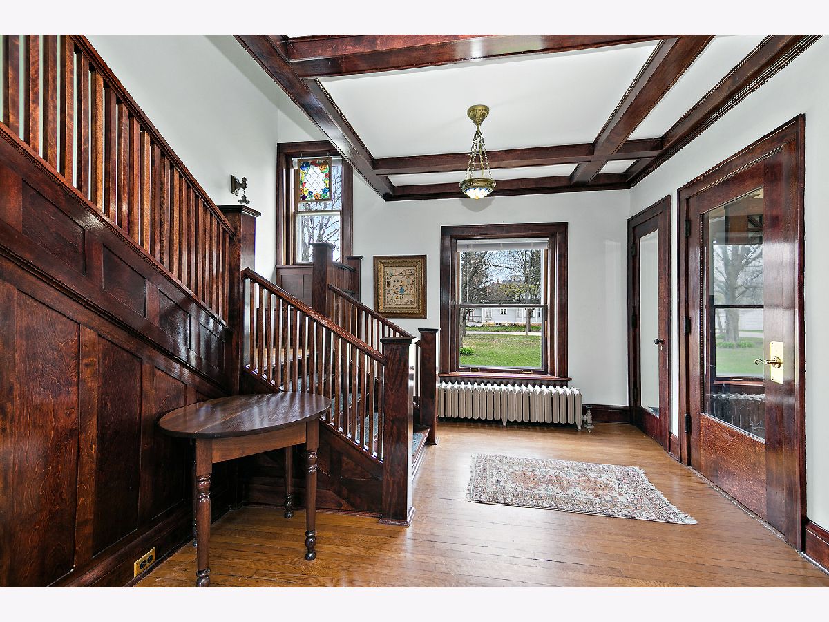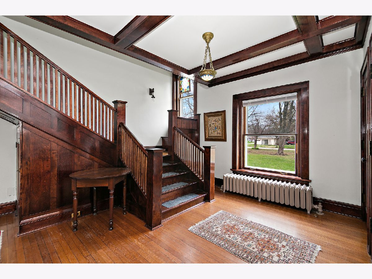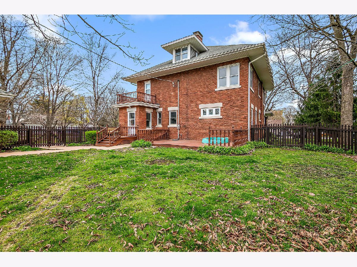 First Time Offered in 40 Years | Timeless 1912 Brick Foursquare on Over 1/2 Acre Available for the first time in over 40 years, this stately all brick American Foursquare is a rare opportunity to own a truly special piece of history. Situated on the corner of two city lots totaling over 1/2 acre, the property makes a striking first impression with lighted brick pillars marking each corner, mature trees, and commanding curb appeal. Inside, extraordinary original craftsmanship has been beautifully preserved, including gorgeous wood trim, coffered ceilings, original glass doorknobs, stunning Quezal lighting, and rich built-ins throughout. Expansive living and dining spaces center around a classic brick fireplace, while the enclosed front porch offers additional year round living space full of charm. The custom kitchen blends modern function with historic warmth, offering abundant cabinetry and workspace while complementing the home's timeless character. With 5 bedrooms and 2.5 baths, this home offers exceptional flexibility. The finished third floor features a private bedroom and full bath, ideal for guests, a private suite, or office. A separate maid's staircase, balcony off one bedroom, and finished basement recreation space add even more versatility and character. Outside, enjoy the fenced yard, deck, detached brick garage, and straight-through driveway access to the alley, a rare convenience for a historic home of this caliber. A once in a generation opportunity, this remarkable home offers over 2,500 sq ft of preserved architecture, warmth, and soul for the buyer who values timeless craftsmanship and history.