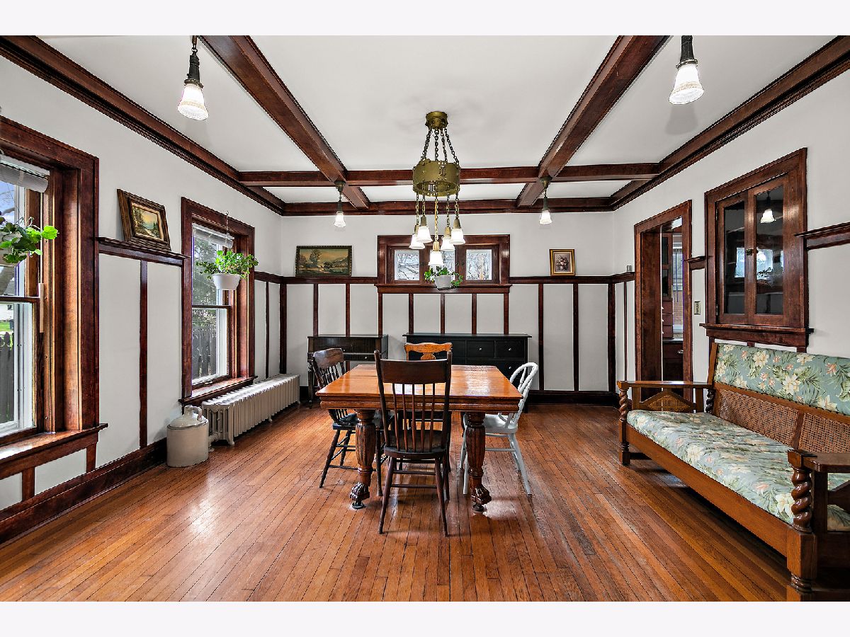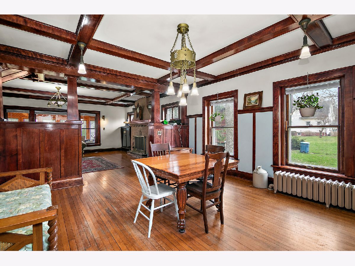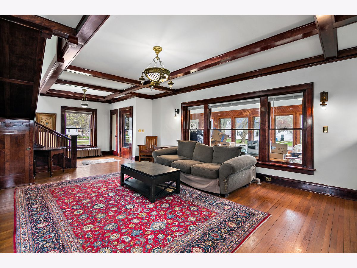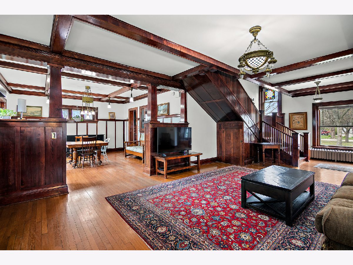First Time Offered in 40 Years | Timeless 1912 Brick Foursquare on Over 1/2 Acre Available for the first time in over 40 years, this stately all brick American Foursquare is a rare opportunity to own a truly special piece of history. Situated on the corner of two city lots totaling over 1/2 acre, the property makes a striking first impression with lighted brick pillars marking each corner, mature trees, and commanding curb appeal. Inside, extraordinary original craftsmanship has been beautifully preserved, including gorgeous wood trim, coffered ceilings, original glass doorknobs, stunning Quezal lighting, and rich built-ins throughout. Expansive living and dining spaces center around a classic brick fireplace, while the enclosed front porch offers additional year round living space full of charm. The custom kitchen blends modern function with historic warmth, offering abundant cabinetry and workspace while complementing the home's timeless character. With 5 bedrooms and 2.5 baths, this home offers exceptional flexibility. The finished third floor features a private bedroom and full bath, ideal for guests, a private suite, or office. A separate maid's staircase, balcony off one bedroom, and finished basement recreation space add even more versatility and character. Outside, enjoy the fenced yard, deck, detached brick garage, and straight-through driveway access to the alley, a rare convenience for a historic home of this caliber. A once in a generation opportunity, this remarkable home offers over 2,500 sq ft of preserved architecture, warmth, and soul for the buyer who values timeless craftsmanship and history.