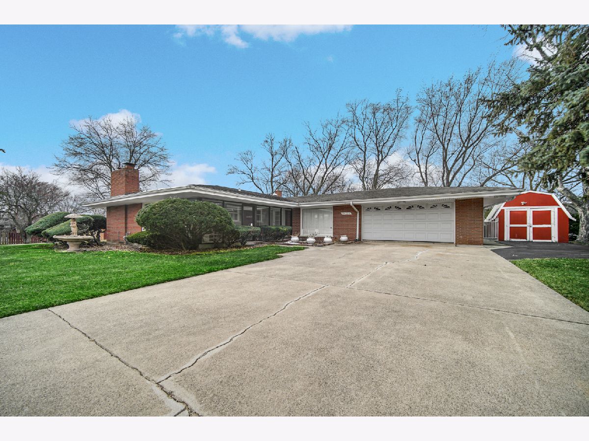Poised on an expansive 1.07-acre estate, this distinguished brick ranch delivers timeless elegance and exceptional versatility, perfectly suited for refined related or multigenerational living. A newly enclosed porch with custom shades sets a sophisticated tone, leading into a sunlit marble foyer accented by a dramatic skylight. The living room showcases a statement fireplace offering both gas and wood-burning options, blending comfort with classic charm. The thoughtfully designed eat-in kitchen features stainless steel appliances and a double oven, seamlessly connecting to an impressive great room that frames serene backyard views. Step outside to a private resort-style retreat highlighted by a spectacular 9-foot-deep, 40,000-gallon illuminated in-ground pool, complete with a new liner installed in 2022-an ideal setting for entertaining or tranquil relaxation. The fully finished lower level elevates the home's functionality, offering a wood-burning fireplace, second kitchen, elegant entertainment space with wet bar, laundry room, and a spa-inspired three-quarter bath with whirlpool tub, along with possible 2 bedrooms, office, or den. Completing this remarkable offering are an attached two-car garage featuring a half bath plus a detached three-car garage (25' x 30'). An additional back lot enhances the estate with vintage style playground. Major mechanicals-including roof, furnace, A/C, and hot water tank-are approximately 11 years old, ensuring peace of mind while enjoying this exceptional property. Schedule Your Tour Today!!