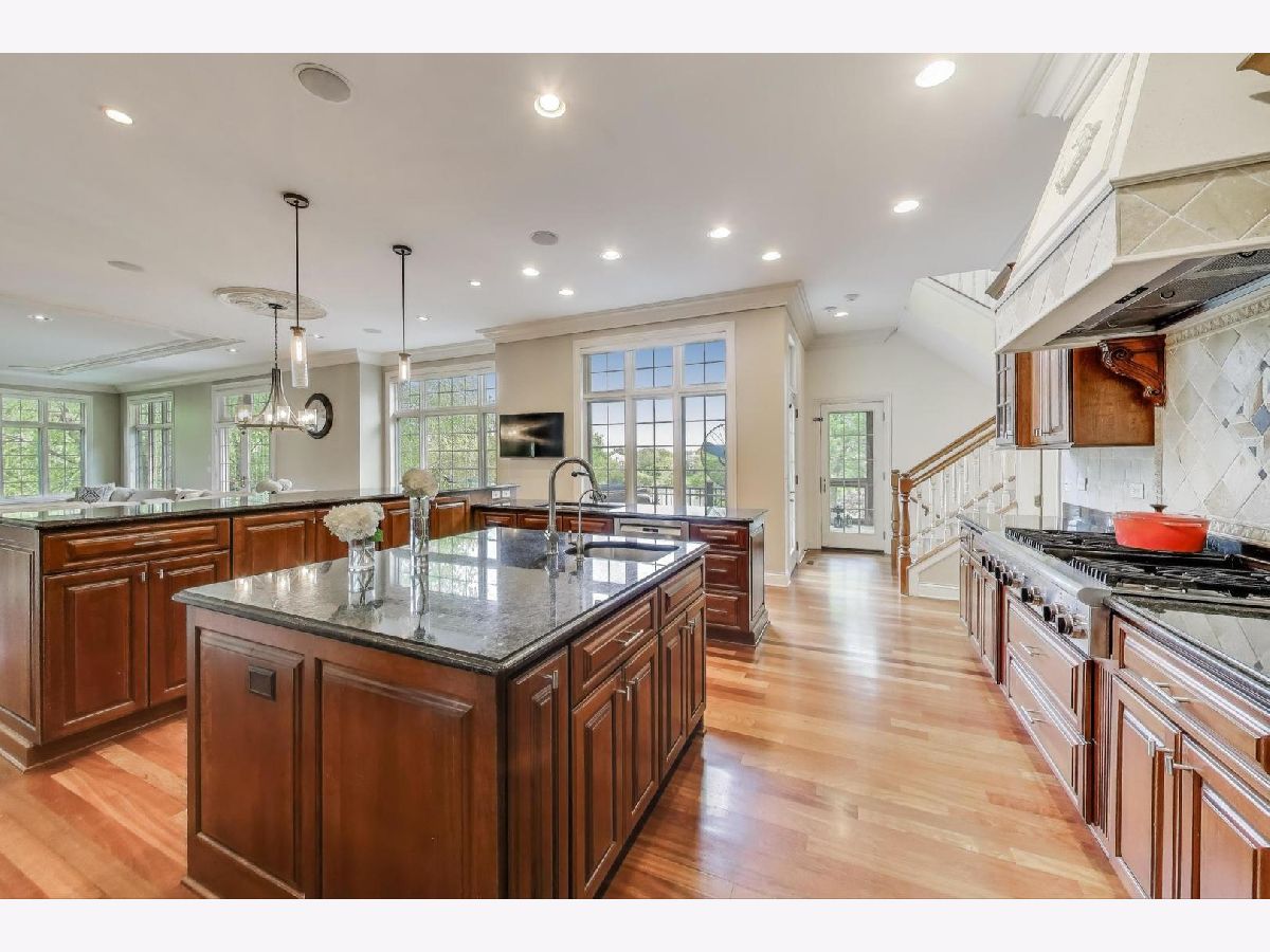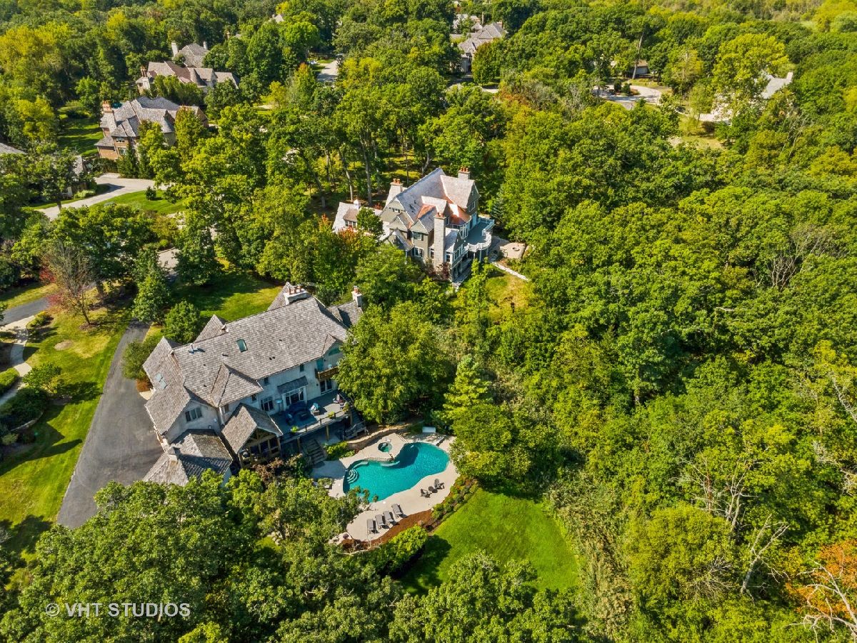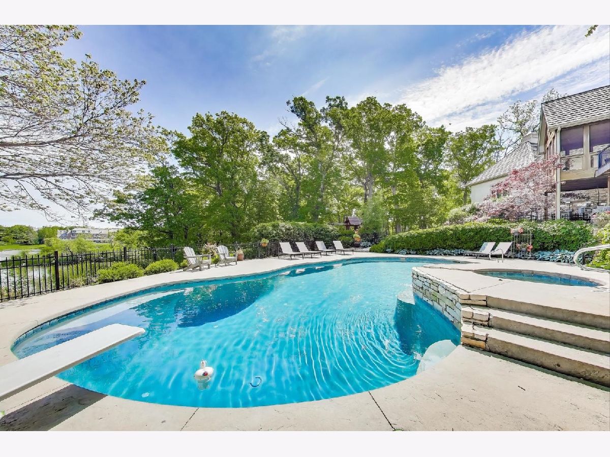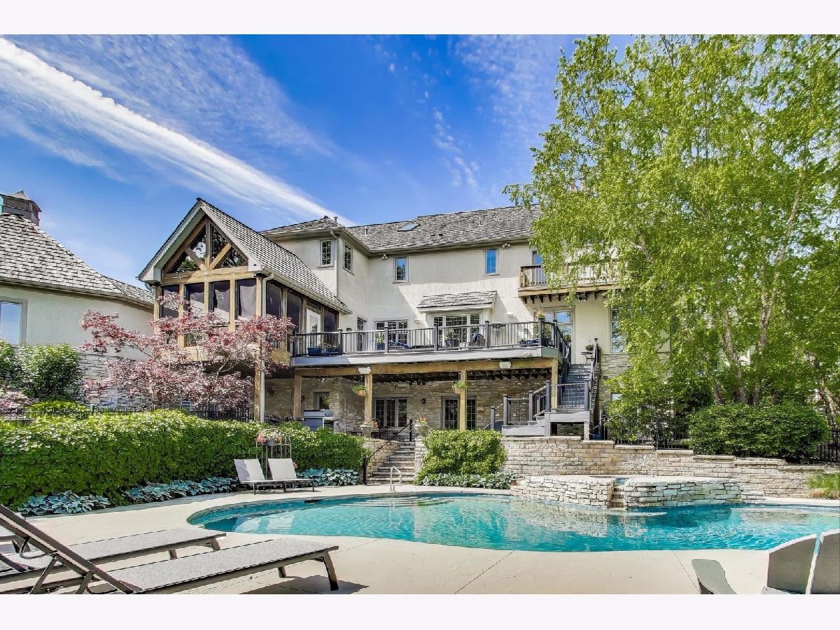 Nestled within the prestigious Tall Oaks Of Kildeer community, this exquisite home graces one of its most breathtaking lots, spanning 1.3 acres on a quite cul-de-sac, boasting captivating views of the 35-acre lake. Crafted with meticulous attention to detail, this custom residence exudes elegance and sophistication, sure to captivate even the most discerning buyers. Step through the grand foyer, where a double-sided stone fireplace sets the tone for luxurious living. The seamless flow leads to inviting spaces for both formal gatherings and casual entertainment, including a sitting area and a formal dining space complemented by a convenient butler's pantry. The heart of the home unfolds into an expansive kitchen and family room area, offering views of the lake and mature trees. A chef's delight, the gourmet kitchen features stainless-steel appliances, brand new Thermador cook-top, dual sinks, a generous island space, breakfast bar, and a spacious walk-in pantry. Adjacent, the inviting family room invites relaxation with its cozy fireplace and seamless access to the outdoor area, complete with newer Trex decking and exterior lighting. The main level further boasts a screened-in porch, a wood-paneled office with a fireplace, a versatile craft room, a mud/laundry room, back staircase, and 1.5 baths. Retreat to the second level, adorned with all-new flooring, the primary suite features a private balcony, his-and-her walk-in closets, and a spa-like bath featuring double sinks, a Jacuzzi tub, separate shower, and heated floors. Four additional bedrooms, two with en-suites and two sharing a Jack & Jill bathroom. The walk-out basement, with all-new flooring, presents the perfect setting for indoor-outdoor living, boasting a recreation room with fireplace, wet bar, workout room, theater room, bedroom, and 1.5 baths. Outside, the stunning backyard is a entertainer's paradise, featuring an in-ground pool with spa, sun-filled deck, and shaded patio, all overlooking picturesque views. Completing this exceptional residence is an oversized 4.5-car garage, catering to all your storage needs. With numerous updates including newer HVAC systems, water filtration system, decking, flooring, and more. Ideally located close to Deer Park and historic downtown Long Grove. Easy access to shopping, dining, major highways, A+ schools, and Stevenson High School.