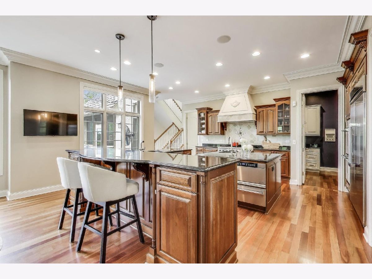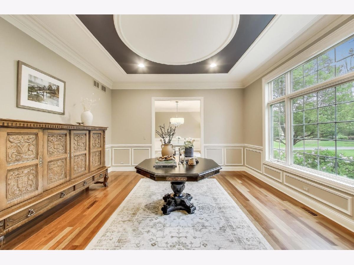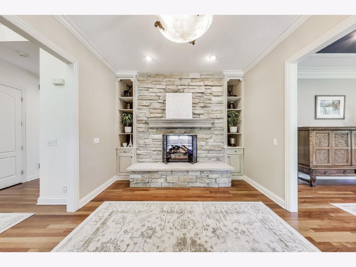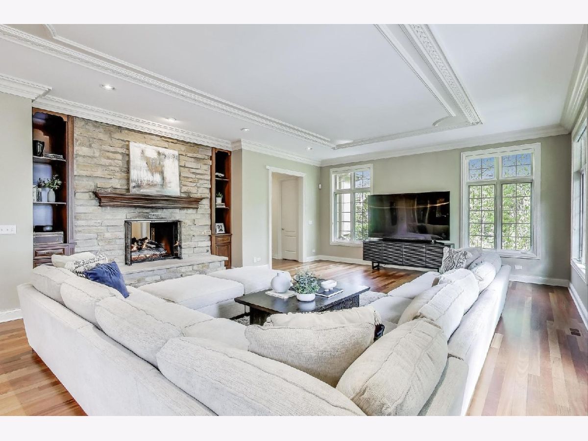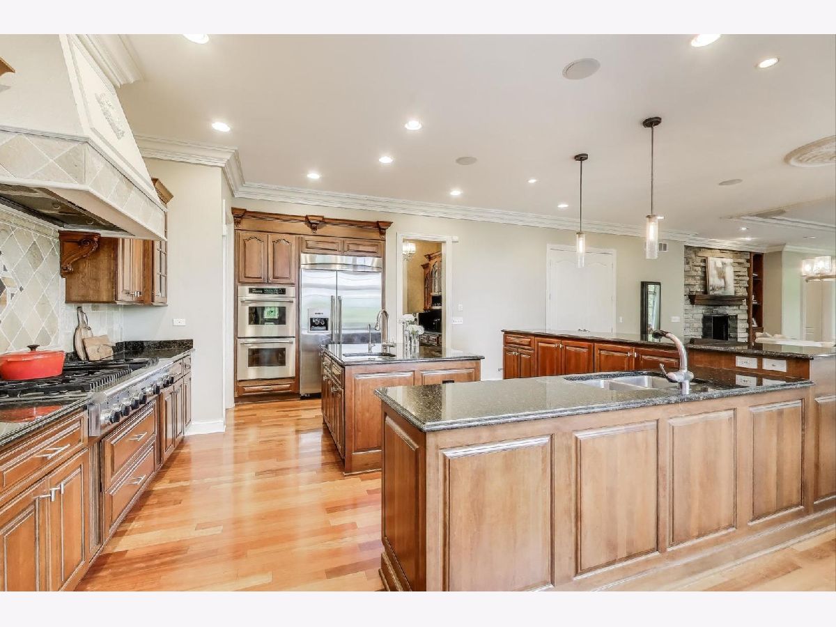 Nestled within the prestigious Tall Oaks Of Kildeer community, this exquisite home graces one of its most breathtaking lots, spanning 1.3 acres on a quite cul-de-sac, boasting captivating views of the 35-acre lake. Crafted with meticulous attention to detail, this custom residence exudes elegance and sophistication, sure to captivate even the most discerning buyers. Step through the grand foyer, where a double-sided stone fireplace sets the tone for luxurious living. The seamless flow leads to inviting spaces for both formal gatherings and casual entertainment, including a sitting area and a formal dining space complemented by a convenient butler's pantry. The heart of the home unfolds into an expansive kitchen and family room area, offering views of the lake and mature trees. A chef's delight, the gourmet kitchen features stainless-steel appliances, brand new Thermador cook-top, dual sinks, a generous island space, breakfast bar, and a spacious walk-in pantry. Adjacent, the inviting family room invites relaxation with its cozy fireplace and seamless access to the outdoor area, complete with newer Trex decking and exterior lighting. The main level further boasts a screened-in porch, a wood-paneled office with a fireplace, a versatile craft room, a mud/laundry room, back staircase, and 1.5 baths. Retreat to the second level, adorned with all-new flooring, the primary suite features a private balcony, his-and-her walk-in closets, and a spa-like bath featuring double sinks, a Jacuzzi tub, separate shower, and heated floors. Four additional bedrooms, two with en-suites and two sharing a Jack & Jill bathroom. The walk-out basement, with all-new flooring, presents the perfect setting for indoor-outdoor living, boasting a recreation room with fireplace, wet bar, workout room, theater room, bedroom, and 1.5 baths. Outside, the stunning backyard is a entertainer's paradise, featuring an in-ground pool with spa, sun-filled deck, and shaded patio, all overlooking picturesque views. Completing this exceptional residence is an oversized 4.5-car garage, catering to all your storage needs. With numerous updates including newer HVAC systems, water filtration system, decking, flooring, and more. Ideally located close to Deer Park and historic downtown Long Grove. Easy access to shopping, dining, major highways, A+ schools, and Stevenson High School.