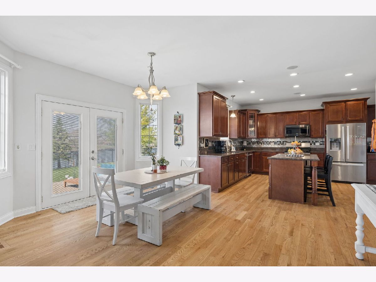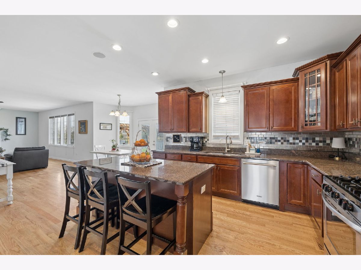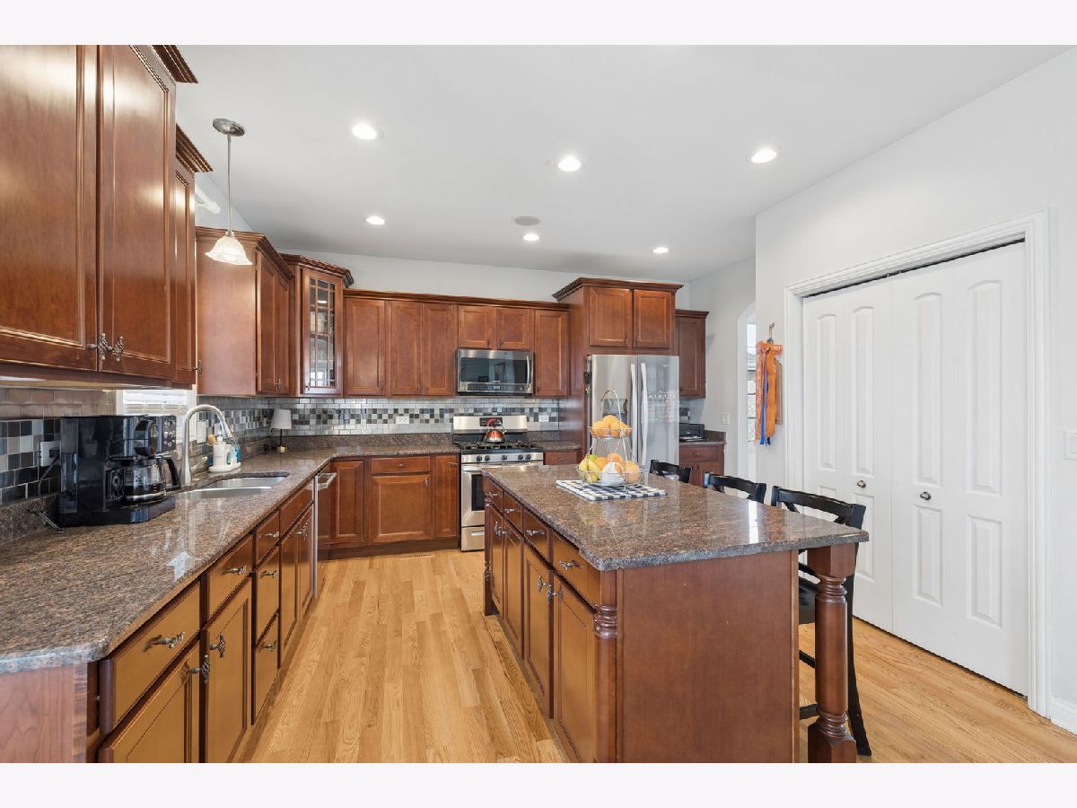 Prepare to be amazed by this 6 bedroom home located on a premium pond view lot in the highly sought-after Water Chase subdivision of New Lenox. Offering over 4,000 square feet of finished living space and a backyard with serene, peaceful views, this home truly has everything you could want and more. The main level offers a practical and well-designed layout. Upon entry, you're welcomed by beautiful archways framing the front living and dining room, with refinished hardwood floors flowing throughout. The eat-in kitchen features an abundance of cabinet space, oversized island with seating, granite countertops, cherry cabinetry, stainless steel appliances, and a pantry closet. It opens seamlessly to the living room, complete with a cozy gas fireplace and stunning backyard views, creating the perfect setup for both everyday living and entertaining. Upstairs, you'll find five generously sized bedrooms. The primary suite overlooks the water and includes a walk-in closet and a spacious en suite bathroom with a jacuzzi tub and separate shower. The secondary hallway bathroom has been fully updated and offers a double vanity. The finished basement expands your living space even further, featuring a 6th bedroom, full bathroom, kitchenette, and a secondary living area with an additional fireplace. Ideal for related living or hosting guests, this lower level offers flexibility for a variety of needs. Step outside to a backyard that truly stands out. Whether you're enjoying a quiet morning coffee overlooking the pond or hosting gatherings with friends and family, this space delivers. Complete with a brick paver patio, pergola, fire pit, and fully fenced in, designed for both relaxation and entertaining. The 3-car garage adds even more functionality, separate heat and A/C in 3rd car portion, perfect for a workshop or hobby space. Prime location in a community known for its walking trails, parks, pickleball courts, and more, all within an award-winning school district, this is one you won't want to miss.