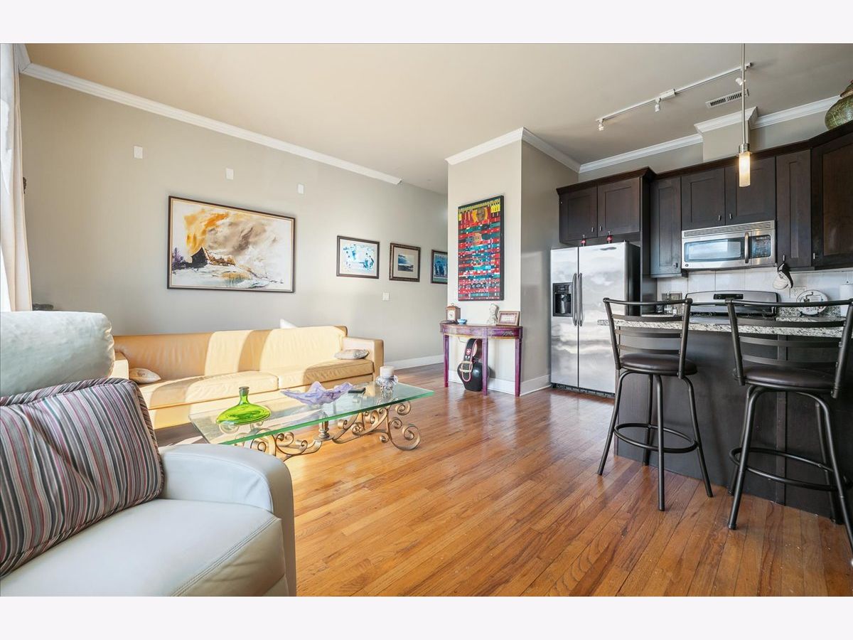 Spacious and beautifully maintained 1-bedroom, 1-bath condo in a brick elevator building finished with contemporary elegance. This open floor plan offers hardwood floors, ample closet space, and a stainless steel kitchen featuring granite countertops, pantry, and a breakfast bar that flows seamlessly into the bright living area. Enjoy the convenience of in-unit laundry and step out onto your private, sun-filled balcony - perfect for morning coffee or summer BBQs. One exterior parking space included. Ideally located just steps to 31st Street Beach and Harbor, Dunbar Park, Green Line, bus stops, Metra, coffee shops, and grocery stores, with easy access to IIT campus and major transportation. A fantastic opportunity for comfortable city living in a prime South Loop location. Investor Friendly. Virtual Tour & Floor Plan available upon request. As-Is.