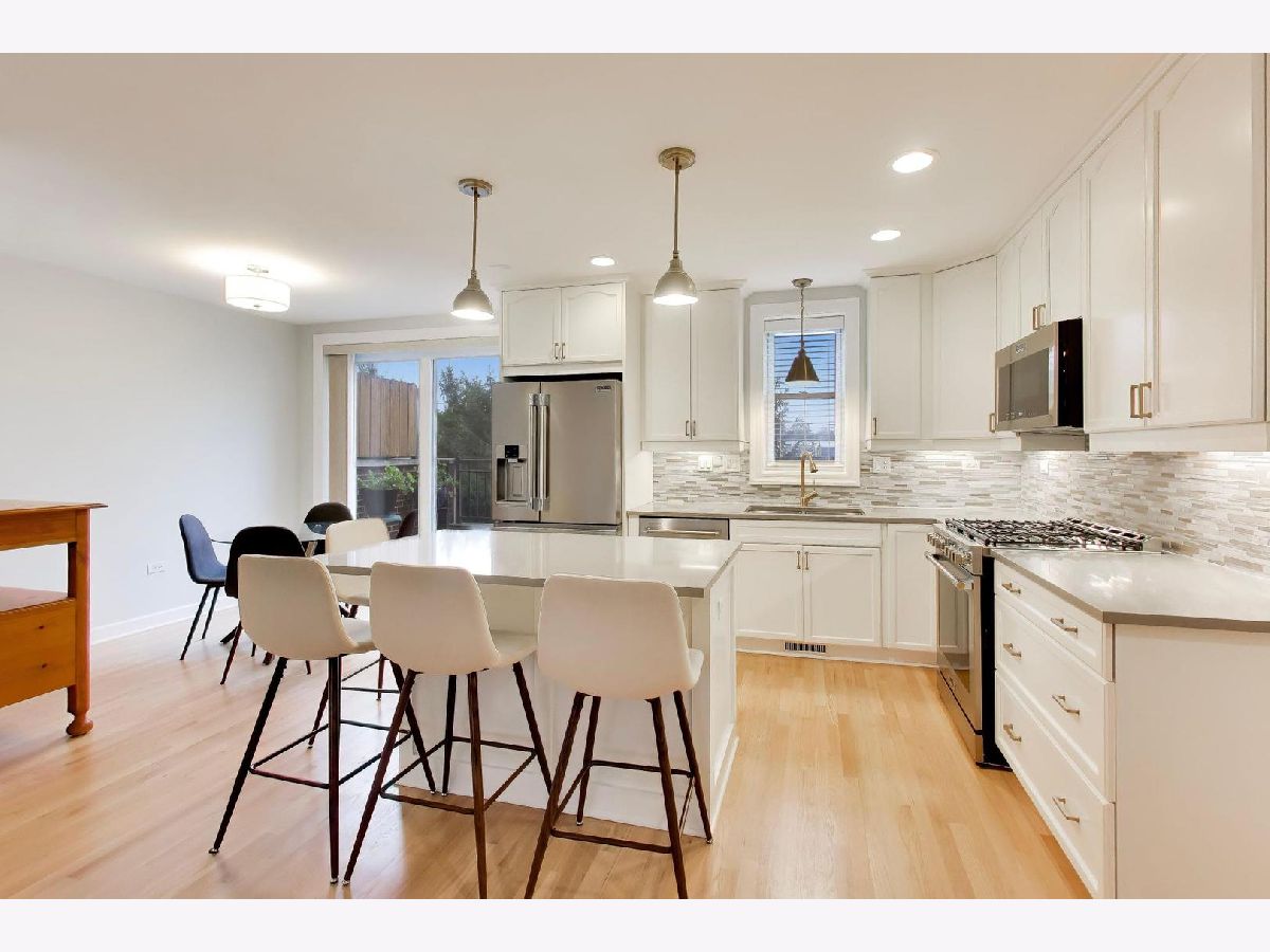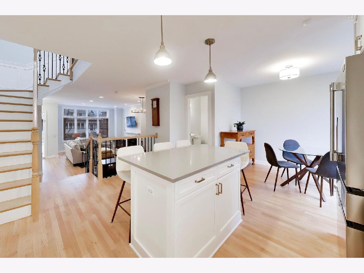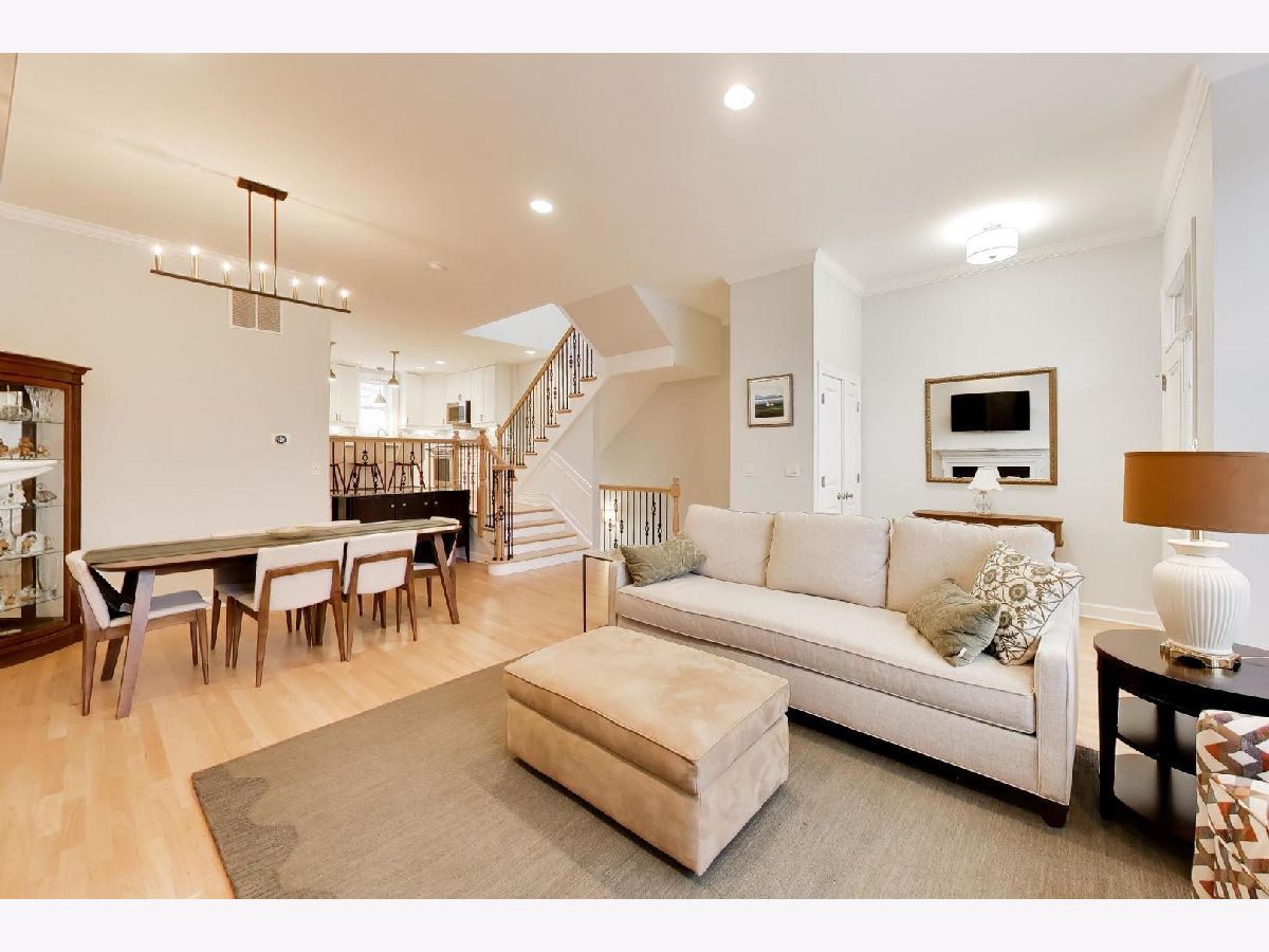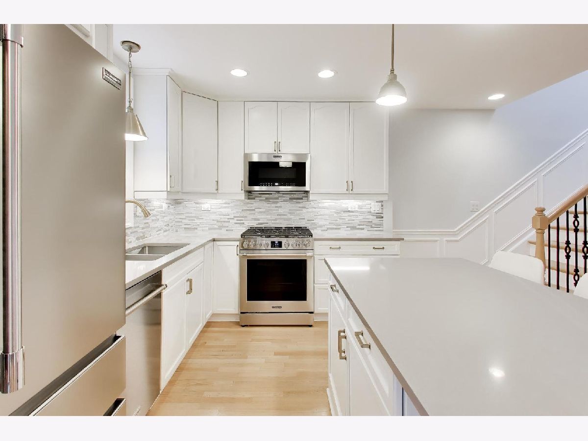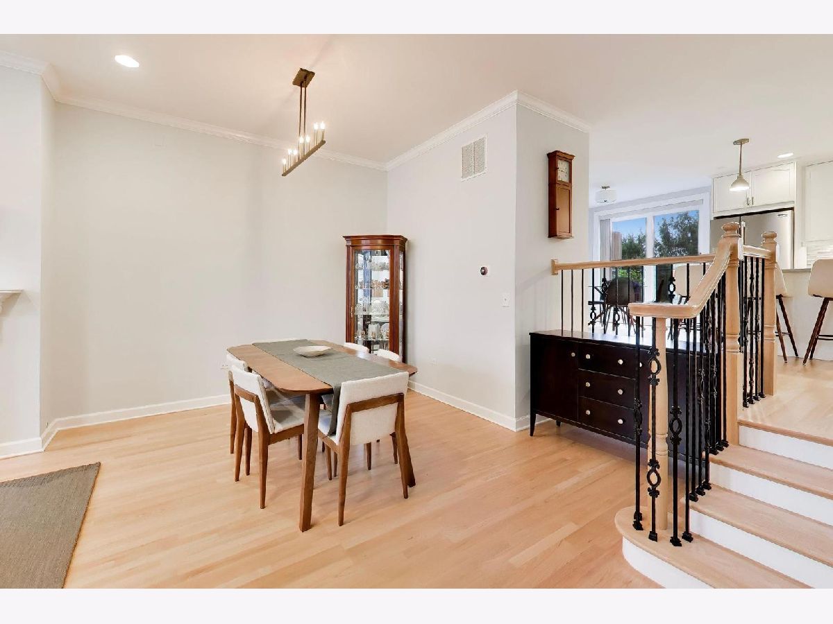 Experience the vibrant lifestyle of downtown Arlington Heights in this stunning all-brick townhome, perfectly located just steps from shopping, dining, nightlife, and Metra access. Enter through an inviting foyer and be welcomed by pristine hardwood floors throughout the main level and an open-concept living space designed for modern living. The spacious living room features abundant windows that flood the space with natural light, complemented by a gas fireplace - perfect for cooler evenings. Flow effortlessly into the dining area, an ideal setting for entertaining family and friends. The kitchen is truly a dream, boasting stunning white cabinetry, ample countertops, a convenient island with extra seating, and a separate eat-in kitchen space. Step outside to your private Trek deck (2024), where you can enjoy morning coffee, evening grilling, or a relaxing glass of wine. A convenient half bath completes the main floor. Upstairs, freshly installed hardwood floors (2025) greet you as you enter the primary suite, which offers a generously sized and organized walk-in closet plus a luxurious bathroom featuring a beautifully tiled walk-in shower and double vanity. Two additional bedrooms, a full bath, and a laundry area with newer washer/dryer (2022) round out this level. The finished lower level impresses with brand new luxury vinyl flooring (2025) and a versatile family room perfect for guests, a home office, or whatever your heart desires. An additional half bath and plenty of storage complete this space. Additional features include an attached two-car garage with epoxy flooring and an EV charger for your convenience. Additional updates include: AC ('22), furnace ('22), refrigerator ('25), over/range ('25), microwave ('25), dishwasher ('24), freshly painted throughout ('25). Enjoy unparalleled access to all that downtown Arlington Heights has to offer, including the soon-to-open Arlington Fresco, diverse dining options, nightlife, shopping, coffee shops, and Metra commuter trains.