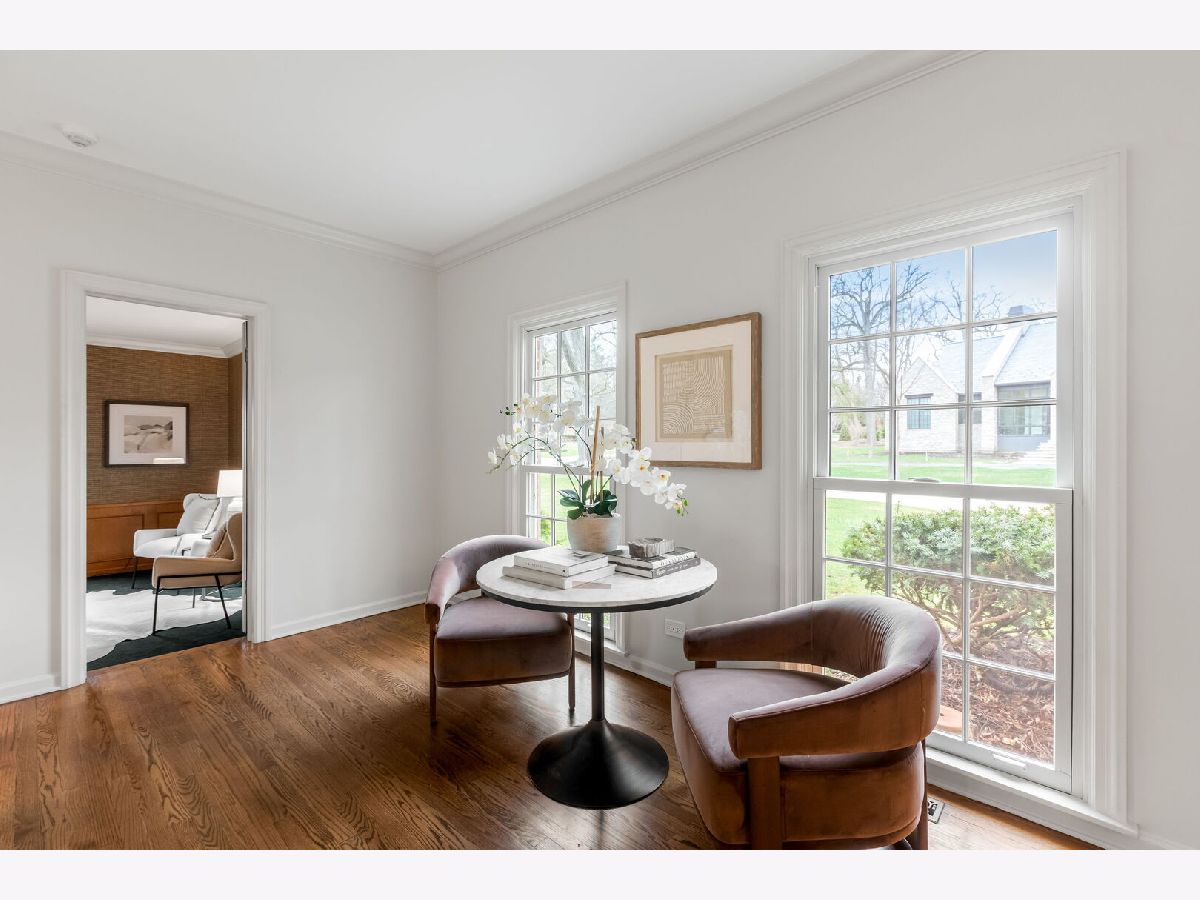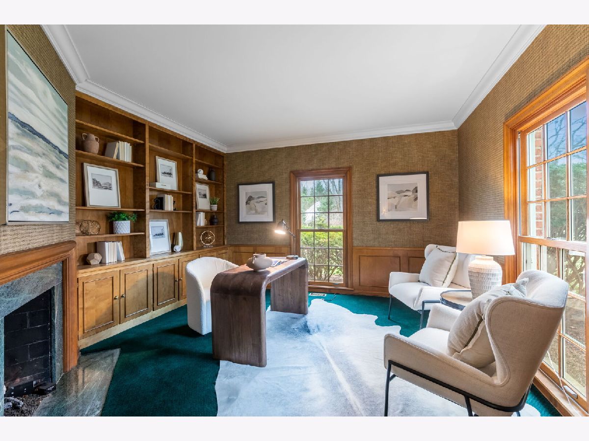 First time on the market since 1980, this elegant French Normandy-style residence reflects over four decades of thoughtful stewardship by one family. Quietly set along a tree-studded lane, the nearly one-acre property opens to a serene pond and a sense of privacy rarely found so close to downtown Lake Forest. Graciously appointed interiors spanning over 5,000 square feet showcase crown molding, tall ceilings, finely detailed millwork, and a true sense of arrival from the moment one enters the foyer. Timeless in character yet highly livable for today, the well-considered floor plan allows for effortless flow between the formal living and dining rooms, the family room, and an exceptionally large kitchen anchored by a center island and generous breakfast room. A screened porch overlooks the backyard and pond, filling the home with natural light and tranquil views throughout the seasons. A private, wood-paneled library appointed with built-ins, grasscloth walls, and a fireplace offers an ideal work-from-home retreat behind French doors. The first floor also includes a guest bedroom with a full bath-perfect for in-laws or guests, and an attached two-car garage. Upstairs, the home continues to impress with three bedrooms, an office, a dedicated laundry room, and a retreat-like primary suite with ample closet space and a spa-inspired bath appointed with dual showers, including a luxurious steam shower. The partially finished basement offers a recreation area and abundant storage space. It is rare to find a property that combines this level of privacy, scale, and architectural integrity just minutes from downtown Lake Forest, with its charming shops, acclaimed restaurants, Metra station, and easy access to the beach and lakefront.