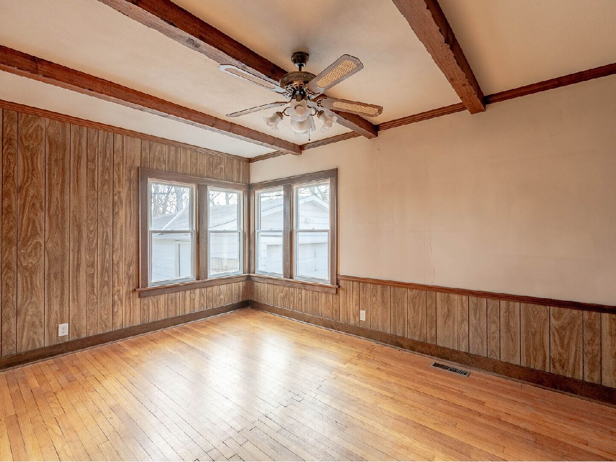 Discover the hidden potential of this roomy Mundelein classic. The main living areas boast exposed wood ceiling beams, vintage wood paneling, and large windows that flood the space with natural light. With five bedrooms and a partial basement, there is plenty of room to grow. The hardwood floors are ready for a refinish to bring back their original glow. Located near top-rated schools and parks, this as-is sale is a rare chance to create a custom masterpiece.