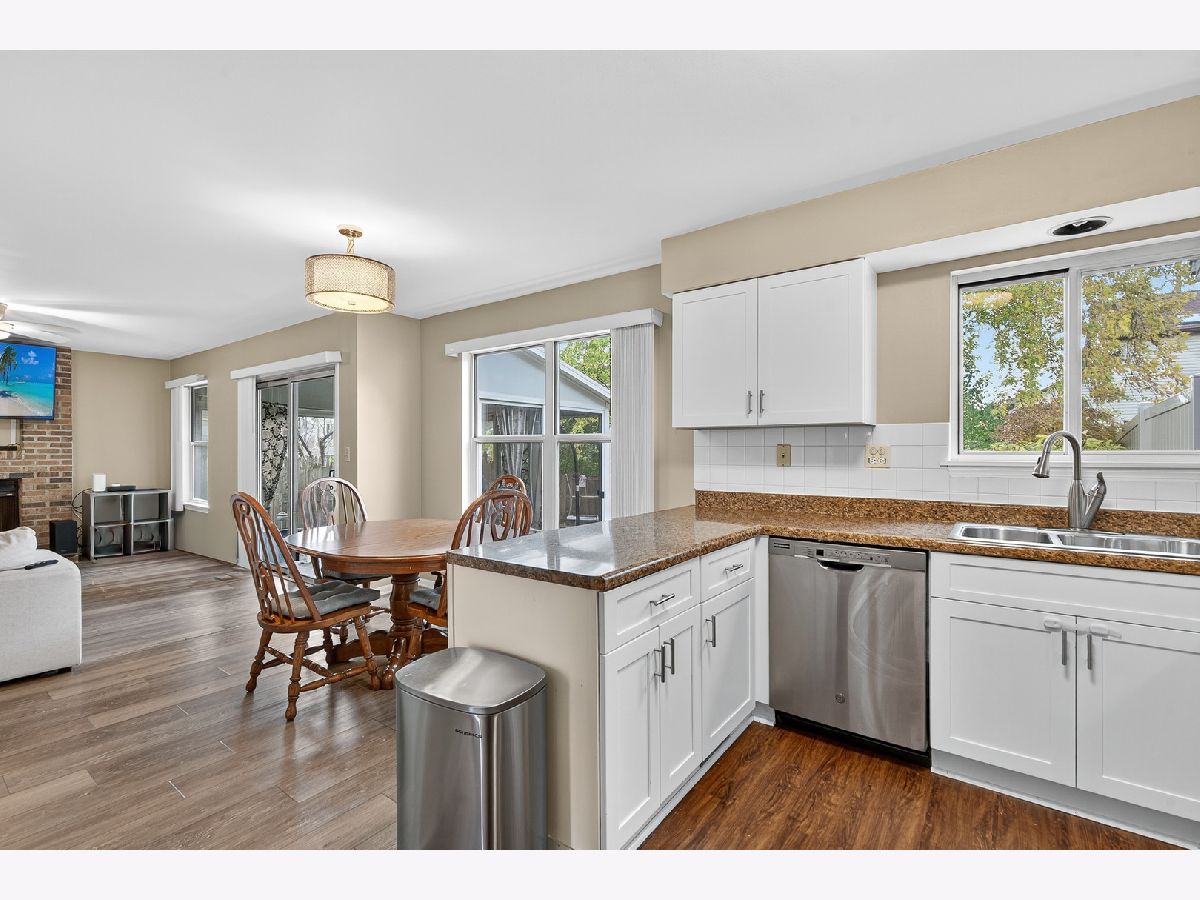 Beautiful and cozy 3-bedroom, 1.5-bath half duplex located in desirable Cambridge Country subdivision. The main level offers a welcoming family room with a fireplace that flows into the updated eat-in kitchen featuring a peninsula, pantry closet, and stainless steel appliances. The spacious living and dining room boast a vaulted ceiling and large picture window. Convenient first-floor laundry with access to the attached 1 car garage and a guest half bath complete the main level. Upstairs, you'll find all three bedrooms, including a primary suite with a walk-in closet, separate vanity area, and access to the full bath. The bathroom was completely renovated in 2020 and can be accessed from the hallway and primary bedroom. Two large secondary bedrooms including one with a walk in closet and a large hallway with room for a small home office. Enjoy the screened-in patio overlooking the fenced backyard-perfect for relaxing or entertaining. Additional highlights include new flooring throughout the family room, eating area, kitchen, and half bath (2021), a double-wide driveway and a prime location in a quiet neighborhood zoned to highly rated Mundelein schools close to multiple parks with pickleball & tennis courts. Minutes to shopping, dining, Mundelein Metra station and all that Mundelein has to offer!