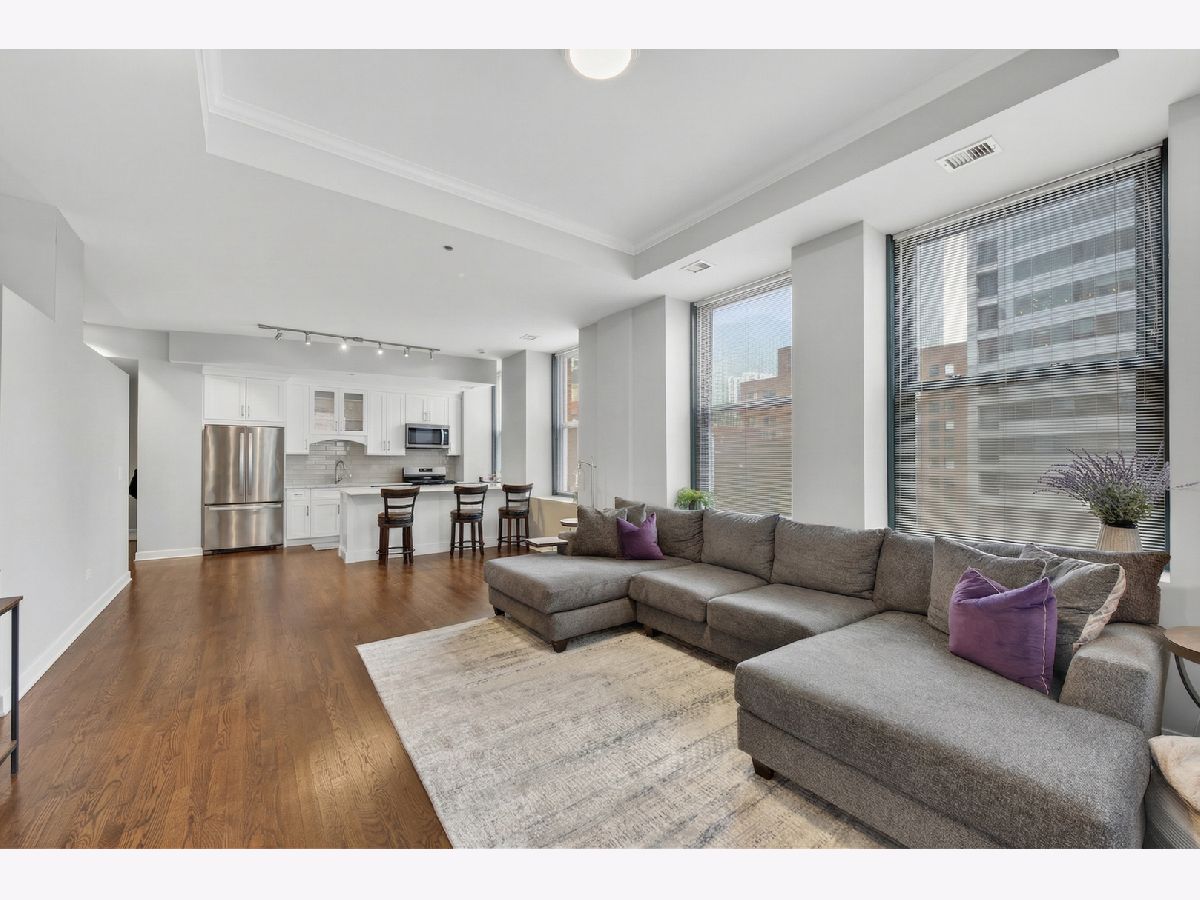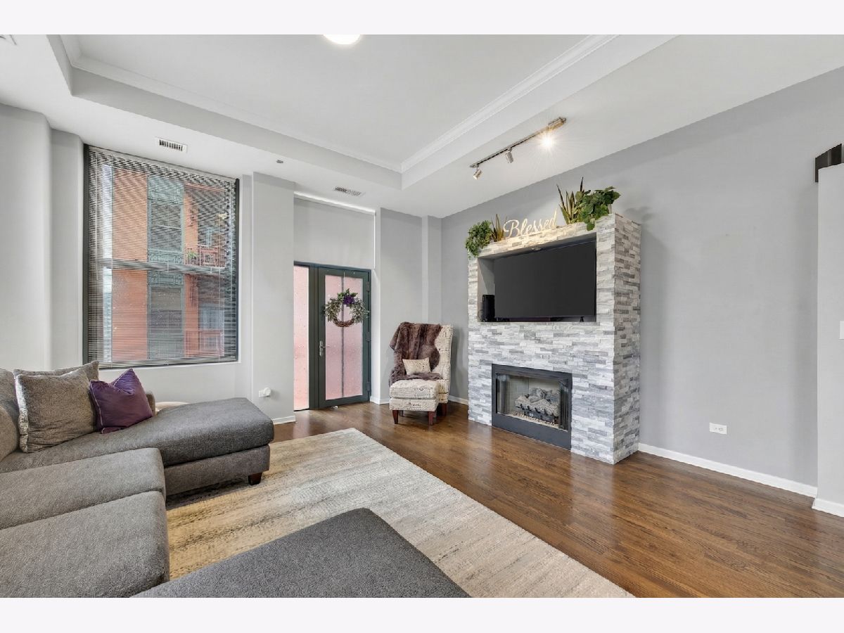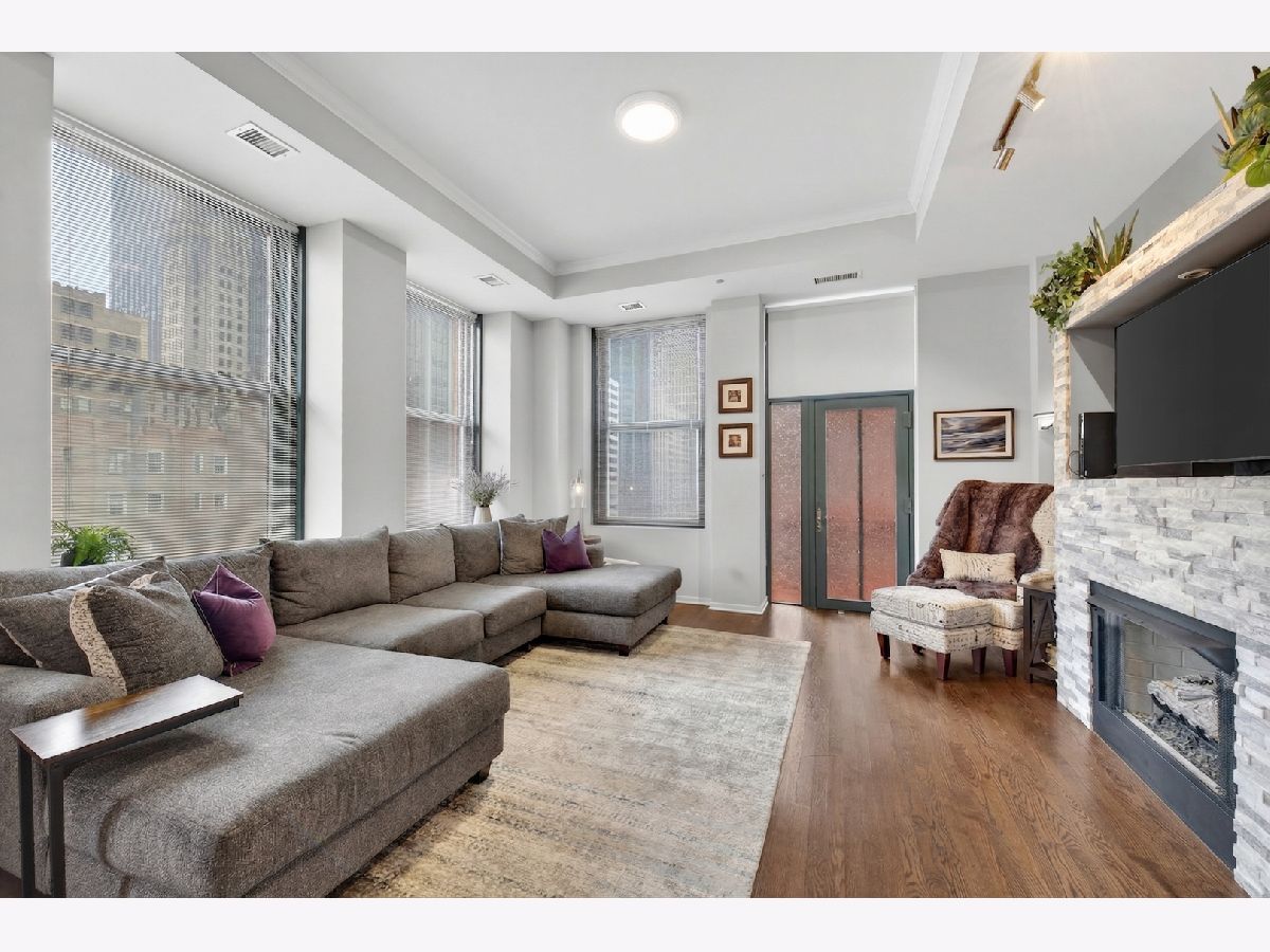 Welcome to this fabulous, sun-drenched 2-bed, 2-bath corner unit at Concord City Centre in the heart of the Loop! Boasting soaring 11-foot ceilings, gleaming hardwood floors, and extra-large windows, the open-concept layout perfectly frames gorgeous city views. Entertain effortlessly in the chef-inspired kitchen featuring new custom cabinetry, stainless steel appliances, and an oversized quartz breakfast bar. The space flows seamlessly into the dining and living area, which is highlighted by a charming tray ceiling, a cozy gas fireplace, and direct access to your private balcony equipped with a gas grill. Retreat to the luxurious primary suite, offering a spa-like en-suite bath with a double-sink quartz vanity, porcelain tiles, and an extra-large walk-in shower. The generous second bedroom features ample closet space and sits adjacent to a beautifully upgraded second full bath. Additional unit highlights include an in-unit washer/dryer, an extra-large hallway closet, a basement storage unit (#B35), and an included indoor heated garage parking space (#323). Enjoy premier, full-amenity living with 24-hour security and maintenance, a fitness center, roof deck, business center, bike room, dry cleaning pickup, and a dog run, all located just a short stroll from the Chicago Riverwalk, Grant Park, world-class dining, shopping, nightlife, and the Financial District!