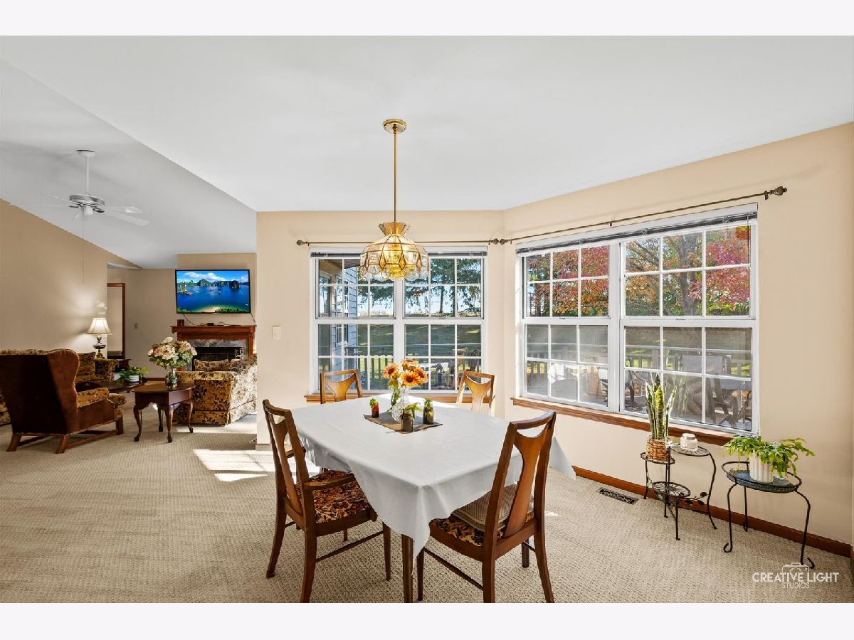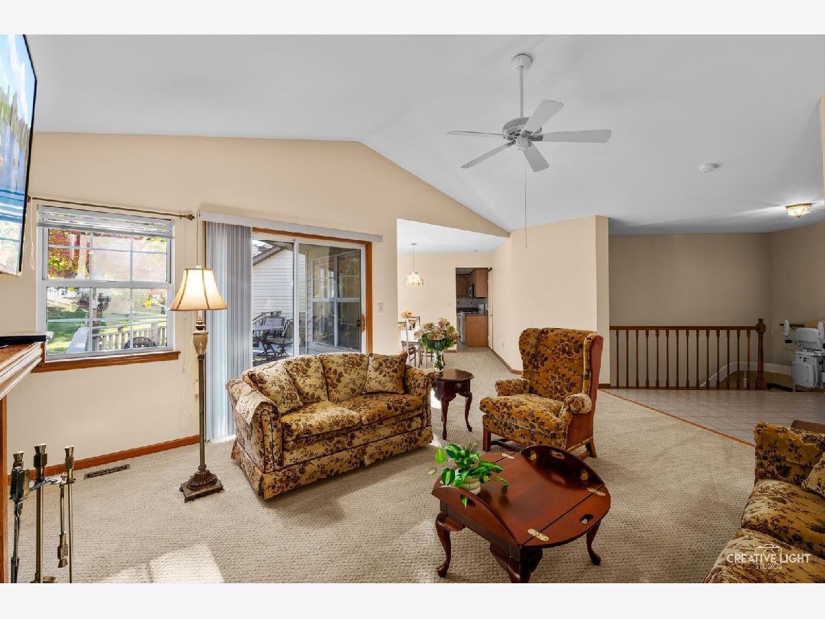 Nestled in Carillon - the sought-after 55+ community - this Marquette Model is a rare find and a true must-see. Step into a welcoming foyer with a generous coat closet, then discover a bright second bedroom bathed in natural light. The living room impresses with vaulted ceilings, a cozy gas fireplace, and a sliding door that opens to an expansive deck - perfect for morning coffee or evening gatherings. The adjacent dining area features large windows overlooking a peaceful, tree-lined backyard. The kitchen comfortably accommodates a small table and includes a brand-new stainless-steel refrigerator as well as convenient garage access. On the other side of the home you'll find a full guest bath and well placed main-floor laundry closet. Retreat to the tranquil primary suite, complete with vaulted ceilings, oversized windows, a massive walk-in closet, and a private bath with a large shower - the ideal spot to relax and recharge. Downstairs, the full basement is an entertainer's dream: a roomy entertainment area with a built-in bar, abundant seating space, and plenty of storage. A motorized chair lift makes basement access easy, and the original laundry area remains downstairs if you prefer to wash there. Recent updates (within the last two years) include a new roof (this summer), new furnace, new sump pump, new carpet, new refrigerator, new washer and dryer and new toilets. The whole house was freshly painted in 2022. Comfortable, thoughtfully upgraded, and move-in ready - this home in Carillon is the perfect place to enjoy your next chapter. Schedule your visit today!