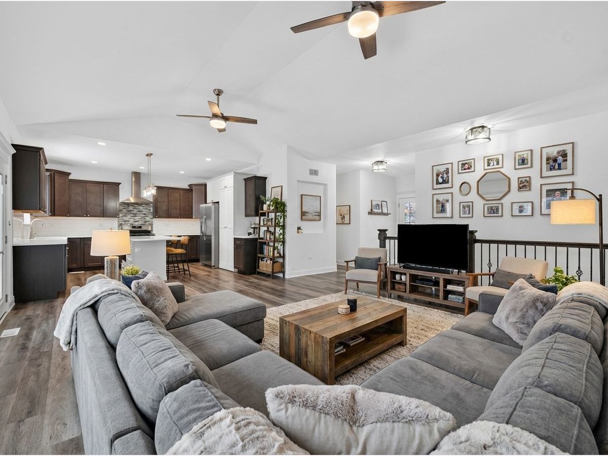 Better than new and built in 2025, this stunning ranch showcases modern finishes, an open-concept layout, and an entertainer's dream finished basement.The main level features three bedrooms and two full bathrooms, including a private primary suite with a walk-in shower and relaxing soaking tub. At the heart of the home, the open-concept kitchen shines with quartz countertops, recessed lighting, generous prep space, and a cleverly tucked-away walk-in pantry-ideal for both everyday living and entertaining guests. The deep-pour finished basement expands the home's living space with two additional bedrooms, a full bathroom, a large recreation area, and a dedicated media room complete with home theater seating risers. A stylish wet bar makes the lower level perfect for gatherings or game nights. The garage offers tall ceilings for added storage or flexibility for larger vehicles, and the home is loaded with upgrades throughout. Step outside to a maintenance-free deck overlooking the expansive backyard-an inviting space to relax, entertain, and enjoy the outdoors.