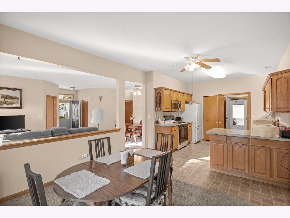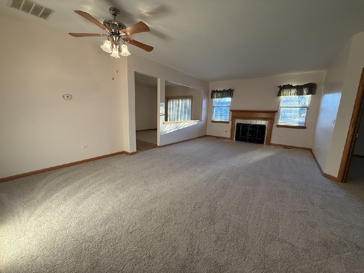 Welcome to this beautifully maintained ranch-style home in a highly desirable 55+ gated community! This spacious 3 bedroom, 2 bath residence offers comfortable single-level living with excellent amenities. The cozy living room features a charming fireplace, while the bright family room includes a sliding glass door that opens to an outdoor space. The large kitchen provides ample cabinetry and counter space, ideal for both cooking and hosting. The primary bedroom suite includes a private bath with both a soaking tub and separate shower, as well as a generous walk-in closet. The two additional bedrooms are generously sized, and the home features brand-new carpet throughout. Enjoy the convenience of a private entrance and easy access to I-55. This vibrant 55+ community offers resort-style amenities such as a clubhouse, swimming pool, fitness center, golf course, and much more, there is so much to do! Come experience the perfect blend of comfort, convenience, and community living!