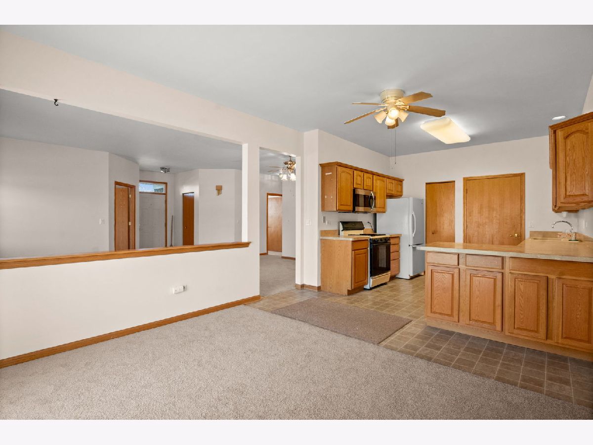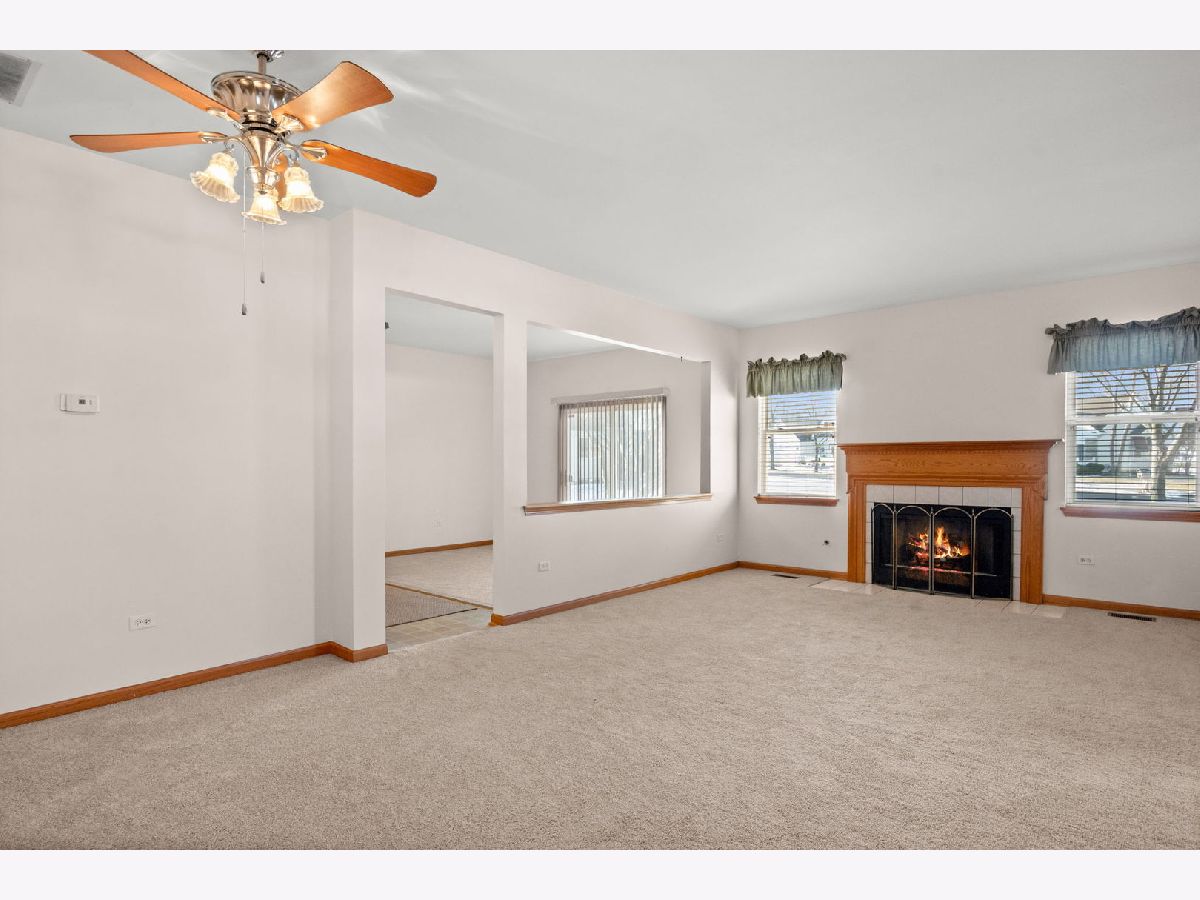 Welcome to this beautifully maintained ranch-style home in a highly desirable 55+ gated community! This spacious 3 bedroom, 2 bath residence offers comfortable single-level living with excellent amenities. The cozy living room features a charming fireplace, while the bright family room includes a sliding glass door that opens to an outdoor space. The large kitchen provides ample cabinetry and counter space, ideal for both cooking and hosting. The primary bedroom suite includes a private bath with both a soaking tub and separate shower, as well as a generous walk-in closet. The two additional bedrooms are generously sized, and the home features brand-new carpet throughout. Enjoy the convenience of a private entrance and easy access to I-55. This vibrant 55+ community offers resort-style amenities such as a clubhouse, swimming pool, fitness center, golf course, and much more, there is so much to do! Come experience the perfect blend of comfort, convenience, and community living!