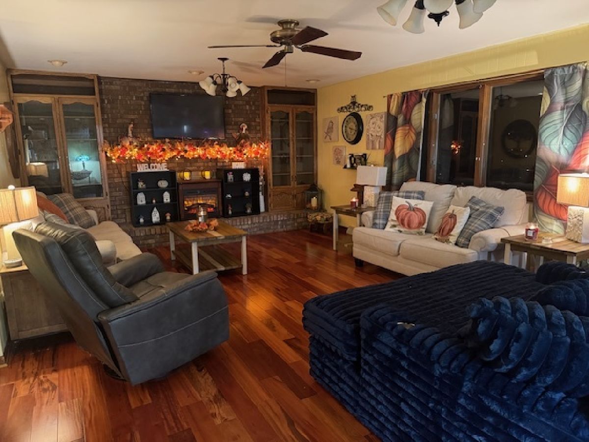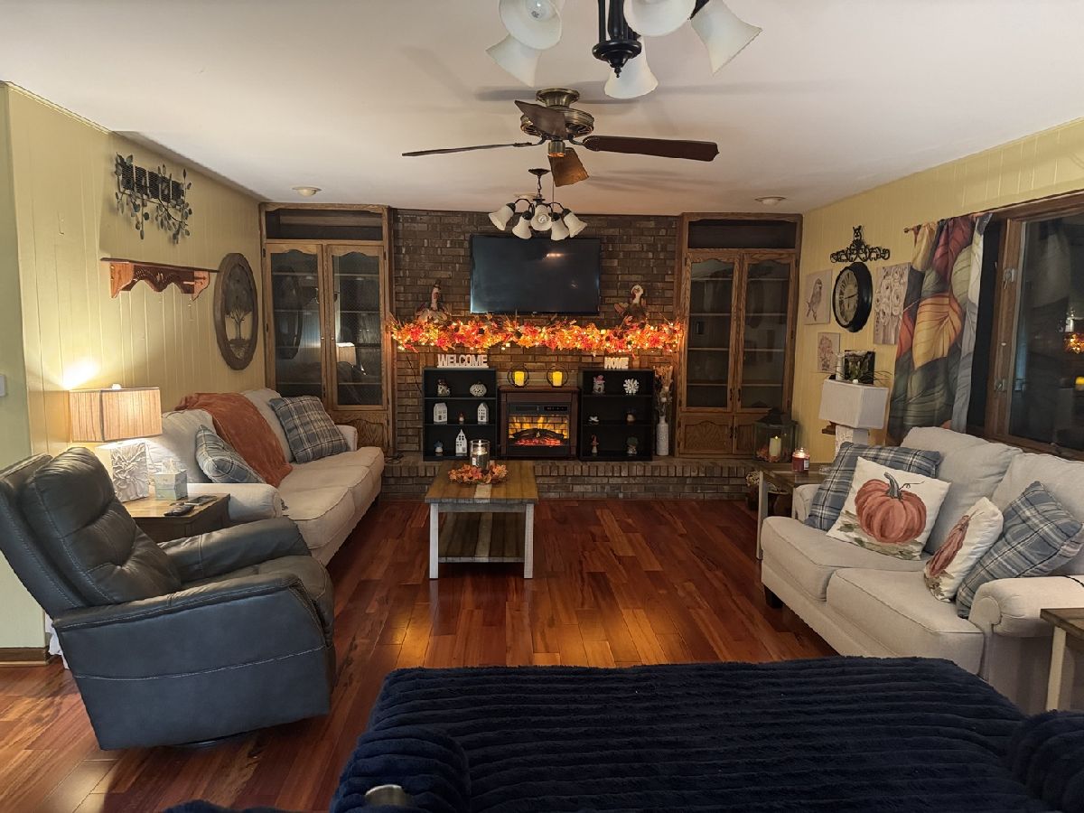 Call to see this beautiful brick ranch with located in Hillcrest subdivision on nice corner lot. This home has been well kept and in the same family for 31 years. The house has lots of room with 1912 square feet, 3 bedrooms, 3 full baths and a 2- car attached garage. There is an oversized foyer has a big double closet with plenty of space for your guests to enter. The owners have taken out the wall in the dining room...so now it is open to the huge living room with fireplace, built in custom cabinetry and gorgeous flooring. The seller has not used the fireplace, so the new owner will need to inspect before use. Currently, the seller has an electric fireplace in front of the firebox, which is cozy and perfect for her. The lovely country kitchen is also open to both the dining room & living room which is wonderful! The kitchen comes fully equipped with built in stove, cook top, 2-month-old dishwasher and a new garbage disposal. The countertops were replaced in 2012 with Cambria quartz and new tile flooring in the kitchen and laundry room. The portable island with chairs will stay. Butcher block table will not stay. The main bathroom was remodeled in 2018 with a whirlpool tub. Two of the bedrooms have newer carpeting, but the large primary suite has wood laminate flooring plus an extra spacious walk-in closet, big linen closet as well as a full bath with shower. The laundry room has 2 big storage closets and a full bath with shower. The built in shelving, 2 work benches and heater in garage will stay. Heater not used. BRAND NEW ROOF 2025, HVAC - 2010, water heater 2017 Budget billing $234.00 month Curtains do not stay ONLY rods. wine refrigerator does not stay,