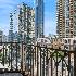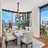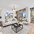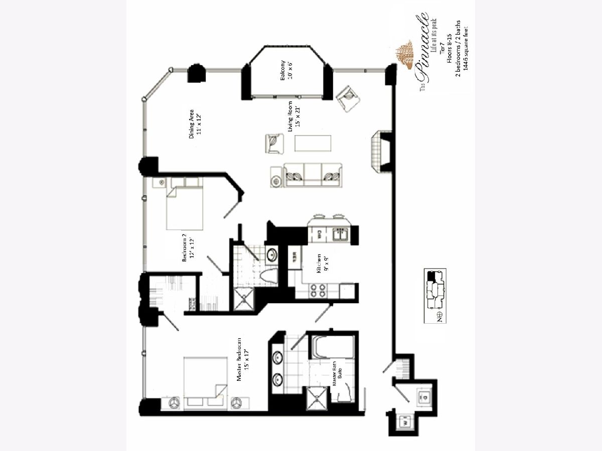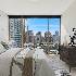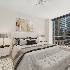 Elegant corner residence at The Pinnacle offering refined city living. This thoughtfully designed split two-bedroom home features high ceilings, beautiful hardwood flooring, and intricate millwork details throughout. The expansive living and dining area is anchored by a stylish fireplace and opens to a private balcony ideal for enjoying morning coffee or evening sunsets. The gourmet Wood-Mode kitchen is appointed with rich custom cabinetry, a breakfast bar, and top-tier finishes. The spacious primary suite boasts a spa-inspired bath with dual sinks, a soaking tub, and a separate glass shower. The second bedroom is highlighted by dramatic floor-to-ceiling windows, filling the space with abundant natural light. Residents enjoy premier amenities including 24-hour door staff, a modern fitness center, lap and resistance pools, and an exclusive private theater.