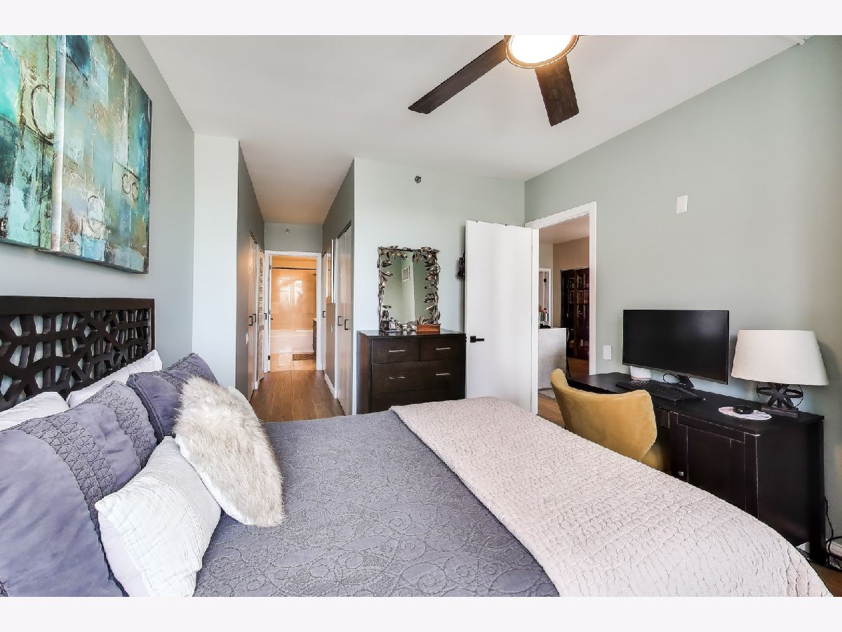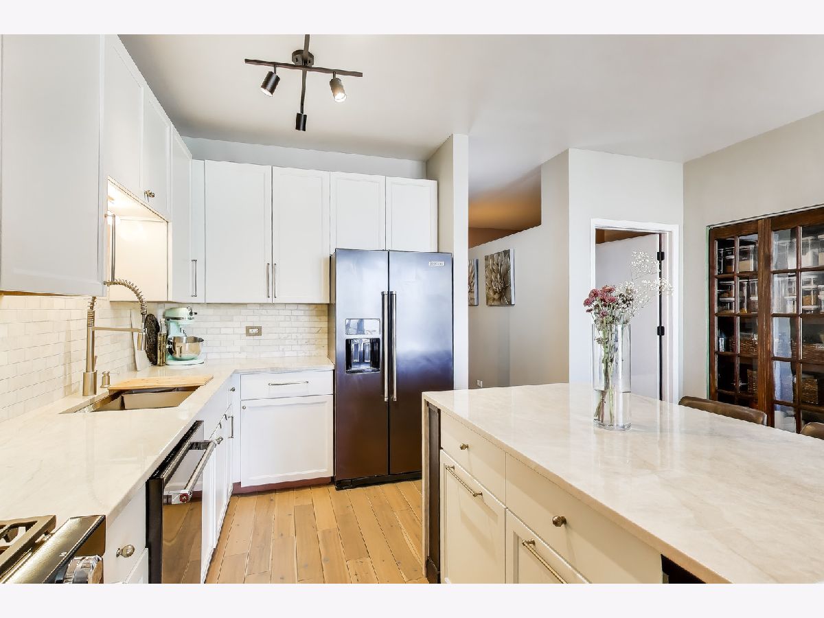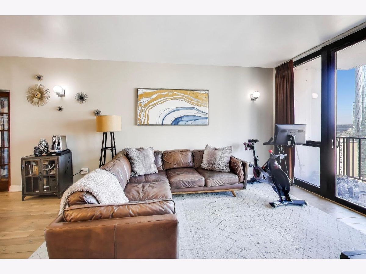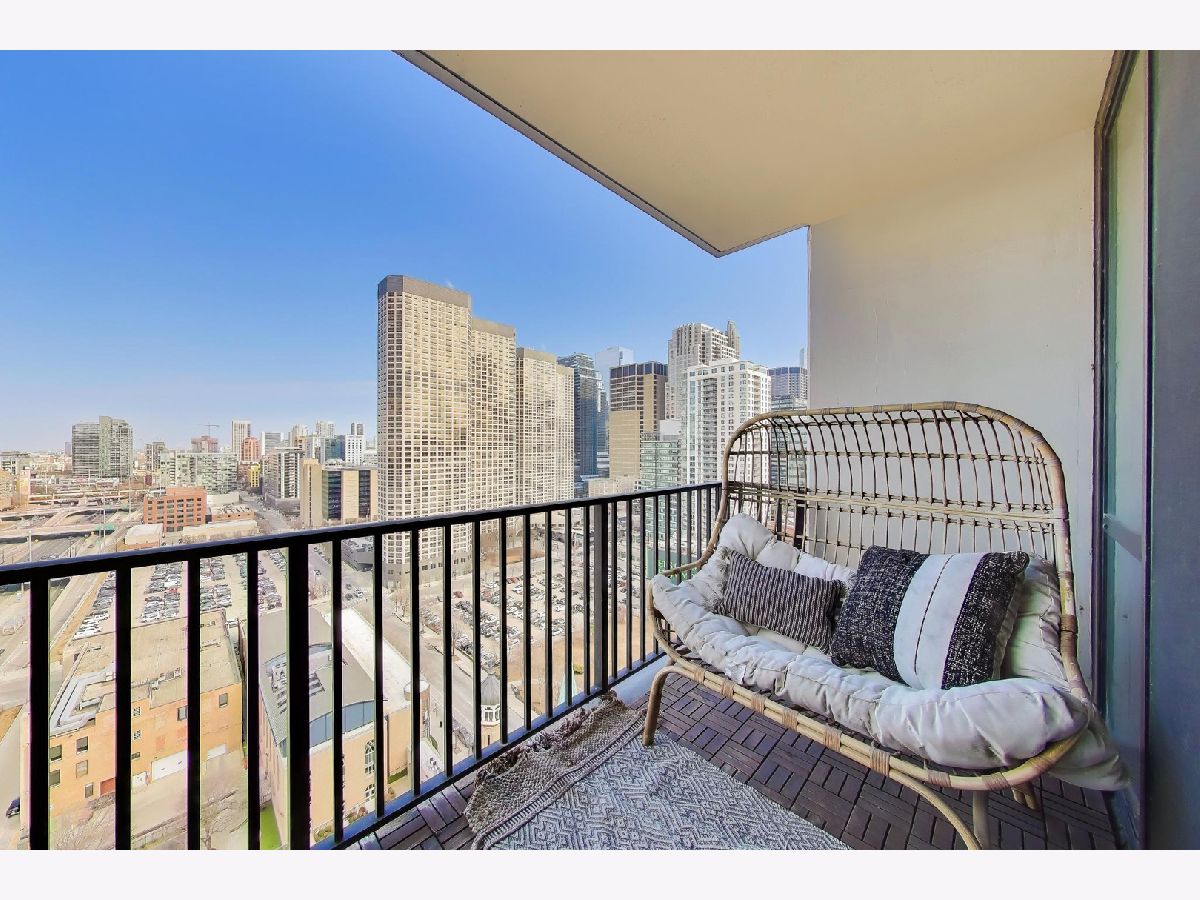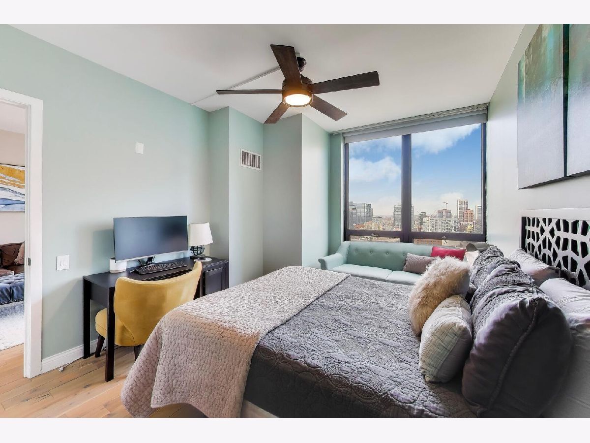 Welcome to this meticulously renovated 2 bed / 2 bath condo in Chicago's premier West Loop neighborhood, showcasing high-end, premium materials and elevated designer finishes far beyond the typical renovation, with sweeping city views and floor-to-ceiling windows. This upper-level residence features wide-plank premium white oak hardwood flooring throughout and a private balcony ideal for entertaining. The designer kitchen showcases a stainless steel appliance suite with double oven and gas range, Taj Mahal quartzite countertops, waterfall island, marble backsplash, pantry, and soft-close cabinetry. Both bathrooms have been elegantly updated. The primary bath offers travertine stone, heated bidet toilet, anti-fog mirror, and new vanity. The secondary bath features striking basalt tile and modern finishes. All with the added convenience of in-unit laundry. Deeded garage parking available for $25,000. Assessments include heat, A/C, and cable - everything except electricity. Full-service building with 24/7 door staff, fitness center, community room, storage, bike room, and dog run. Prime West Loop location near Union Station, Ogilvie, CTA Blue Line, Fulton Market, Restaurant Row, and Mary Bartelme Park.