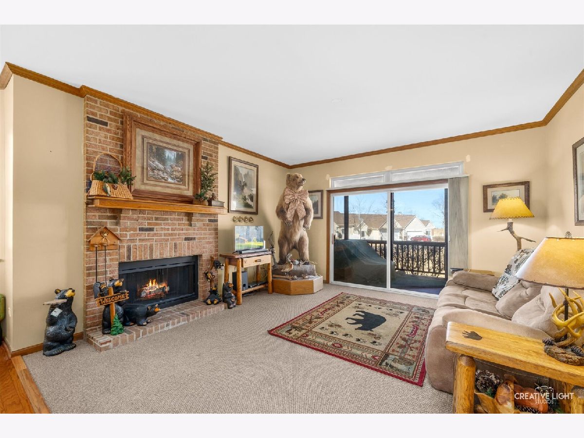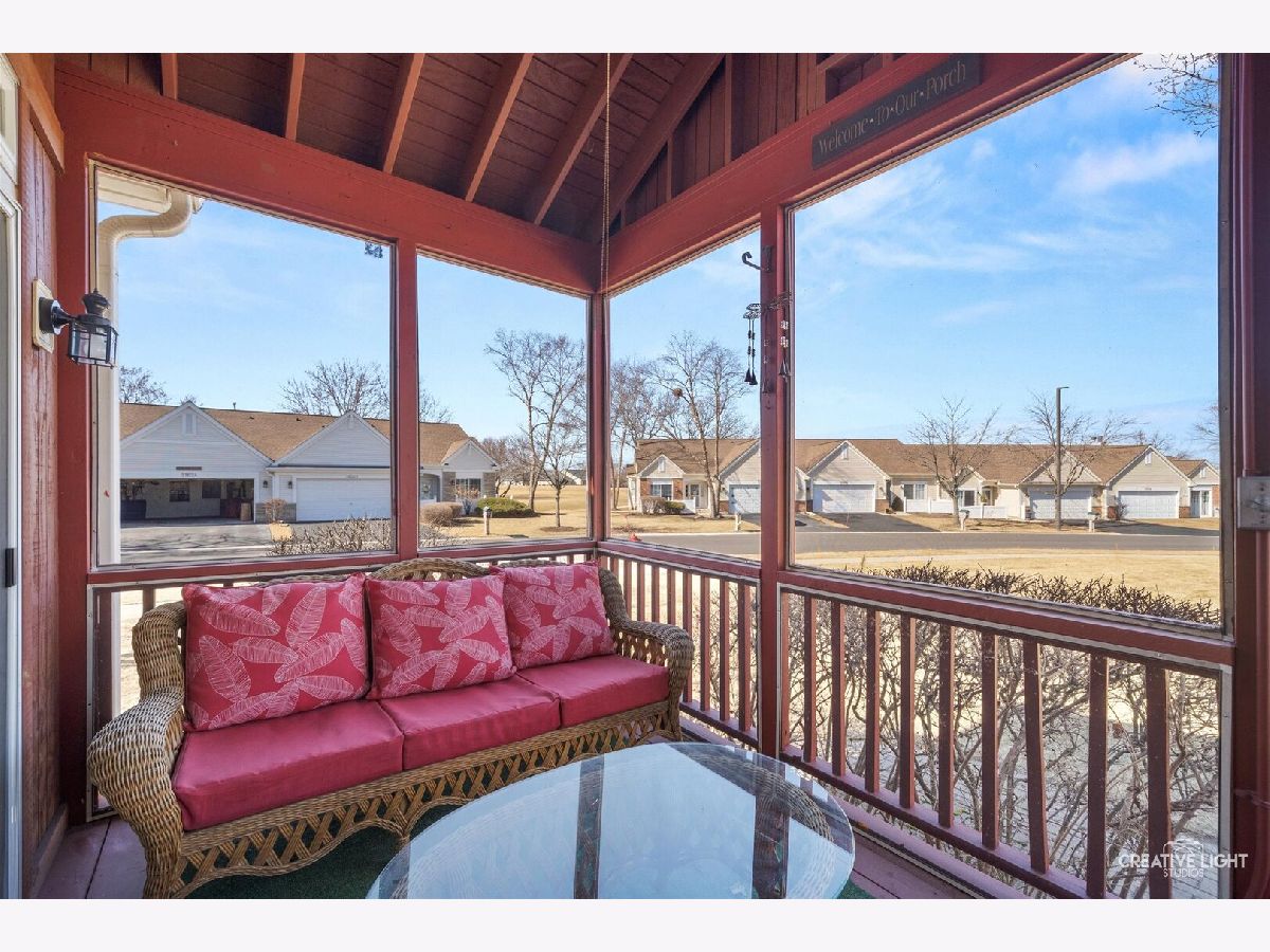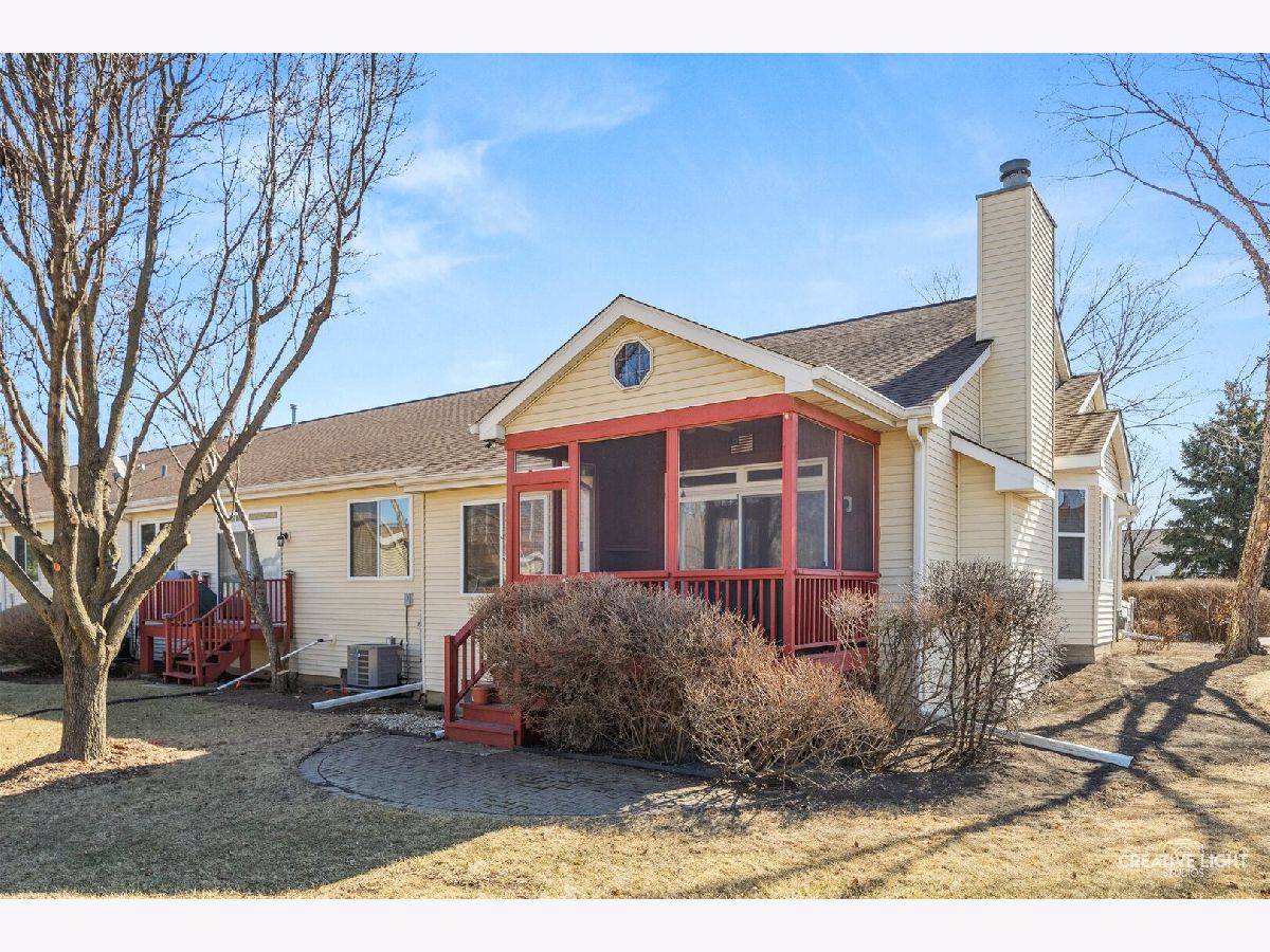 Beautiful end-unit ranch townhome with a finished basement, ideally situated on a desirable cul-de-sac lot in Carillon Club, a premier gated 55+ community! This well-maintained home features a new driveway, new garage door opener, and numerous recent updates throughout. The kitchen offers maple cabinetry, stainless steel appliances, new formica countertops, stylish new backsplash, and a sliding glass door leading to the patio-perfect for everyday dining and entertaining. Major appliances including the dishwasher, washer, dryer, microwave, oven, and refrigerator are just one year old. The cozy living room showcases a stunning floor-to-ceiling brick fireplace and a second set of sliding doors that open to a freshly painted screened-in sun porch with brand-new screens. Hardwood floors were refinished three years ago, and carpeting was replaced two years ago. The spacious master suite includes a private bath with dual vanity, a tub, and a separate shower. The finished basement provides additional living space ideal for a family room, recreation area, or hobby space. Enjoy resort-style living with access to pools, tennis courts, golf course, clubhouse, and a wide variety of social activities. Prime location close to shopping, dining, and easy access to I-55!