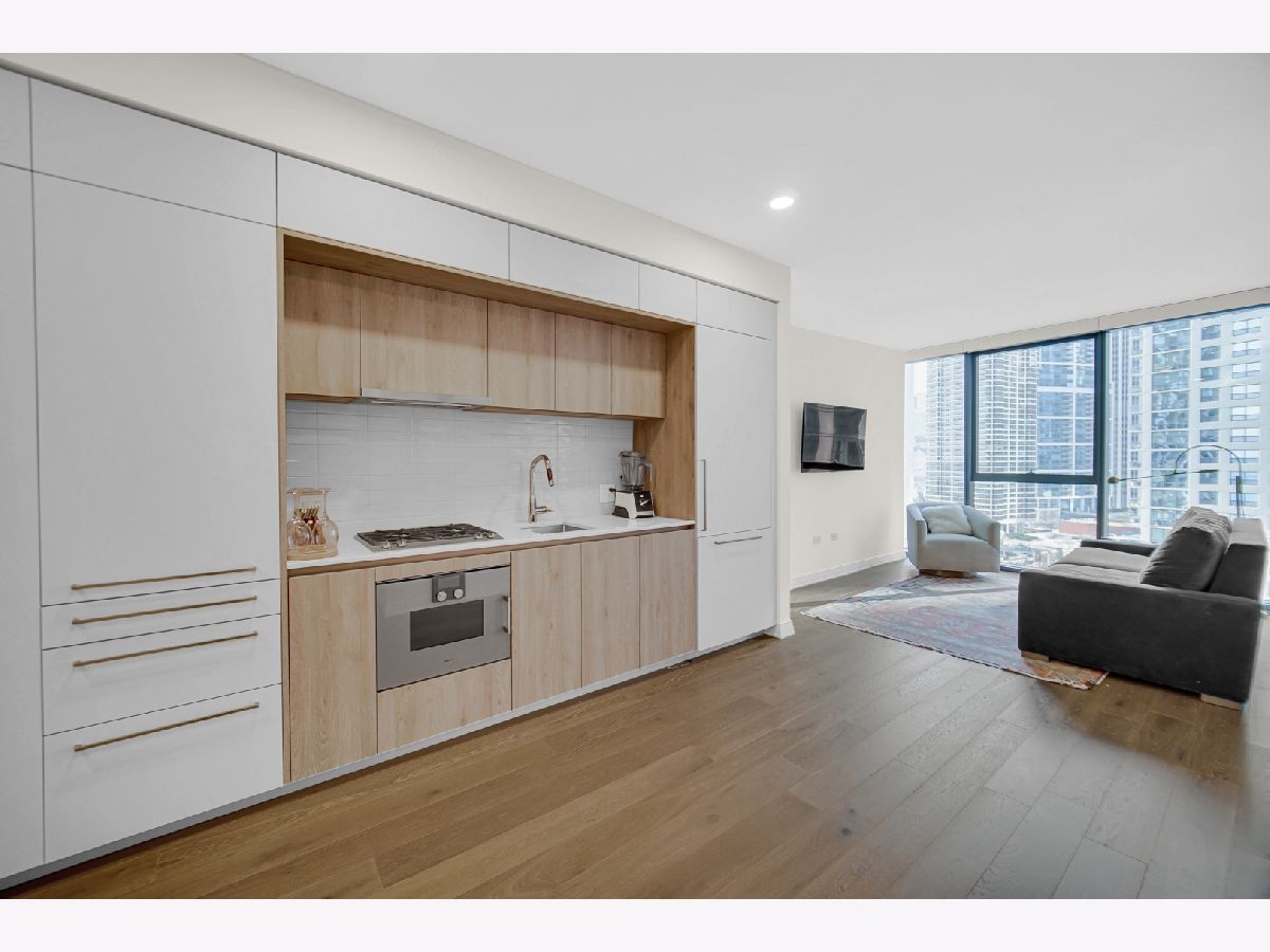 Modern 1BR at Cirrus Condominiums with Stunning Park Views, One Parking spot in the garage included. Lakeshore East's premier new lakefront residence. This beautifully appointed one-bedroom home (Residence 1207) features west-facing floor-to-ceiling windows with sweeping views of the new Cascade Park. One deeded parking space is included in the price. Interior finishes include wide-plank white oak flooring, sleek Snaidero cabinetry, Dornbracht fixtures, and quartz countertops with designer tile backsplash. The luxury appliance suite consists of a Gaggenau cooktop, an integrated refrigerator, a speed/wall oven, and a Bosch dishwasher. Residents enjoy over 48,000 square feet of resort-style amenities, including an indoor lap pool, hydrotherapy pool, steam rooms, fitness and strength studios, motion studio, wellness concierge, winter garden, massage room, salon, kids' club, work-from-home suites, screening room, maker space, jam room, and sports simulator. Outdoor amenities include a pool with lake views, multiple terraces with fire pits and grills, and a 41st-floor rooftop entertaining level. Pet-friendly building with indoor dog run, pet spa, and direct access to the new Bark Park.