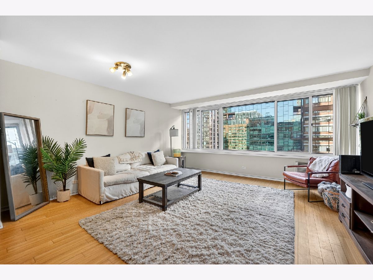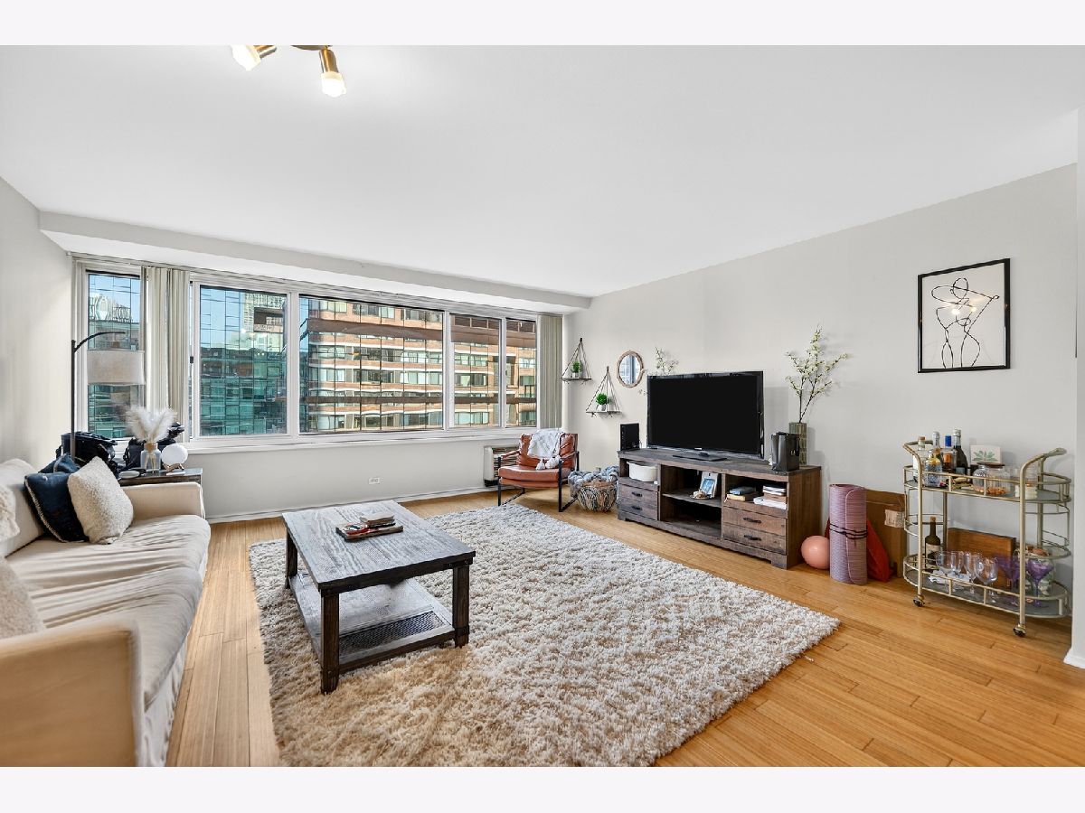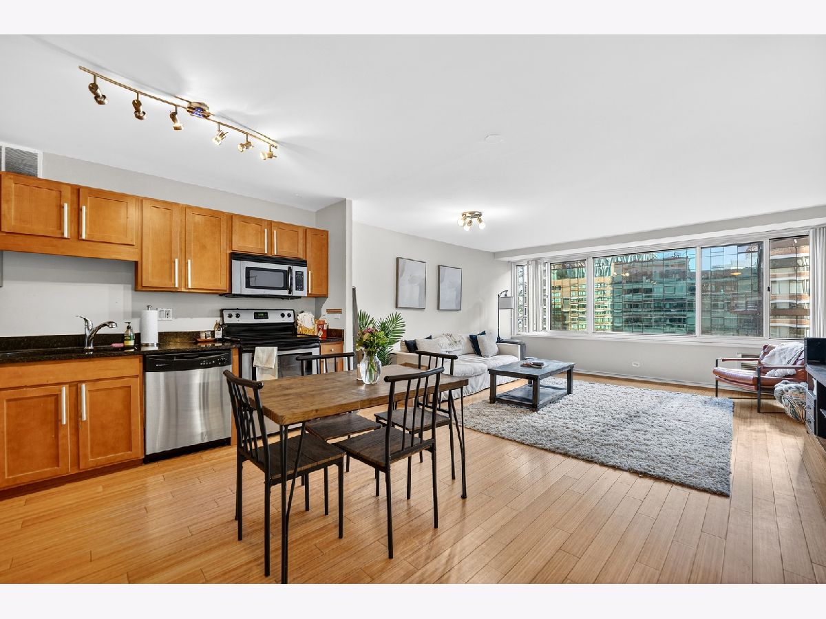 RARE OPEN LAYOUT AVAILABLE - The 25th floor is calling your name! Obtain access to this incredible, full amenity building in this one bed, one bath updated unit in the Grand Ohio. Bamboo flooring lays the groundwork for this updated unit that has had the kitchen opened up for a seamless floor plan. Plenty of room for a dining table, large sectional, and space to cook! An abundance of natural light shines through the windows into the living room and bedroom, with a gorgeous city view! Steps to the Magnificent Mile! Parking available in building garage. Laundry is in common area. Amenities, include a health club, pool, sauna, party room, sundeck, and tennis courts.
