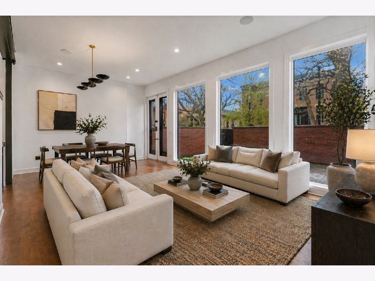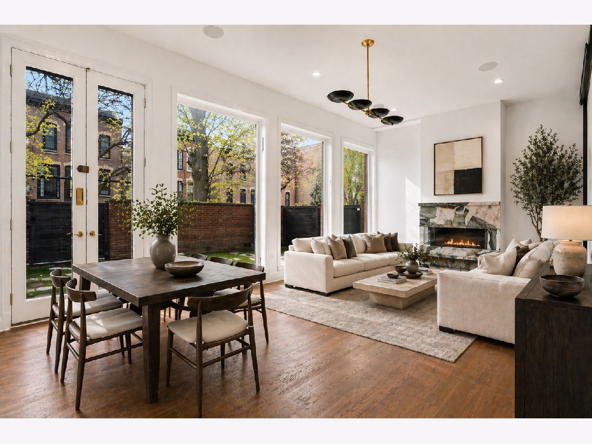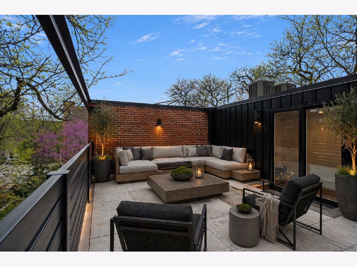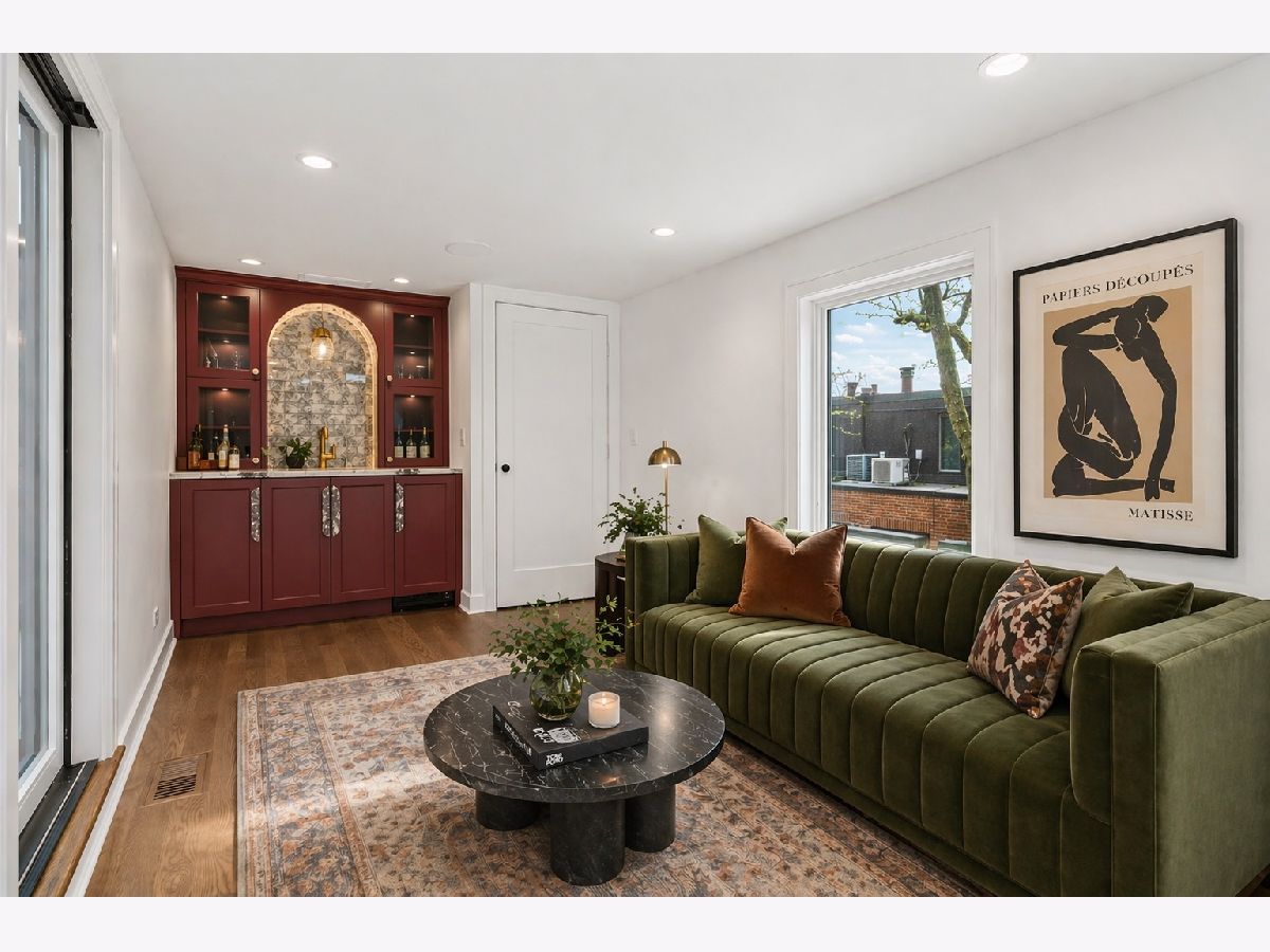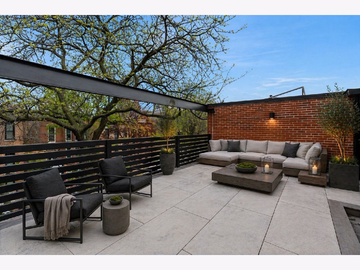Meticulously gut renovated and fully rebuilt 4-bedroom fee-simple townhome on a quiet, historic, tree-lined street in prime East Lincoln Park offering an exceptional blend of timeless design, modern luxury, and functionality. Thoughtfully designed with three bedrooms on one level and elevated, designer finishes throughout. Enter this end unit, corner townhome through the main level foyer which really sets the tone with mosaic tile flooring, classic wainscoting, designer lighting, and stunning House of Hackney wallpaper. An elegant arched entry leads to the show-stopping kitchen featuring custom Amish cabinetry with walnut drawer interiors, quartz countertops, paneled Bosch appliances, and an oversized reeded island with mitered marble counters. A built-in banquette within the kitchen creates the perfect space for everyday dining. The expansive living and dining area is filled with natural light, highlighted by soaring ceilings, floor-to-ceiling windows, and a dramatic two-sided corner fireplace with a floating quartzite bench and surround, seamlessly connecting to the large private yard and patio. The second level offers three generously sized bedrooms, including a luxurious king-sized primary suite with a walk-in closet and spa-caliber bath featuring heated marble mosaic floors, a walnut dual vanity with leathered granite counters, custom lighting and an oversized shower with dual shower heads and body sprays. Two additional bedrooms are complemented by a beautifully finished full bath with penny tile, walnut vanity, porcelain wainscot, and a soaking tub. The top floor is designed for both relaxation and entertaining, complete with a spacious family room and access to a private roof deck. A marble wet bar with smoked glass cabinetry and a paneled beverage fridge adds both style and function. The lower level includes a fourth bedroom, a third full bath with designer tile and lighting, and a fully reimagined laundry room with side-by-side washer and dryer, DryAway racks, and custom hamper shelving. Unbeatable location just steps from Lincoln Park Zoo, Oz Park, the shops and restaurants at Lincoln Commons or Clark St, plus the lakefront just a half mile away. Enjoy easy access to farmers markets, parks, and all the amazing things that Lincoln Park has to offer, all within the highly sought-after Lincoln School District. 1 garage parking included.