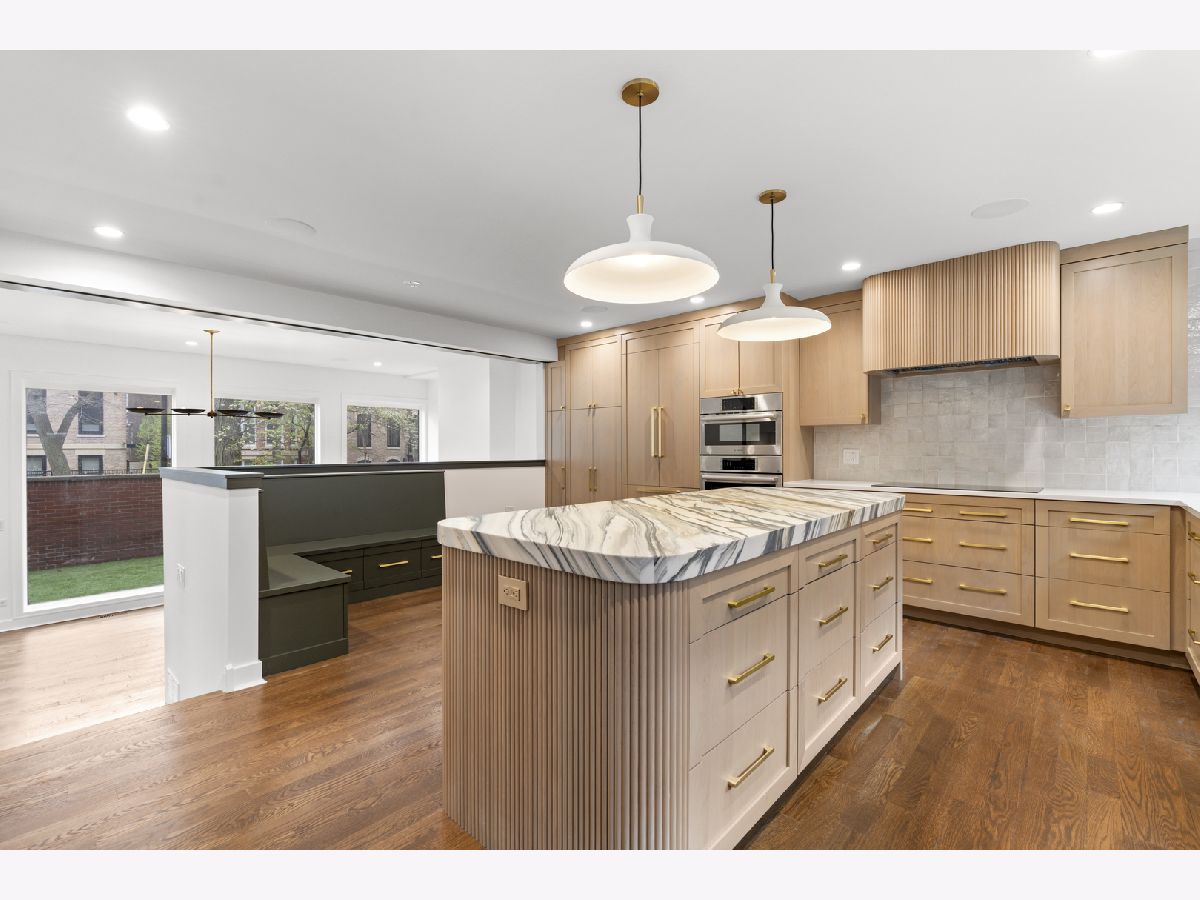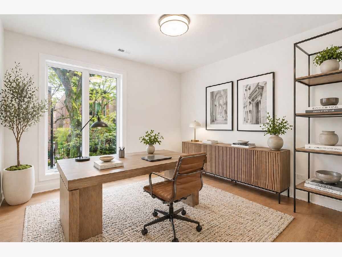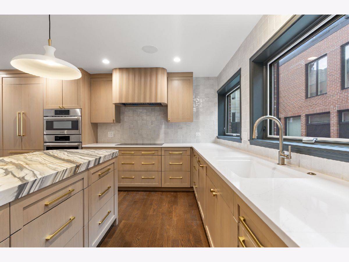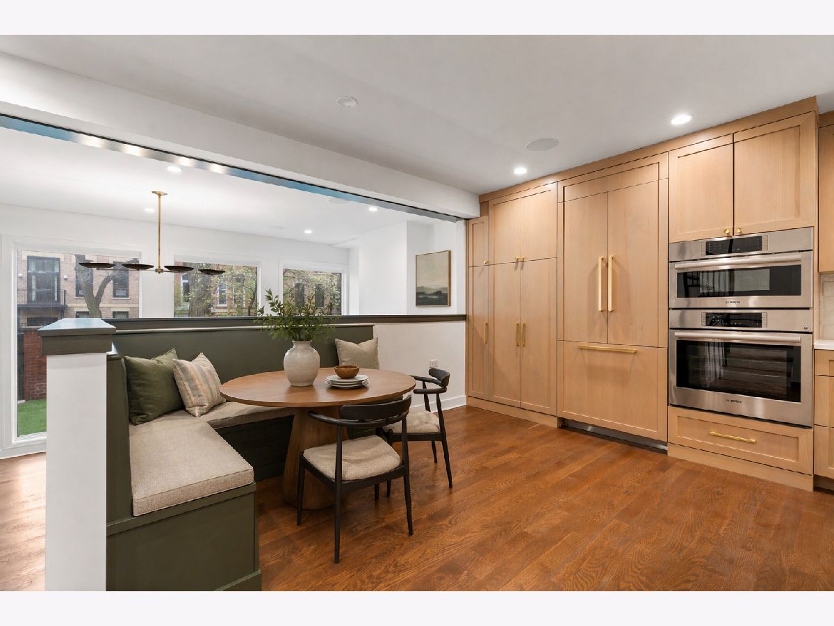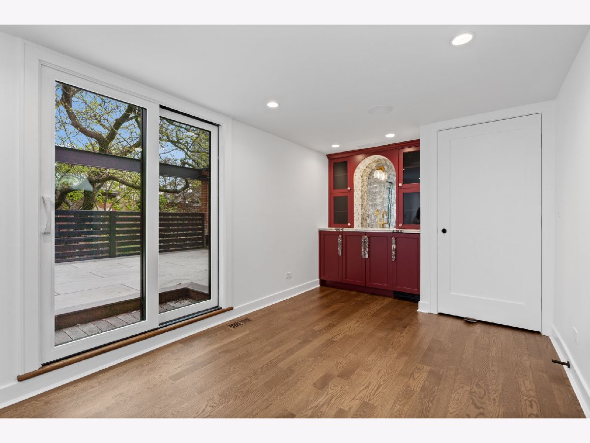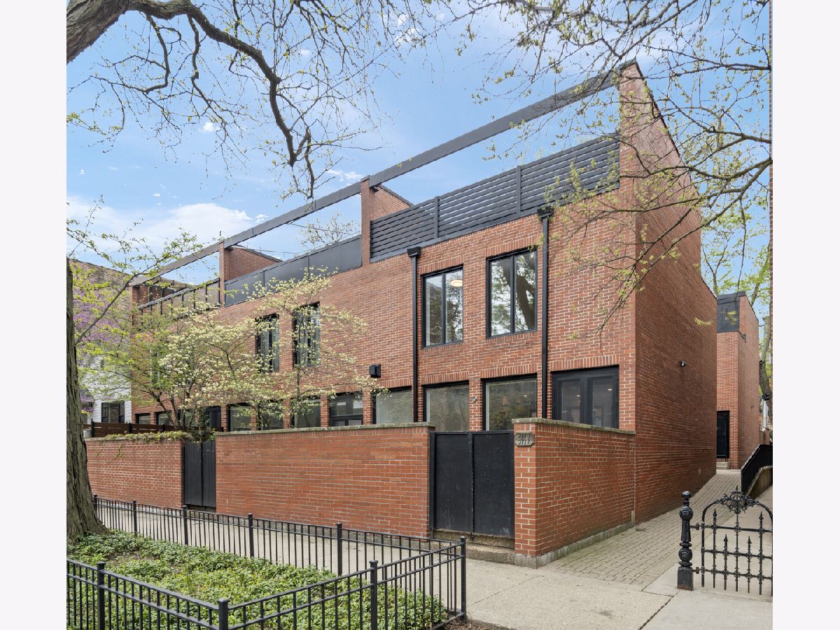 Meticulously gut renovated and fully rebuilt 4-bedroom fee-simple townhome on a quiet, historic, tree-lined street in prime East Lincoln Park offering an exceptional blend of timeless design, modern luxury, and functionality. Thoughtfully designed with three bedrooms on one level and elevated, designer finishes throughout. Enter this end unit, corner townhome through the main level foyer which really sets the tone with mosaic tile flooring, classic wainscoting, designer lighting, and stunning House of Hackney wallpaper. An elegant arched entry leads to the show-stopping kitchen featuring custom Amish cabinetry with walnut drawer interiors, quartz countertops, paneled Bosch appliances, and an oversized reeded island with mitered marble counters. A built-in banquette within the kitchen creates the perfect space for everyday dining. The expansive living and dining area is filled with natural light, highlighted by soaring ceilings, floor-to-ceiling windows, and a dramatic two-sided corner fireplace with a floating quartzite bench and surround, seamlessly connecting to the large private yard and patio. The second level offers three generously sized bedrooms, including a luxurious king-sized primary suite with a walk-in closet and spa-caliber bath featuring heated marble mosaic floors, a walnut dual vanity with leathered granite counters, custom lighting and an oversized shower with dual shower heads and body sprays. Two additional bedrooms are complemented by a beautifully finished full bath with penny tile, walnut vanity, porcelain wainscot, and a soaking tub. The top floor is designed for both relaxation and entertaining, complete with a spacious family room and access to a private roof deck. A marble wet bar with smoked glass cabinetry and a paneled beverage fridge adds both style and function. The lower level includes a fourth bedroom, a third full bath with designer tile and lighting, and a fully reimagined laundry room with side-by-side washer and dryer, DryAway racks, and custom hamper shelving. Unbeatable location just steps from Lincoln Park Zoo, Oz Park, the shops and restaurants at Lincoln Commons or Clark St, plus the lakefront just a half mile away. Enjoy easy access to farmers markets, parks, and all the amazing things that Lincoln Park has to offer, all within the highly sought-after Lincoln School District. 1 garage parking included.