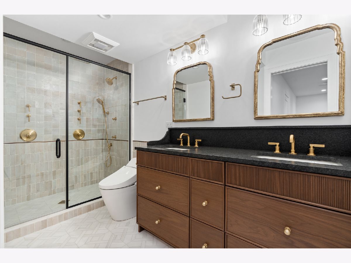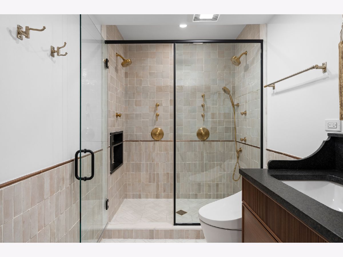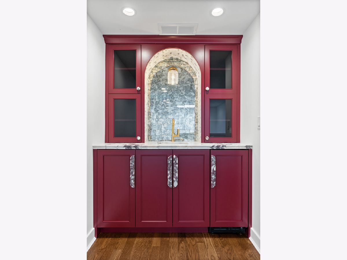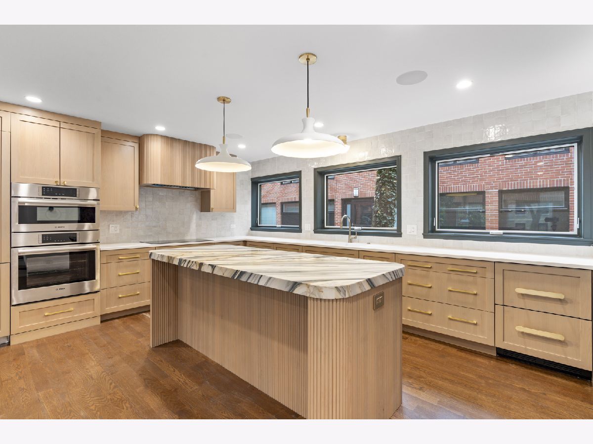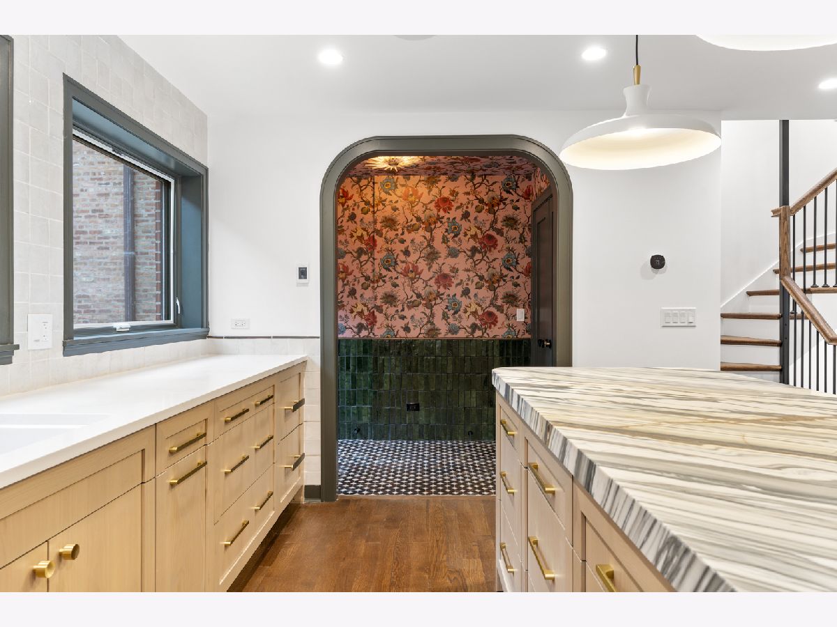 Meticulously gut renovated and fully rebuilt 4-bedroom fee-simple townhome on a quiet, historic, tree-lined street in prime East Lincoln Park offering an exceptional blend of timeless design, modern luxury, and functionality. Thoughtfully designed with three bedrooms on one level and elevated, designer finishes throughout. Enter this end unit, corner townhome through the main level foyer which really sets the tone with mosaic tile flooring, classic wainscoting, designer lighting, and stunning House of Hackney wallpaper. An elegant arched entry leads to the show-stopping kitchen featuring custom Amish cabinetry with walnut drawer interiors, quartz countertops, paneled Bosch appliances, and an oversized reeded island with mitered marble counters. A built-in banquette within the kitchen creates the perfect space for everyday dining. The expansive living and dining area is filled with natural light, highlighted by soaring ceilings, floor-to-ceiling windows, and a dramatic two-sided corner fireplace with a floating quartzite bench and surround, seamlessly connecting to the large private yard and patio. The second level offers three generously sized bedrooms, including a luxurious king-sized primary suite with a walk-in closet and spa-caliber bath featuring heated marble mosaic floors, a walnut dual vanity with leathered granite counters, custom lighting and an oversized shower with dual shower heads and body sprays. Two additional bedrooms are complemented by a beautifully finished full bath with penny tile, walnut vanity, porcelain wainscot, and a soaking tub. The top floor is designed for both relaxation and entertaining, complete with a spacious family room and access to a private roof deck. A marble wet bar with smoked glass cabinetry and a paneled beverage fridge adds both style and function. The lower level includes a fourth bedroom, a third full bath with designer tile and lighting, and a fully reimagined laundry room with side-by-side washer and dryer, DryAway racks, and custom hamper shelving. Unbeatable location just steps from Lincoln Park Zoo, Oz Park, the shops and restaurants at Lincoln Commons or Clark St, plus the lakefront just a half mile away. Enjoy easy access to farmers markets, parks, and all the amazing things that Lincoln Park has to offer, all within the highly sought-after Lincoln School District. 1 garage parking included.