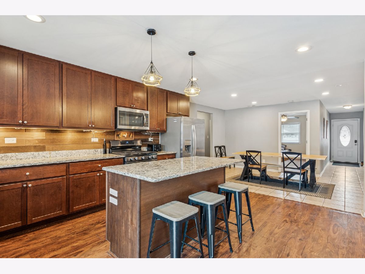 Set on nearly one acre in unincorporated McHenry County, this ranch-style home is located on a quiet dead-end street within the Griswold Lake Hills subdivision, offering privacy and a spacious setting. The residence provides over 2,000 square feet of single-level living with 4 bedrooms and 2 full bathrooms. Extensive renovations were completed between 2017 and 2018. These updates included a fully updated kitchen with 42 inch wood cabinets, granite counter tops, and stainless steel appliances; Both bathrooms, windows, doors, flooring, fencing, and major mechanical systems such as forced-air heating and central air conditioning. The living room features tons of open space with a brick wood-burning fireplace. Positioned between the kitchen and living room, the dining area enhances the flow of the home's seamless layout with enough room to enjoy meals with the whole family. The home is serviced by a private well with a high-quality water treatment and filtration system, along with septic. Additional improvements include a newer roof and gutters (2021). Updated exterior paint on both the home and garage.(2023) Fireplace insert cartridge (2023) A natural gas-powered 13KW generator (2021). A detached garage was newly constructed in 2023, measuring approximately 24' x 28'. The expansive lot provides ample outdoor space with flexibility for a variety of uses.