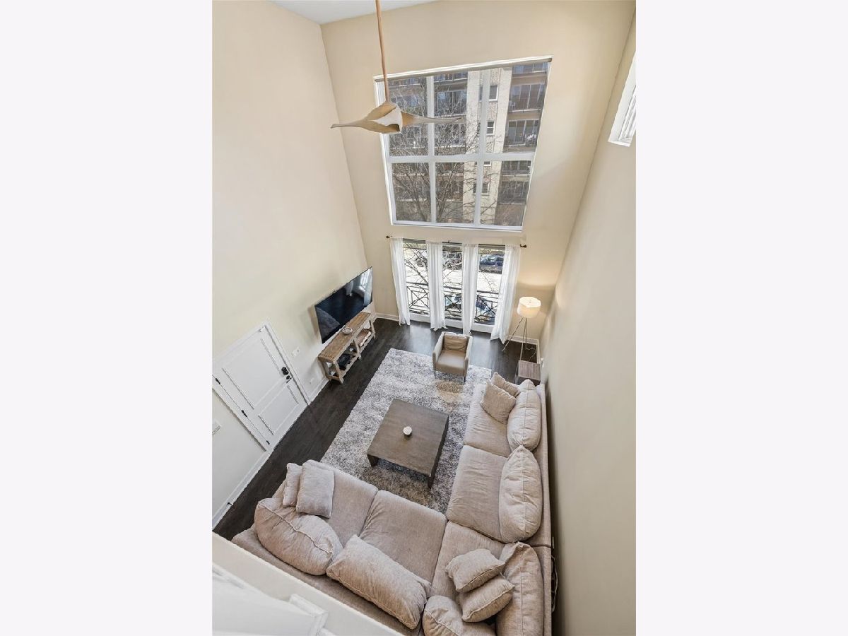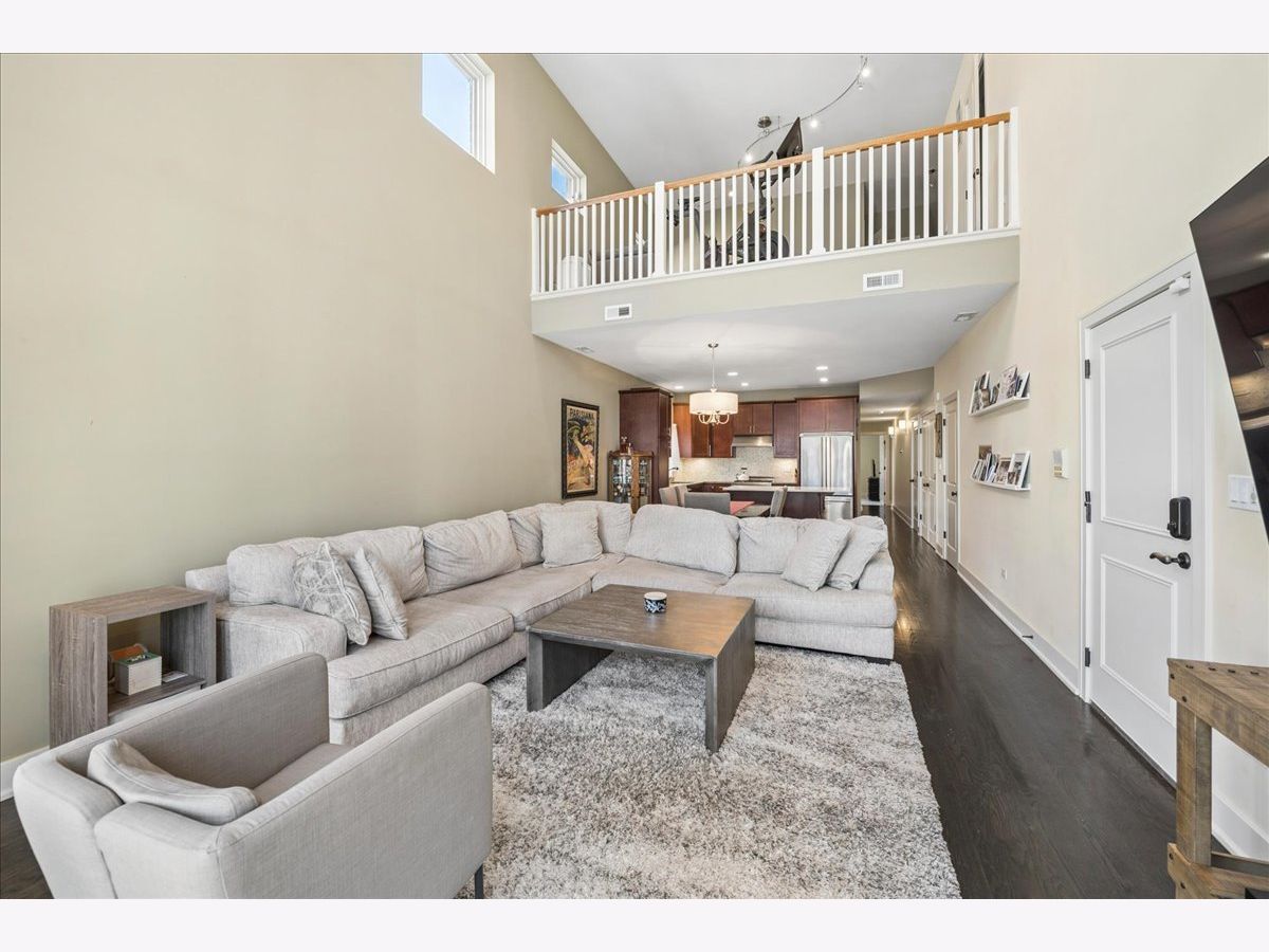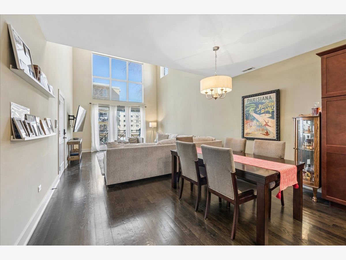 Luxury living awaits in this striking contemporary condominium offering two levels of thoughtfully designed space. Sun-drenched interiors feature soaring 20FT ceilings in the living/dining area and dramatic floor-to-ceiling windows that fill the home with natural sunlight. The main living space boasts hardwood flooring throughout and a juliet balcony, perfect for entertaining. The open floor plan flows effortlessly into a beautifully appointed kitchen with white countertops, stainless steel appliances, a large pantry, and a versatile center island. Custom pantry shelving and a wine rack added in 2023 enhance both style and functionality. Upstairs, a spacious lofted family room provides flexible living space ideal for a home office, lounge, or media area. The expansive primary suite offers hardwood floors, a private balcony, a generous walk-in closet, and spa-like bath with double vanity, whirlpool tub, and walk-in shower. The second and third bedrooms share a full bathroom in the hall. Additional highlights include abundant closet space, in-unit laundry, and one garage space with an exterior/tandem parking space. Conveniently located near downtown Oak Park, River Forest Town Center, Madison Street shops and restaurants, the Metra, Green & Blue Line trains, and easy access to I-290. The front top living room window treatment is sold AS IS.