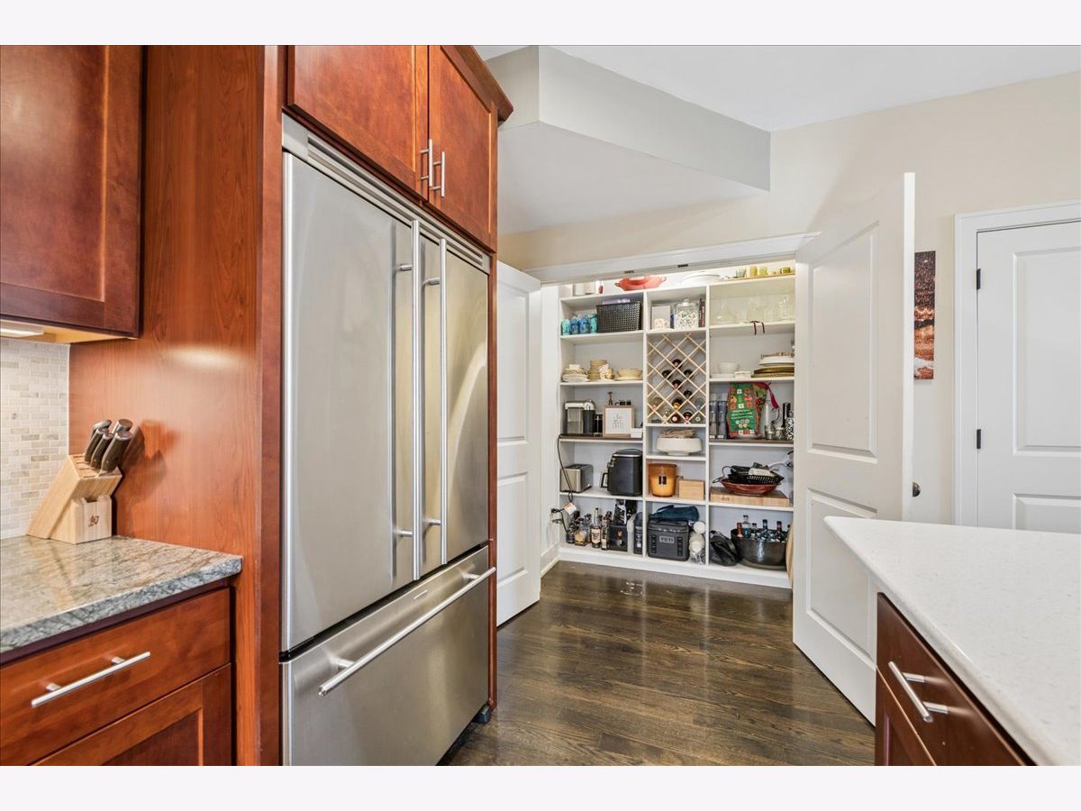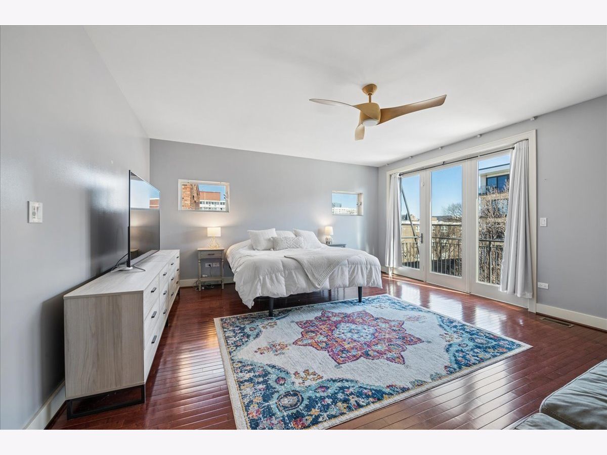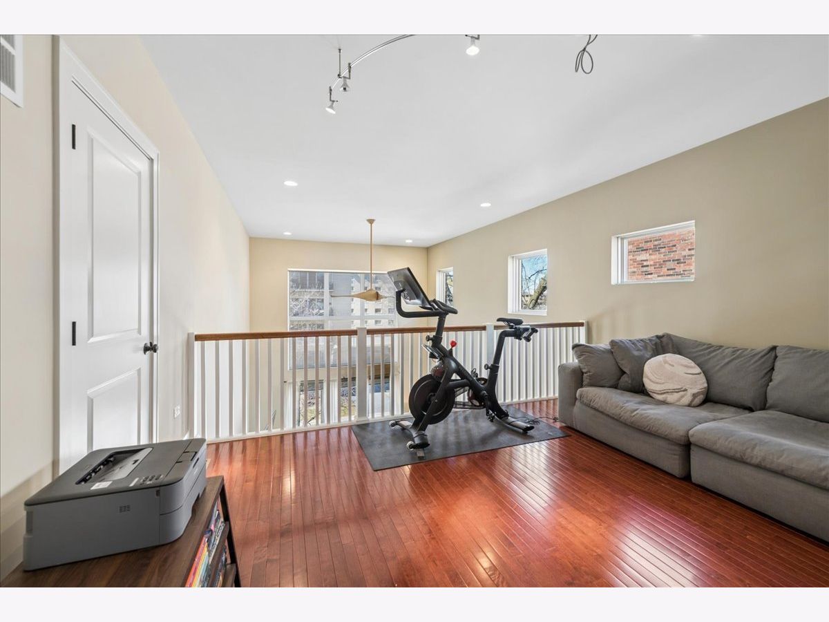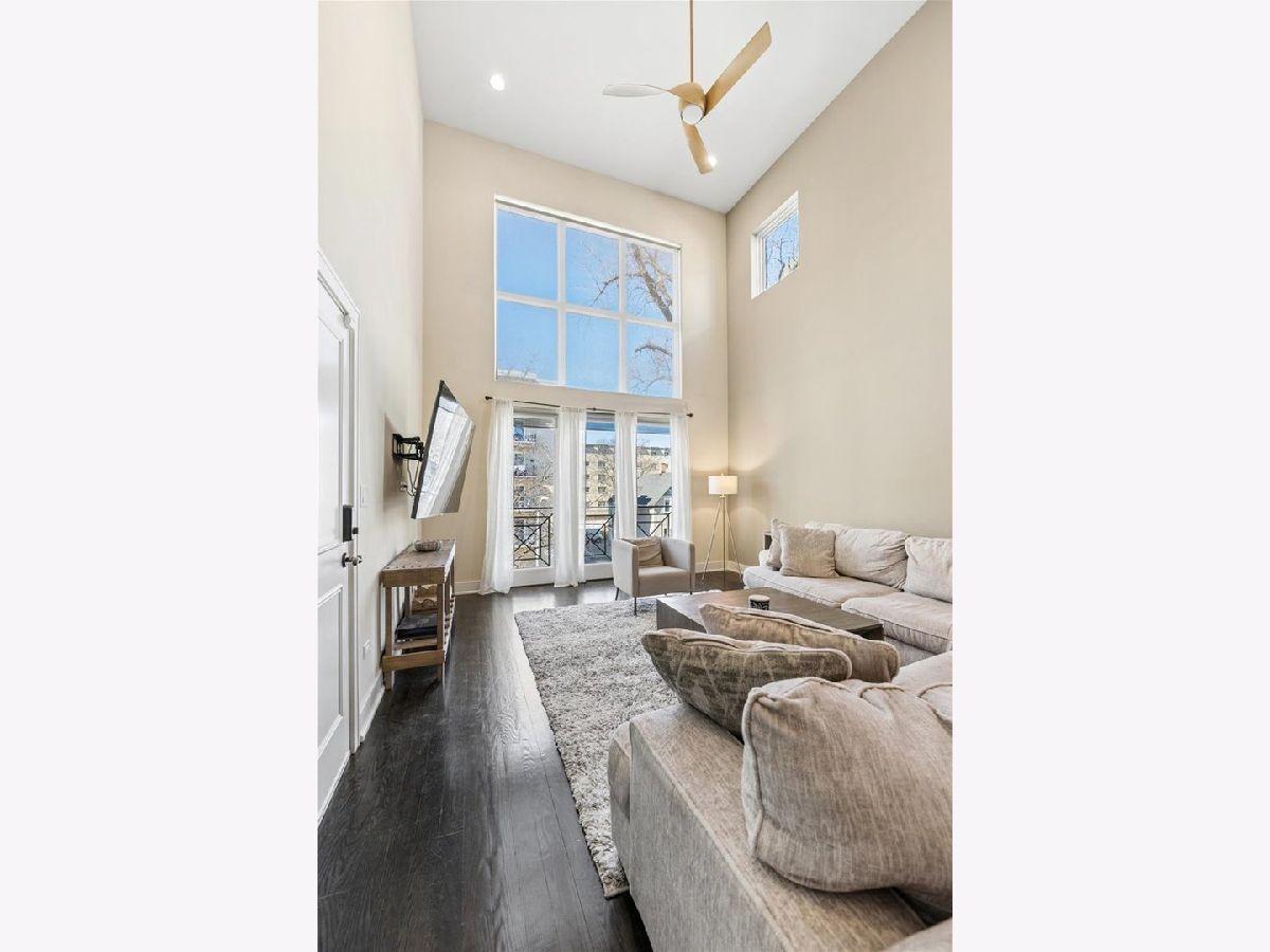 Luxury living awaits in this striking contemporary condominium offering two levels of thoughtfully designed space. Sun-drenched interiors feature soaring 20FT ceilings in the living/dining area and dramatic floor-to-ceiling windows that fill the home with natural sunlight. The main living space boasts hardwood flooring throughout and a juliet balcony, perfect for entertaining. The open floor plan flows effortlessly into a beautifully appointed kitchen with white countertops, stainless steel appliances, a large pantry, and a versatile center island. Custom pantry shelving and a wine rack added in 2023 enhance both style and functionality. Upstairs, a spacious lofted family room provides flexible living space ideal for a home office, lounge, or media area. The expansive primary suite offers hardwood floors, a private balcony, a generous walk-in closet, and spa-like bath with double vanity, whirlpool tub, and walk-in shower. The second and third bedrooms share a full bathroom in the hall. Additional highlights include abundant closet space, in-unit laundry, and one garage space with an exterior/tandem parking space. Conveniently located near downtown Oak Park, River Forest Town Center, Madison Street shops and restaurants, the Metra, Green & Blue Line trains, and easy access to I-290. The front top living room window treatment is sold AS IS.
