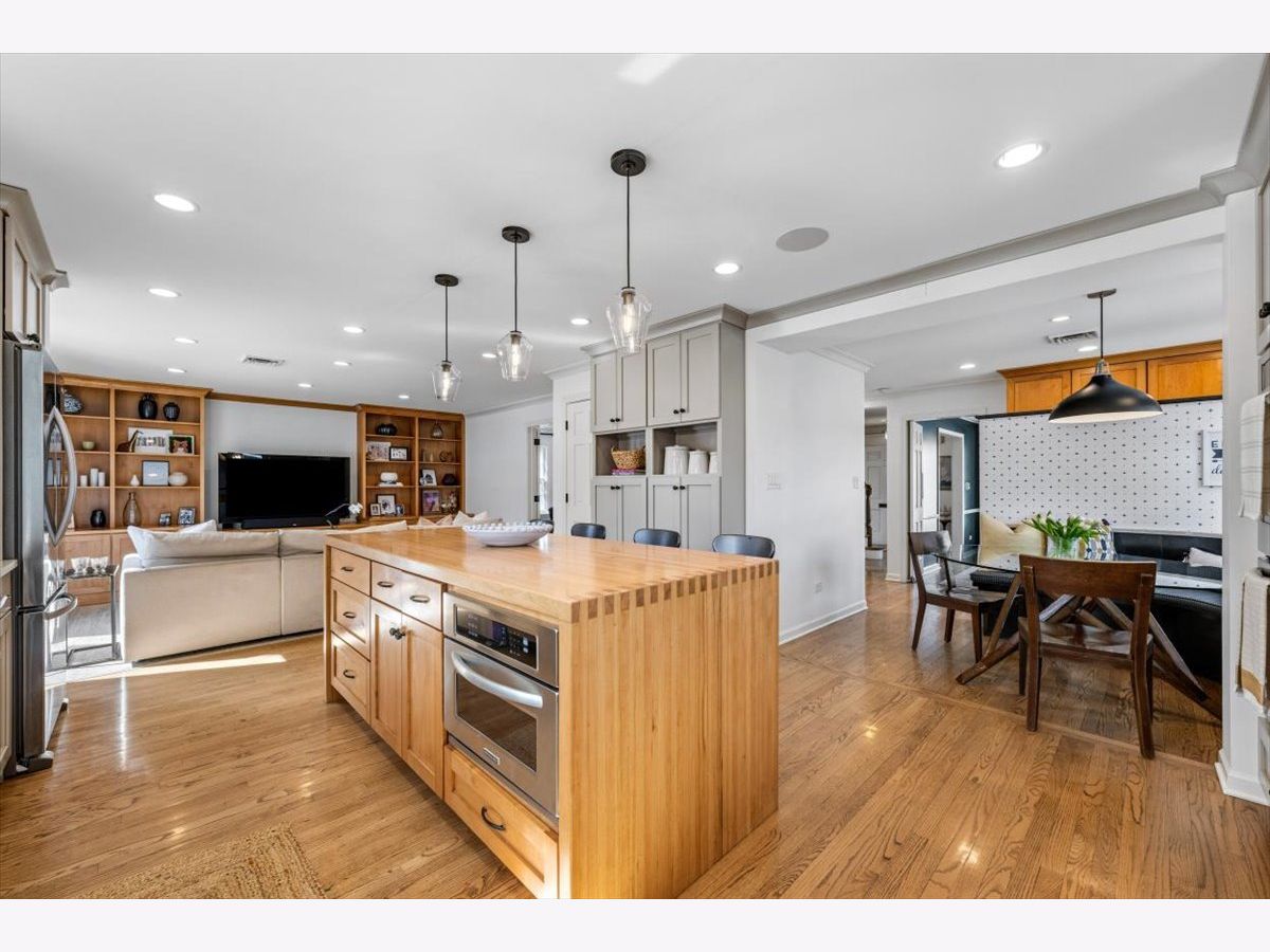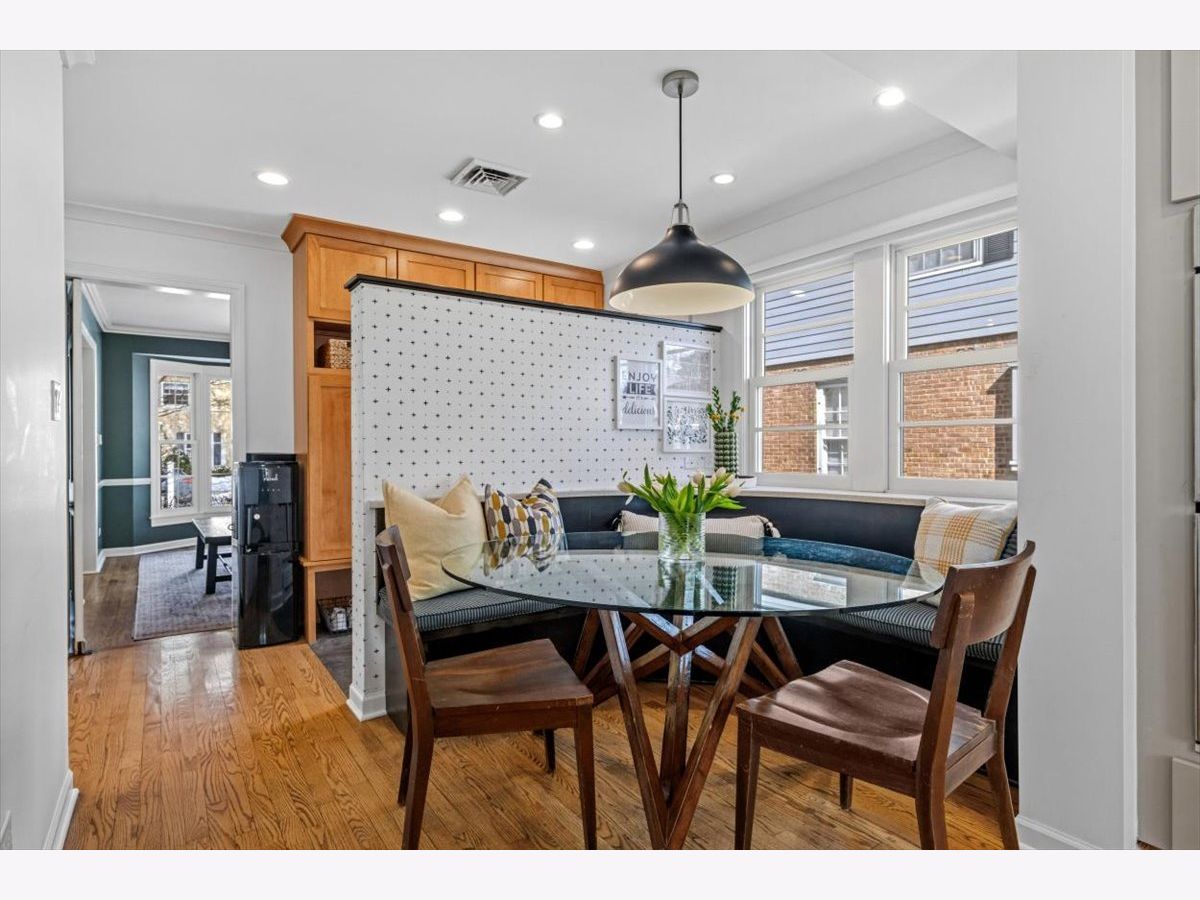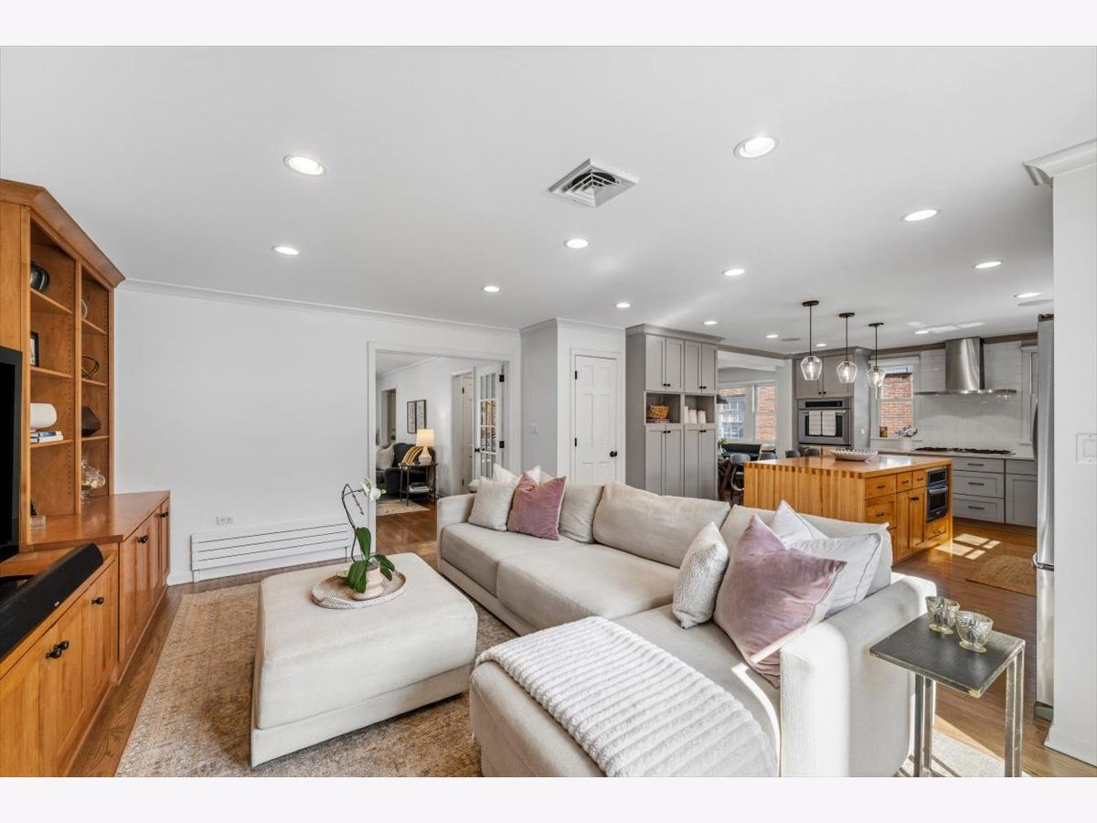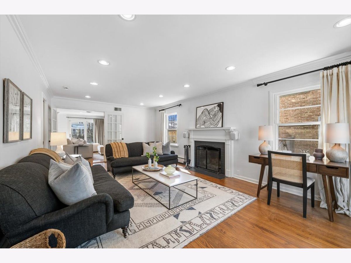 Just Listed! Do not miss this timeless and inviting 4 bed, 2.1 bath home in the highly sought-after Kenilworth Gardens neighborhood! Step inside to a thoughtful floor plan with hardwood floors throughout. The large living room features beautiful natural light, bay windows, and a wood-burning fireplace. Transition seamlessly through French doors into the family room featuring a built-in bookcase and media center, along with sliding glass doors leading to the rear patio. You will love the open flow to the kitchen, perfect for family gatherings and entertaining! The kitchen offers fantastic space with loads of cabinetry, a large center island with counter seating, all stainless steel appliances, and a walk-in pantry. Just off the kitchen, enjoy the eat-in area with a charming built-in bench for everyday meals. The bright dining room with bay windows offers the perfect setting for gathering and celebrations. A side entrance from the driveway leads to an adjoining mudroom with built-in cubbies, plus a powder room to complete the first level. On the second level, you will find 4 generous bedrooms and 2 full baths with hardwood floors throughout. The spacious primary bedroom offers a private ensuite bath with a step-in shower and a generous closet. The additional three bedrooms are gracious with ample closet space and share the updated hall bath. The finished basement offers wonderful flex space for a recreation room, additional living area, or playroom, plus a private office, laundry area, and plenty of storage. Outside, you will love the fully fenced yard with a brick paver patio, perfect for relaxing and entertaining! Enjoy the front driveway with swing gate that leads to the detached 2-car garage. Do not miss the opportunity to live in this outstanding location - near Harper Elementary, Thornwood Park, schools, the train, easy highway access, and close proximity to downtown Wilmette. You will love where you live!