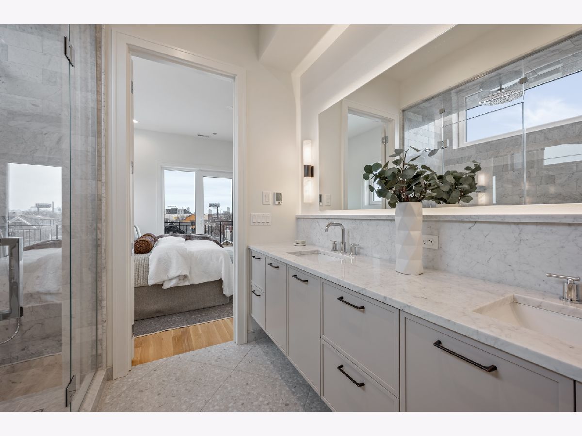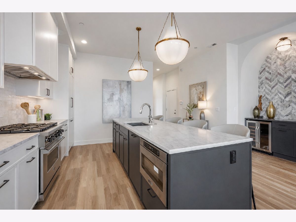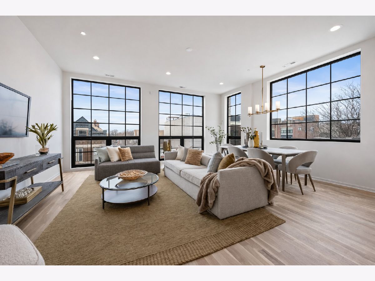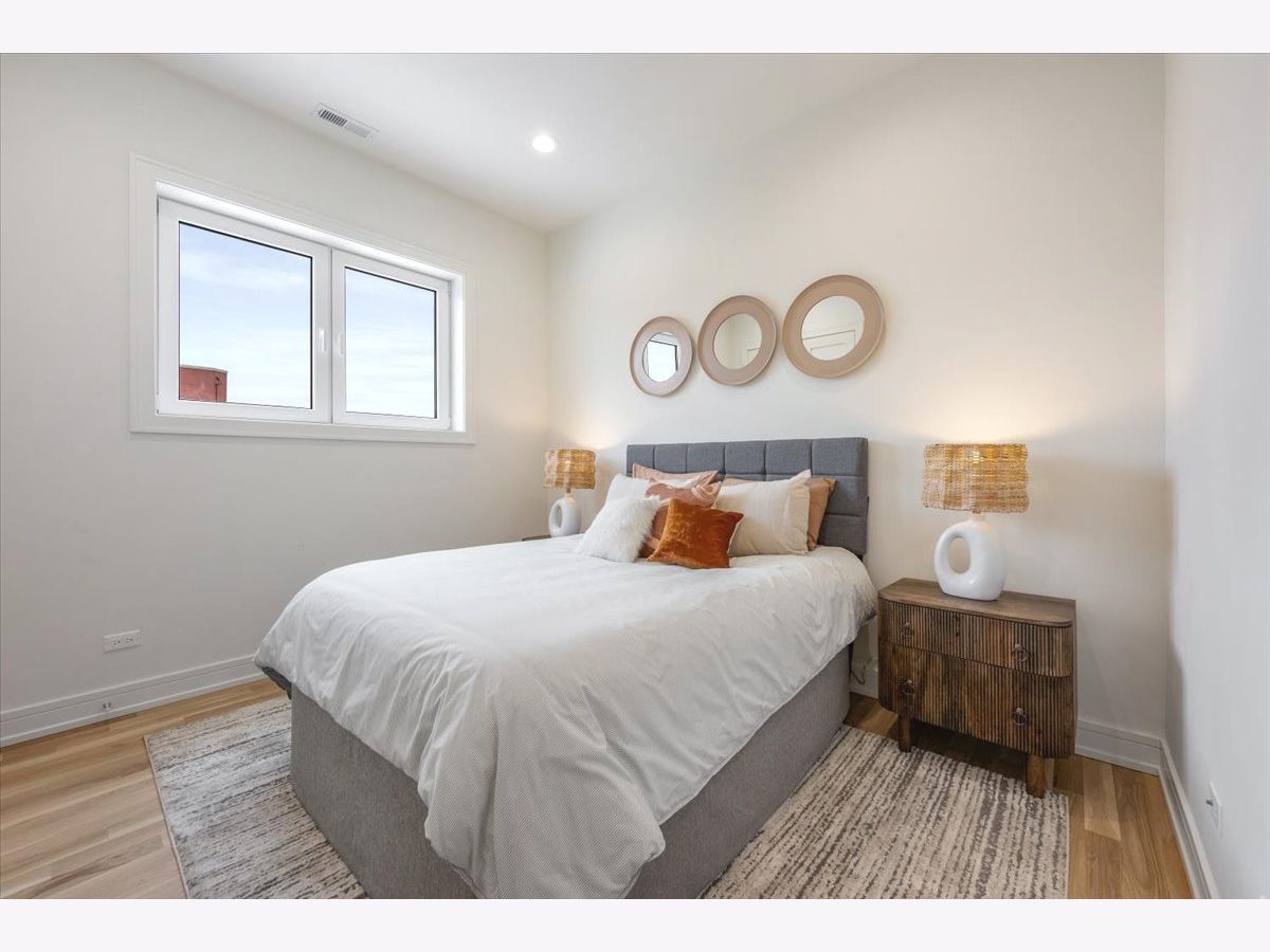 Halcyon Development proudly presents a boutique elevator building showcasing expansive 3 bed/ 2 bath units tailored for today's discerning buyer. Features include sleek custom kitchen with a oversized island, low-lit ambient lighting, designer pendant fixtures, stone countertops, and a professional-grade appliance packaged. The dramatically designed arch-bar features a chevron marble backsplash that creates a true "wow moment" in the open-concept living space. The spa-inspired primary bathroom offers sophistication with beautiful taupe floating dual vanities, heated terrazzo tiles, backlit mirrors, elegant alabaster sconces, and heated towel bar. Throughout the home, floor-to-ceiling grid-style windows evoke classic Brooklyn charm, enhanced by white oak floors and 8' solid-core doors. Each unit is fully wired for AV, blending luxury with modern functionality. Outdoor spaces finished in porcelain pavers. Situated just steps from neighborhood dining favorites like Le Bouchon and Club Lucky, these residences offer unmatched access to chic boutiques, cozy cafes, and the 606 Trail. The Damen Blue Line station is just a short walk away, making commuting a breeze. Just two left!