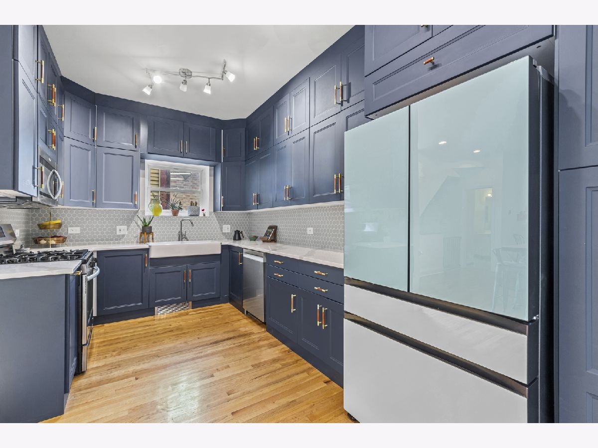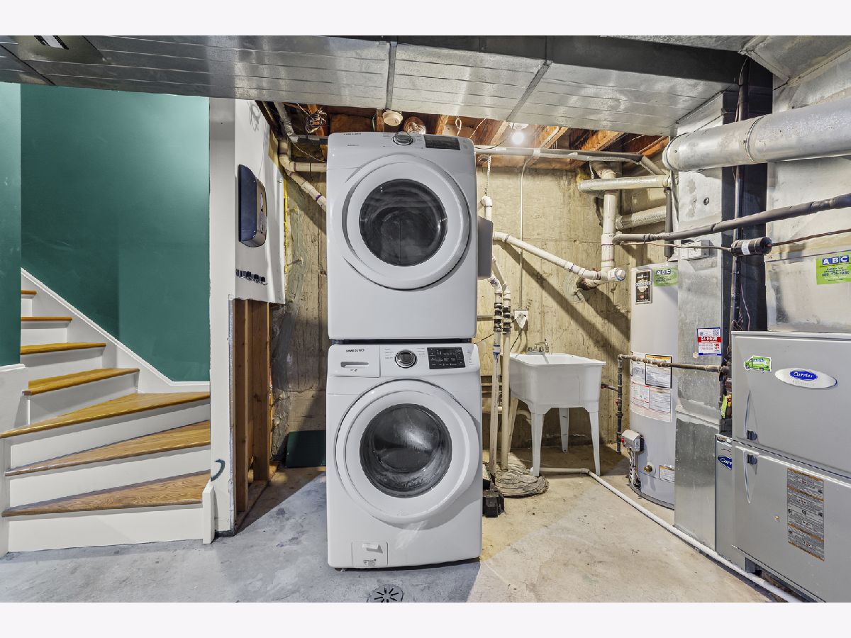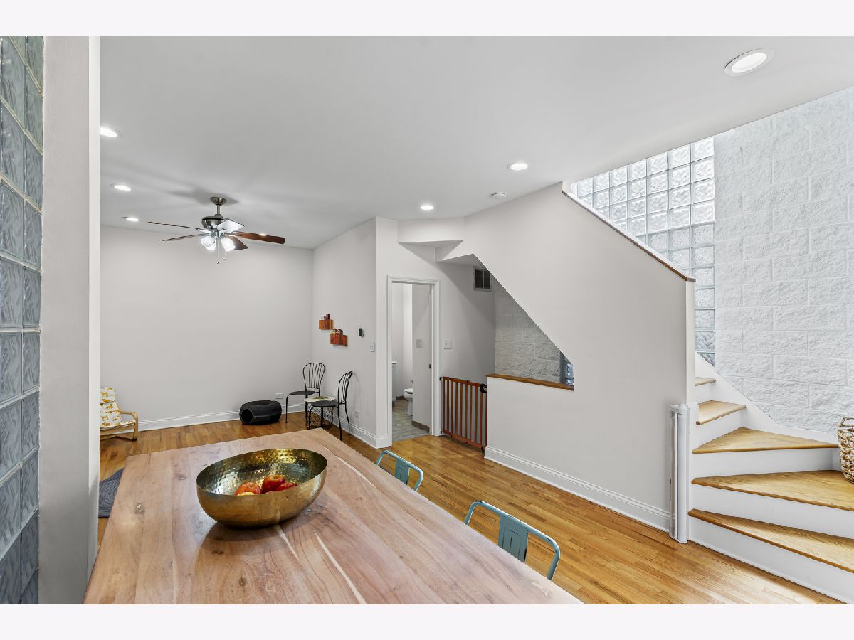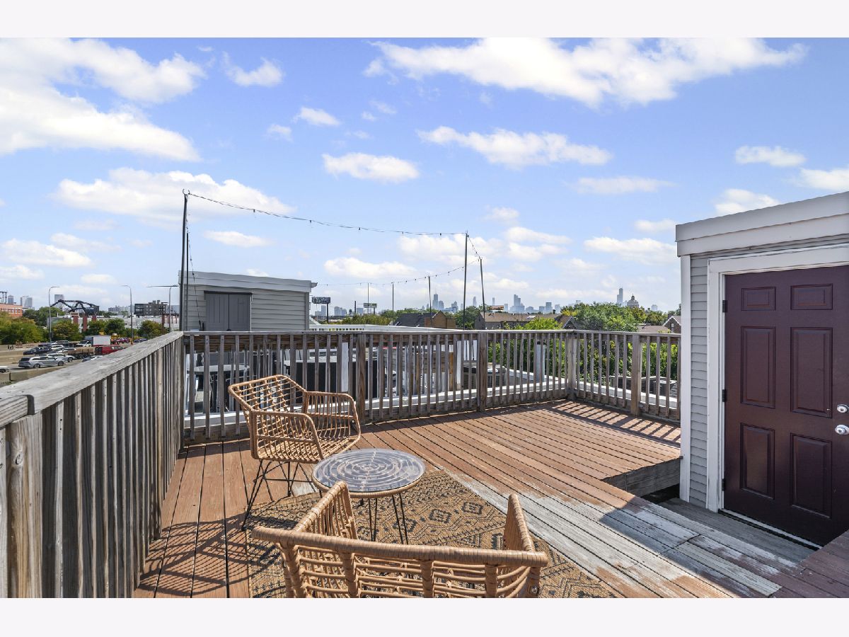 Tucked away on a very quiet Bucktown street, this spacious 3 bedroom, 2.5 bath townhome offers generous living space, thoughtful updates, private attached garage parking, a rooftop deck, and the freedom of fee-simple ownership with no HOA fees or rental restrictions. Three levels of finished living space begin with a welcoming foyer, a large family room with gas fireplace (that works), and a versatile first-floor bedroom complete with a built-in bookcase and Murphy bed-perfect for guests or a quiet home office. The open-concept second floor is designed for today's lifestyle, featuring flexible living and dining areas, a convenient half bath, and a striking NEW kitchen with rich slate-blue cabinetry accented by gold and wood hardware, a farmhouse sink, a new Bosch dishwasher, and a new Samsung Bespoke refrigerator. Upstairs, the primary suite includes a spacious walk-in closet and private en-suite bath, while a bright and airy second bedroom with easy access to another full bath provides comfort and versatility. The rooftop deck delivers sweeping skyline views and is an ideal spot for summer nights with friends, morning coffee, or simply enjoying the city from above. Oak hardwood floors run seamlessly throughout, and every closet is outfitted with custom organizers for maximum storage. A full basement provides laundry, abundant storage, and endless possibilities for customization, while private garage parking with additional storage completes the home. All this, just steps from the 606 Trail, public transit, Bucktown's celebrated restaurants, nightlife, shops, parks, and Pulaski International Elementary School. Truly a rare find. NOTES: Unit A faces Winchester, UNIT B is the middle unit accessed through the gate to the right of the A unit, Unit C faces the alley. NO HOA FEE's. Fee simple property. Recent work - new rubber roof, newly remodeled kitchen, new bookshelf and murphy bed in first floor bedroom, and more. Windows and doors 2017, High efficiency furnace 2016, AC compressor age unknown, Oven/range 2018, Microwave 2019, Bosch dishwasher 2025, Samsung Bespoke refrigerator 2025.