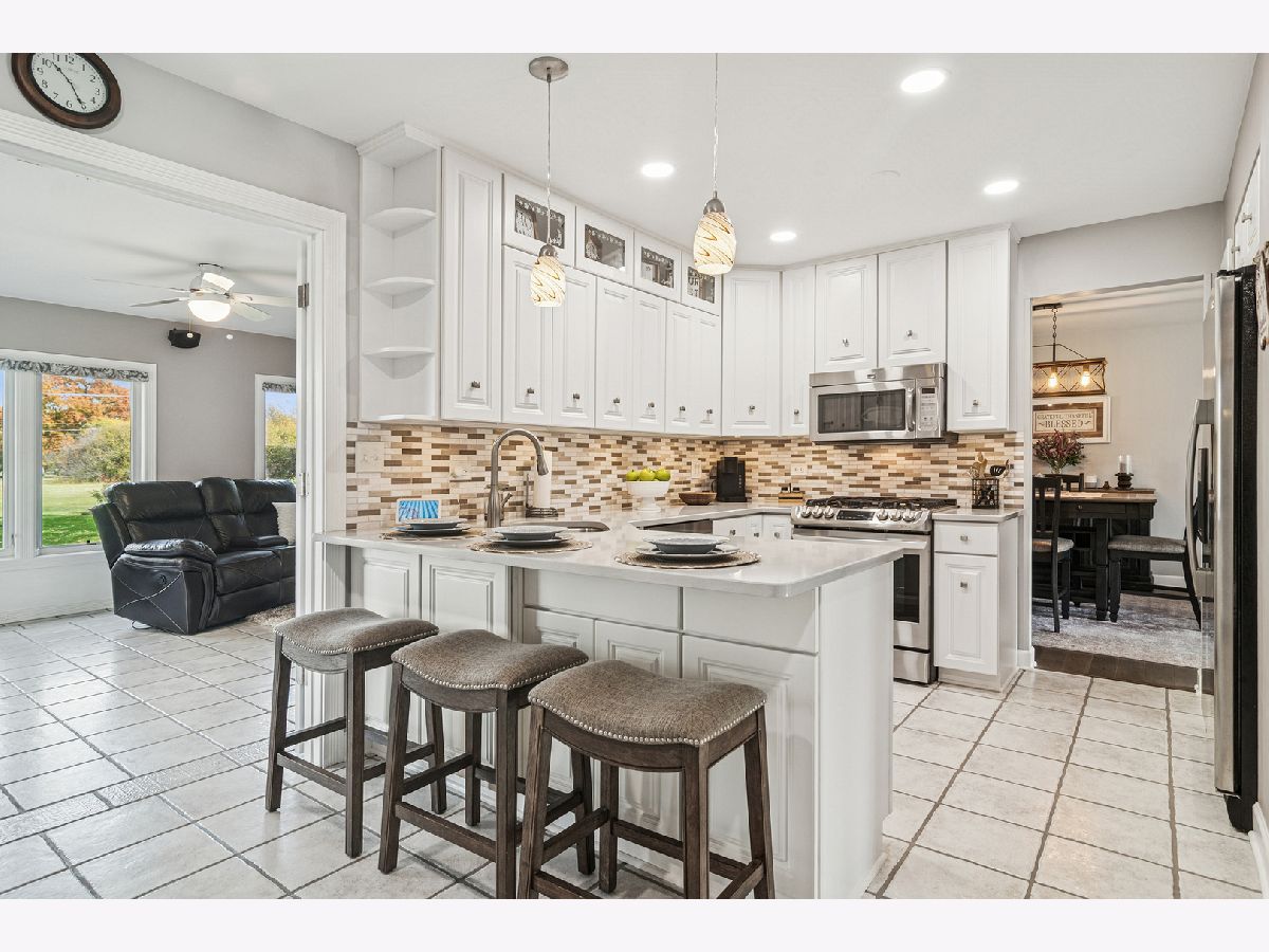 A true don't miss opportunity to get into the desirable Ivy Hill neighborhood. Expanded and immaculately cared for, this large split-level home offers a wonderful lifestyle. The classic exterior and mature landscape provide timeless appeal. From the moment you step through the front door, you'll find warm and welcoming spaces and feel a sense of quality. Beautiful natural light spills in the front of the home through the large windows. Spend time in the living room quietly reading or watching the neighborhood activity. It flows easily to the dining room and makes a great gathering spot with friends to enjoy drinks or game night. The kitchen is bright and beautiful. It has been remodeled and features white cabinetry, stainless appliances, pendant lighting, a built-in dry bar with beverage refrigerator, and a peninsula perfect for creating a conversation and eating area. A large family room addition just off the kitchen created great combination space for hanging out or entertaining. Plenty of room for your comfy furniture, game table and more. You'll love hosting football watch parties and holidays here with plenty of space for everyone to hang out. The room is wrapped in windows, so you will and enjoy beautiful views throughout the seasons. It's the perfect backdrop for a lifetime of memories. From this room, there is access to the rear yard that features a gazebo to extend your living outdoors. A few steps down from the kitchen is a 2nd family room. A corner fireplace creates a cozy atmosphere. Upstairs you'll find a primary bedroom suite with a great walk-in closet featuring multiple hanging areas and cubbies of varying sizes, making it easy to see all your outfit choices. The remodeled primary bathroom features a walk-in shower with glass doors, vessel sink, and extra counter space. On this level you'll also find 3 additional good-sized bedrooms, hall bath with tub/shower combo, and access to a unique and fun bonus space. Let your imagination run wild-create the playroom of your kids dreams or set up the ultimate gaming area/teen hangout space and still have plenty of room for storage. Note- this area has a low ceiling and is elevated from the floor. Step outside and imagine relaxing at the end of a long day or hosting friends in the gazebo while kids play in the yard. The grounds surrounding the entire home have been well cared for. The Ivy Hill location is amazing- close to Camelot park, pool, and playground, top rated Ivy Hill Elementary School, and Lake Arlington recreation area. Close to abundant shops, restaurants, & conveniences, & a short drive to popular downtown Arlington Heights. A trifecta of award winning schools-Ivy Hill Elementary, Thomas Middle School, and Buffalo Grove High School is icing on the cake!