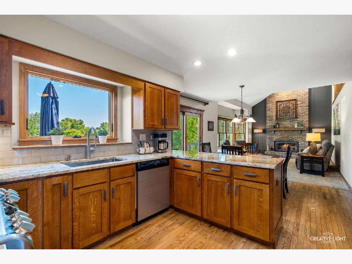 This unique home has a finished walk out basement with a huge rec room, adorable bathroom, a storage and utility room. There are Andersen double pane windows, fresh paint, real hardwood floors, 3 bedrooms + a huge loft, a concrete drive and the furnace, A/C, water softener, roof and appliances have all been replaced. The supersized 3 car garage is expanded to accommodate even the largest of vehicles with the exterior bay measuring in at 22ft long and 9ft wide. While sitting on the multi-level, maintenance free deck, enjoying the views of the lake and overlooking this almost 1/2 acre lot - you will know you have found your new home! The main floor has an updated kitchen with shaker style cabinets, granite and stainless appliances. The vaulted ceiling in the family room opens to the loft upstairs and the floor to ceiling brick fireplace is a beautiful focal point. Rounding out the first floor is the laundry room, dining room and living room - plenty of space for everyone! Upstairs you will discover a primary suite with a walk-in closet and an updated bathroom complete with a heated ceramic floor, a custom shower with a ceramic surround. The multi-purpose loft and the other 2 bedrooms all share a full hallway bathroom, have ceiling fans/lights and the closets are spacious. Located in Lakeview Estates, this home is just 6 houses down from the neighborhood park, across Grove Rd is the water park, sled hill, soccer fields, skate park and the local elementary. Hop on your bike and you are quick ride into the quaint downtown Oswego with its festivals, parades, restaurants and shops. These original owners have created the perfect combination of quality upgrades that have been meticulously maintained. Welcome home!