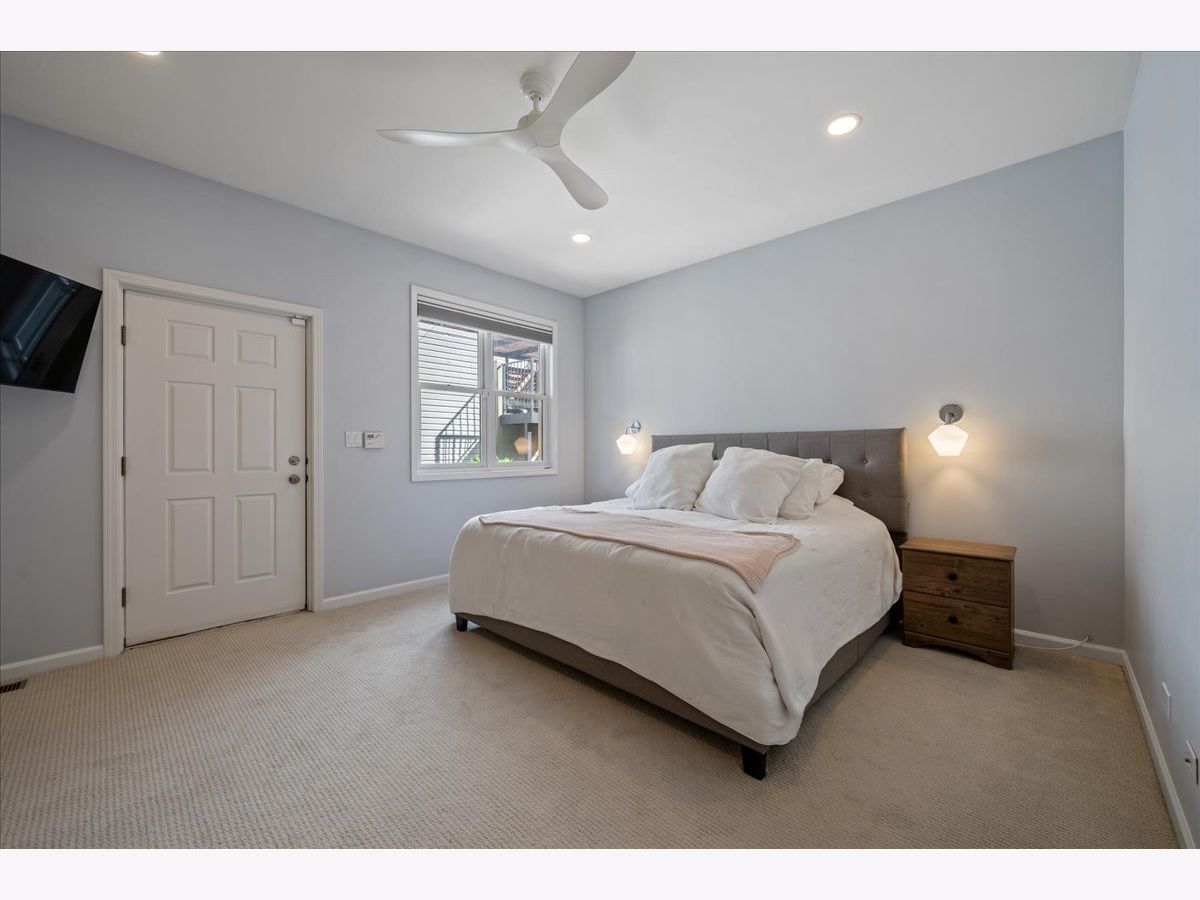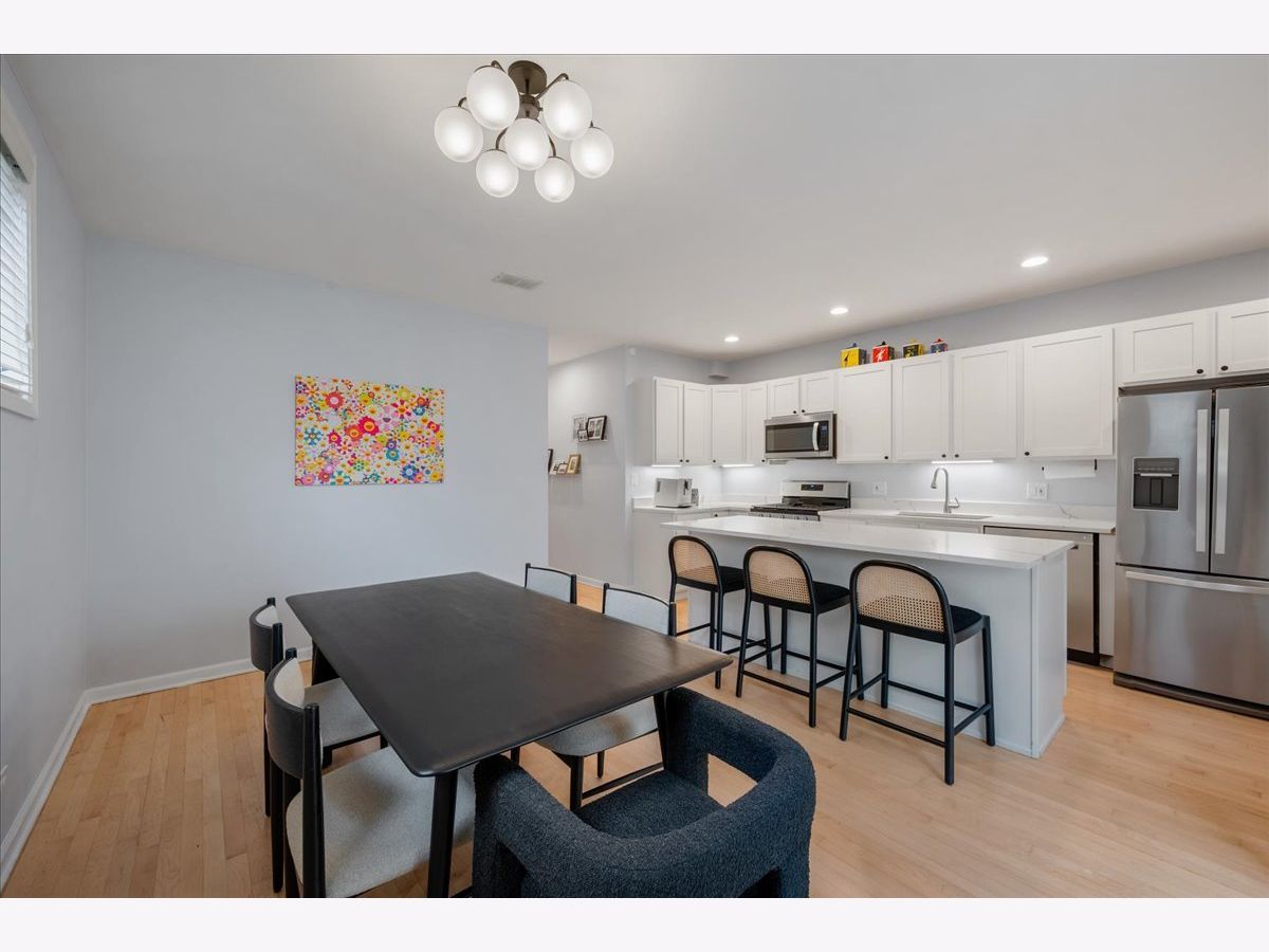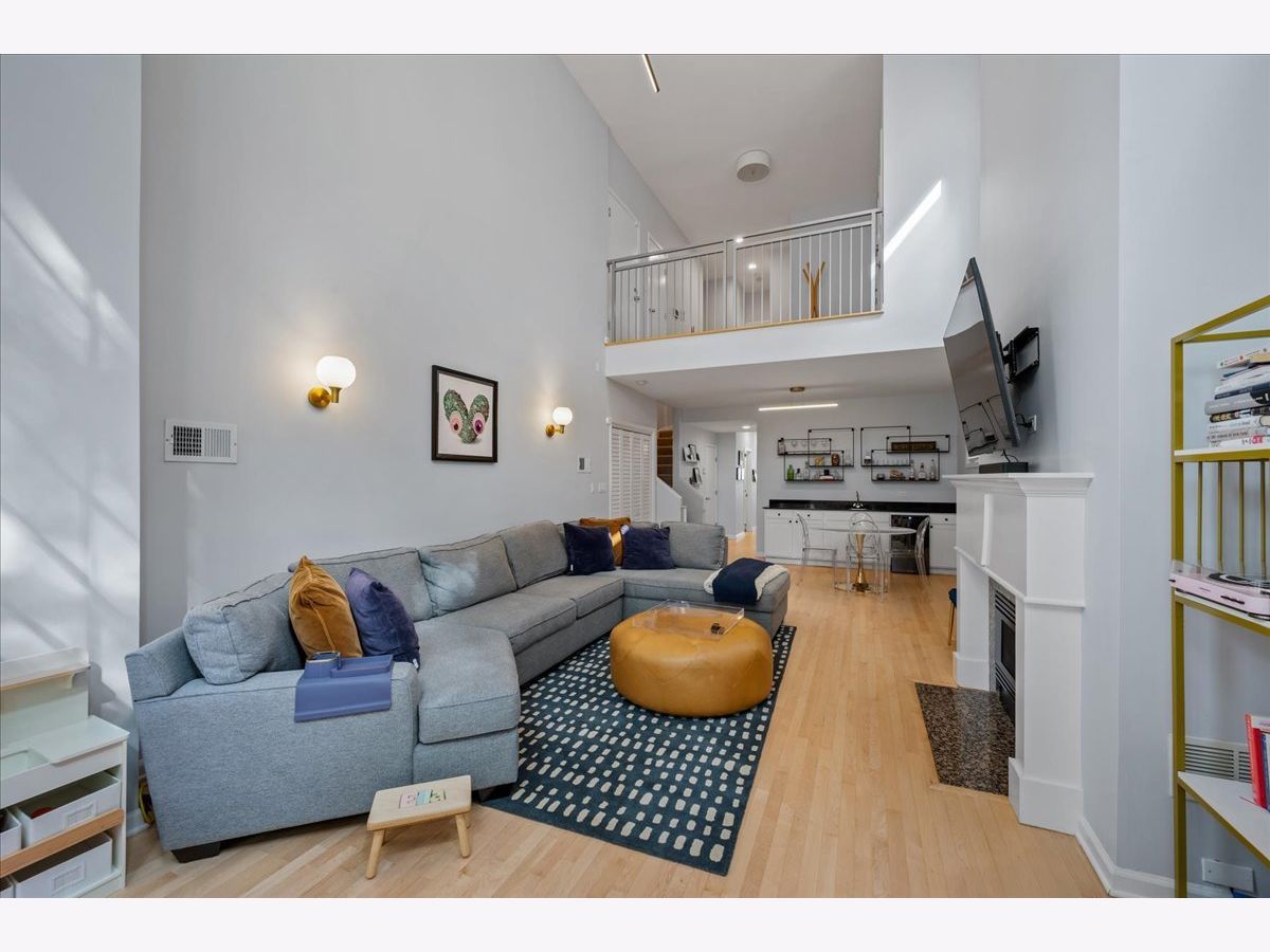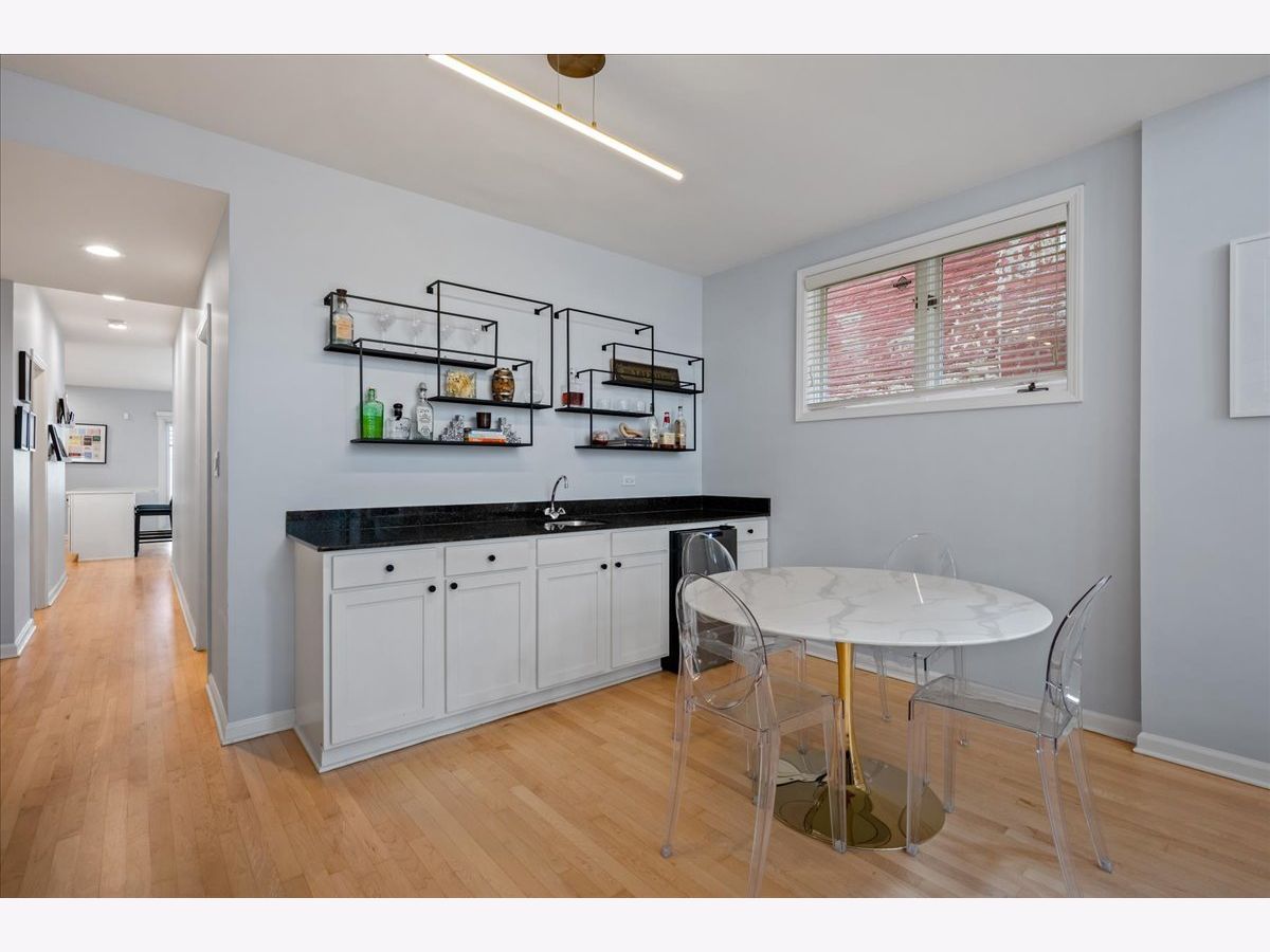 Bright and sunny south-facing 3 bed, 3 bath duplex down on a tree-lined street in the heart of Wicker Park! With soaring 20'+ ceilings and freshly refinished floors throughout (2026 - dark wood stain not shown in photos), this home welcomes you in immediately with an impressive living area. New LED recessed lighting, custom window treatments, built-in wet bar, gas fireplace, and dramatic windows flood the space with natural light. There's room for both a dining table and a work-from-home nook, plus access to a private terrace. The updated kitchen and large eat-in dining area open to a patio perfect for grilling, showcasing new quartz countertops, crisp white cabinetry, newer stainless steel appliances, and a spacious island with barstool seating. The primary suite offers a serene retreat with a recently renovated en-suite bath featuring quartz counters, modern gray cabinetry, new tile, mirrors, vanity, toilet, and both a soaking tub and walk-in shower with honeycomb tile. The first-floor bathroom has also been fully updated, and the second upstairs bath features a newer toilet (2024). Additional highlights include new carpet (2022), freshly painted walls and baseboards, updated light fixtures throughout, new patio door and screen door, reconfigured modern banister, and newer furnace and water heater (2023). In-unit washer/dryer (2019). Garage parking included, plus massive common attic storage over the garage. All within steps of Division Street's restaurants, bars, shops, parks, the 606 Trail, and Blue Line stops. Turnkey home in a prime Wicker Park location!