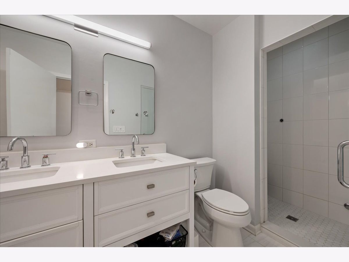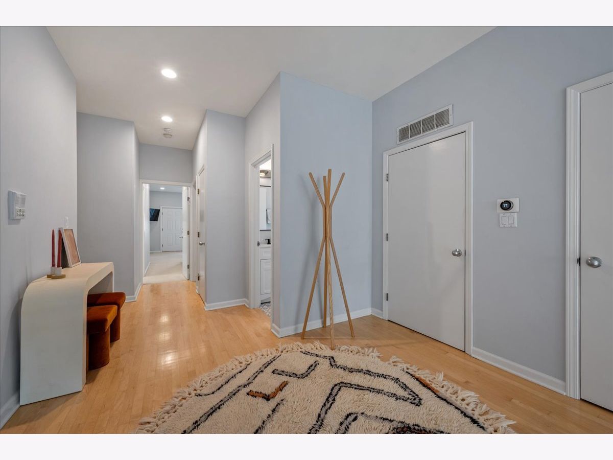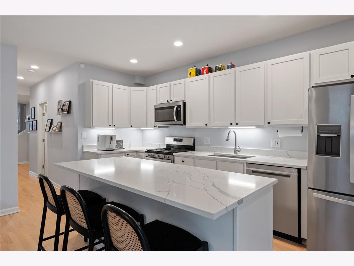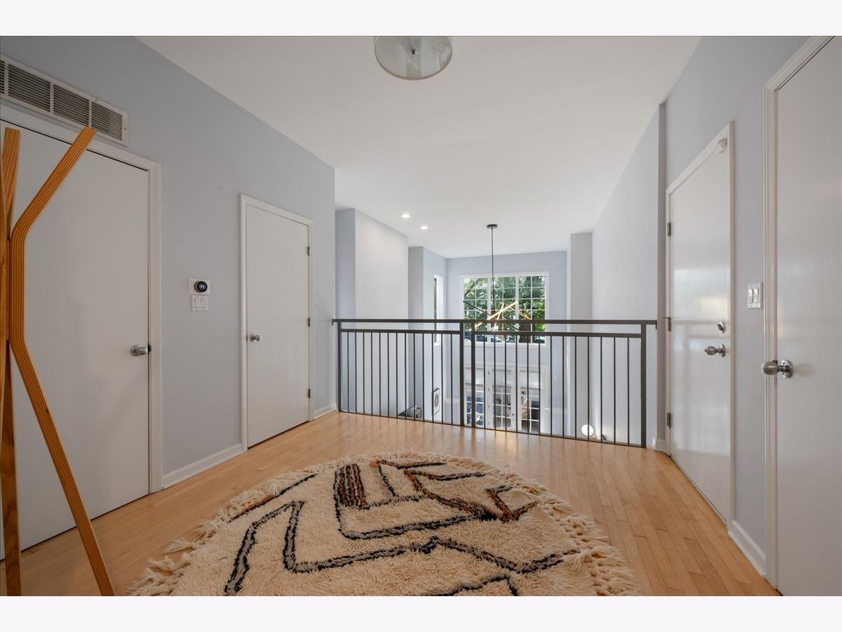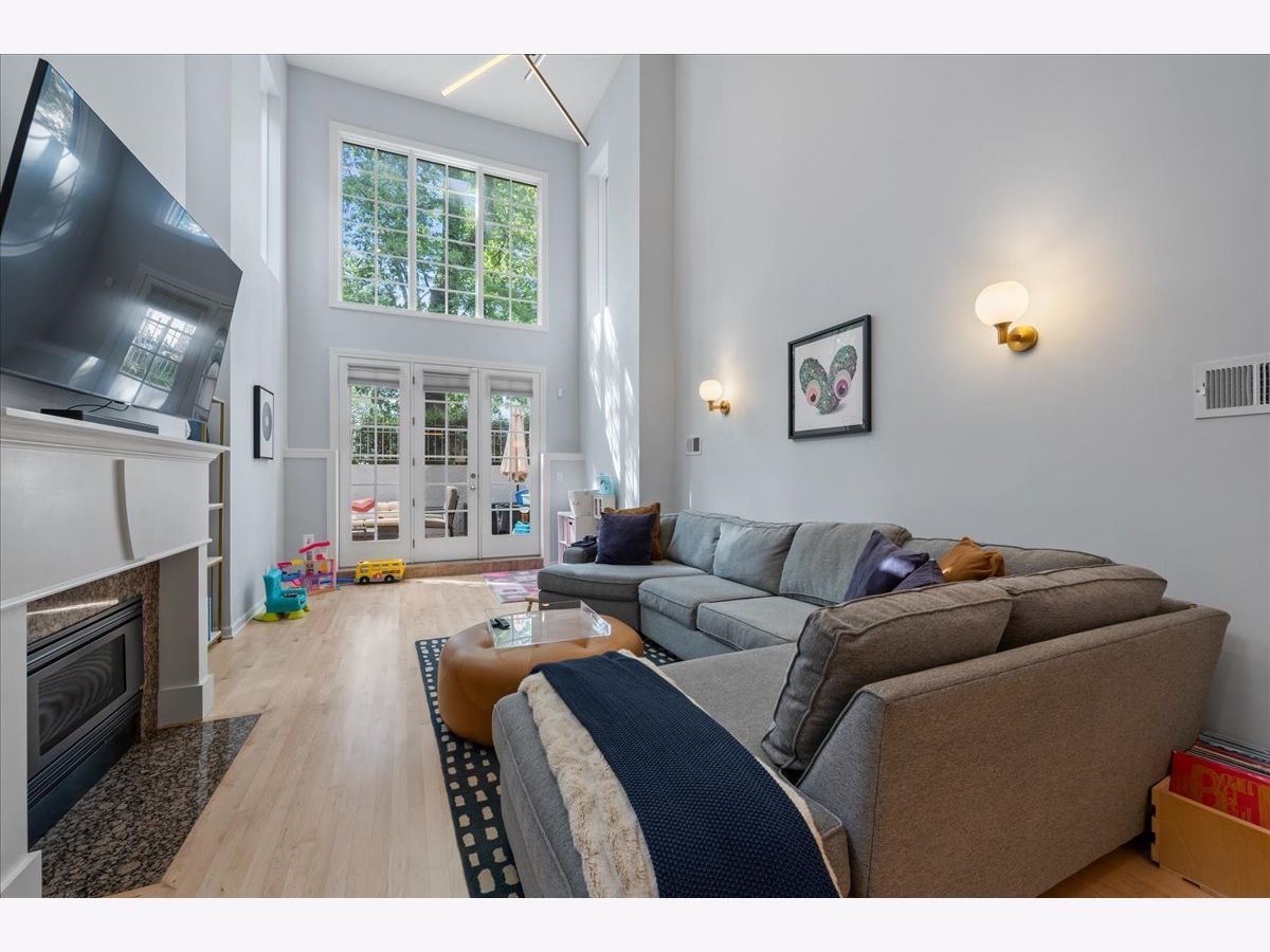 Bright and sunny south-facing 3 bed, 3 bath duplex down on a tree-lined street in the heart of Wicker Park! With soaring 20'+ ceilings and freshly refinished floors throughout (2026 - dark wood stain not shown in photos), this home welcomes you in immediately with an impressive living area. New LED recessed lighting, custom window treatments, built-in wet bar, gas fireplace, and dramatic windows flood the space with natural light. There's room for both a dining table and a work-from-home nook, plus access to a private terrace. The updated kitchen and large eat-in dining area open to a patio perfect for grilling, showcasing new quartz countertops, crisp white cabinetry, newer stainless steel appliances, and a spacious island with barstool seating. The primary suite offers a serene retreat with a recently renovated en-suite bath featuring quartz counters, modern gray cabinetry, new tile, mirrors, vanity, toilet, and both a soaking tub and walk-in shower with honeycomb tile. The first-floor bathroom has also been fully updated, and the second upstairs bath features a newer toilet (2024). Additional highlights include new carpet (2022), freshly painted walls and baseboards, updated light fixtures throughout, new patio door and screen door, reconfigured modern banister, and newer furnace and water heater (2023). In-unit washer/dryer (2019). Garage parking included, plus massive common attic storage over the garage. All within steps of Division Street's restaurants, bars, shops, parks, the 606 Trail, and Blue Line stops. Turnkey home in a prime Wicker Park location!