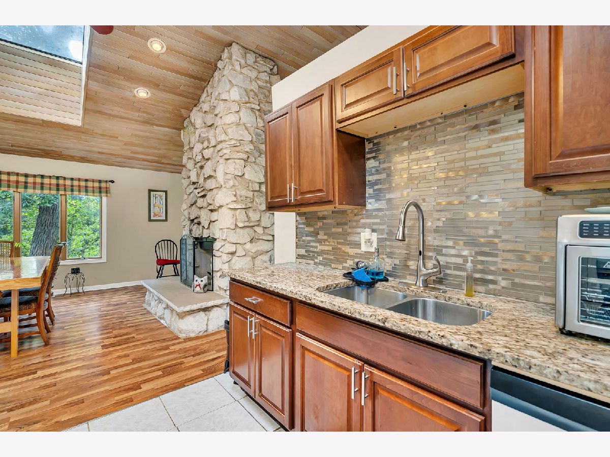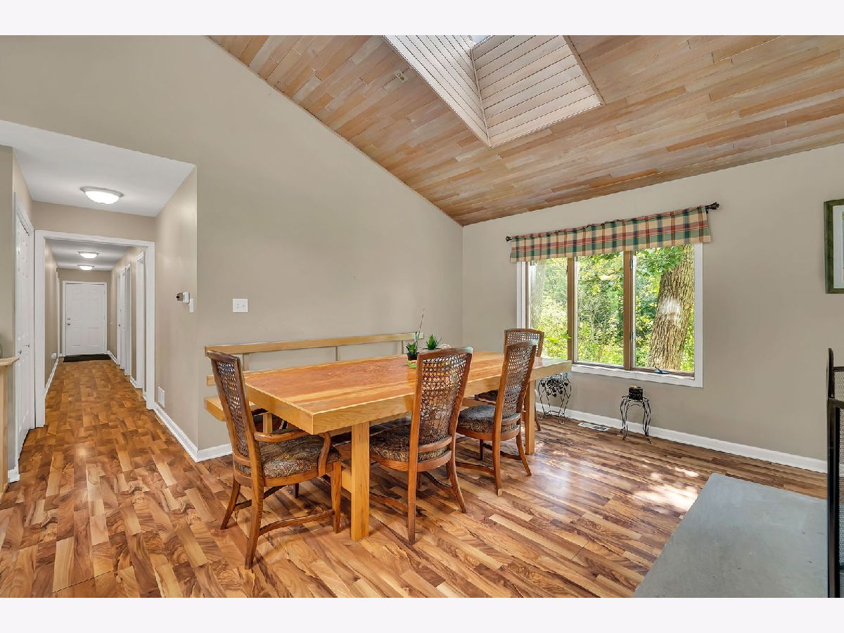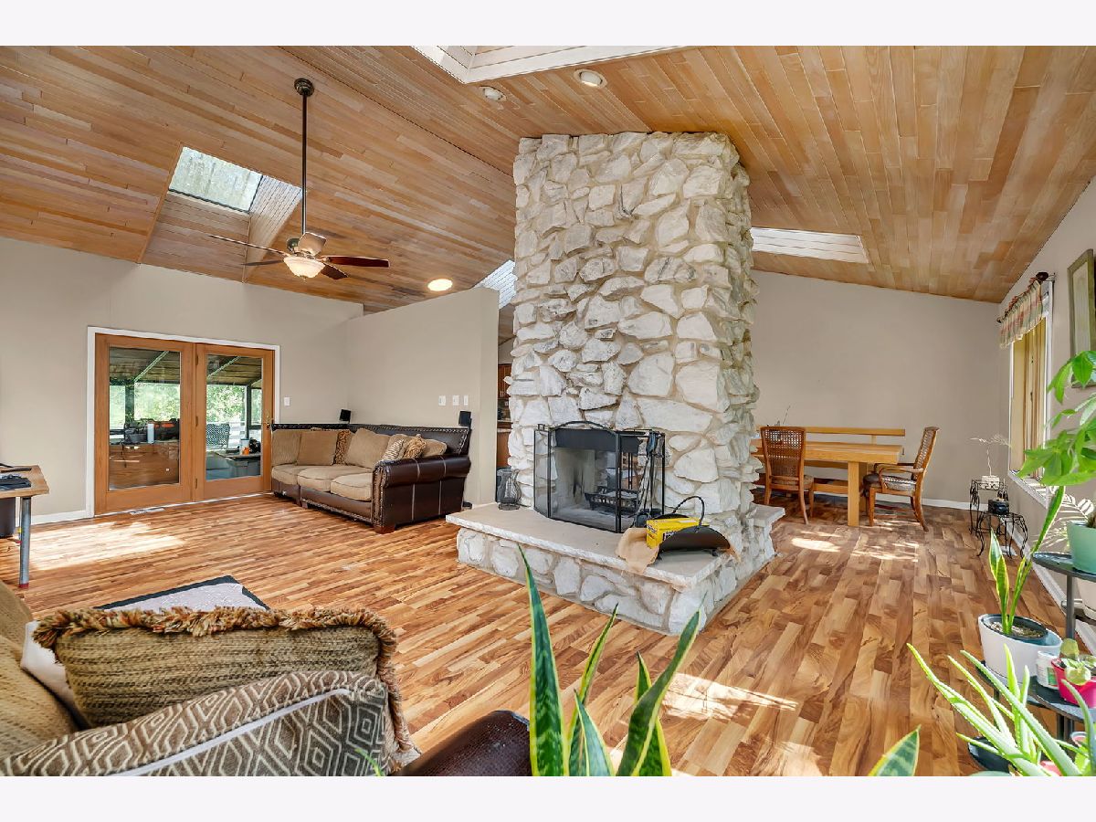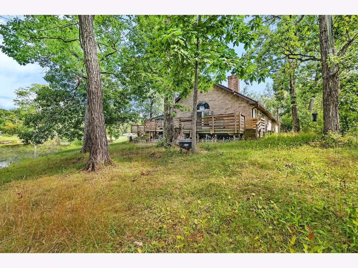 Discover this charming brick ranch set on a quiet street surrounded by mature trees, offering peace and privacy with beautiful pond views. Updates include furnace (2024), A/C (2018), washer/dryer (2024) and roof (around 10 years). This home features 3 bedrooms and 2 full bathrooms on the main level, including a primary suite with a walk-in closet and private bath. The open-concept kitchen, dining, and living areas showcase vaulted wood ceilings with oversized skylights, filling the space with natural light. A stunning stone, see-through fireplace serves as the centerpiece of the main level. Enjoy the outdoors from the wraparound deck overlooking the pond or the enclosed porch just off the kitchen-perfect for morning coffee or evening relaxation. The basement provides even more living space with a large family room, additional bedroom, full bathroom and a spacious crawl area for storage. Property includes a private well and septic system. This home provides a truly serene setting with modern comforts and is ideal for those seeking privacy, space and natural beauty. Ideal location just minutes from interstate access, schools, restaurants, bars, golf courses and so much more. Schedule your showing today!