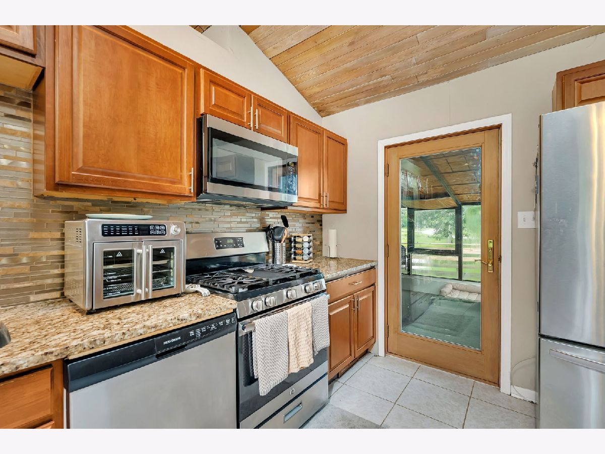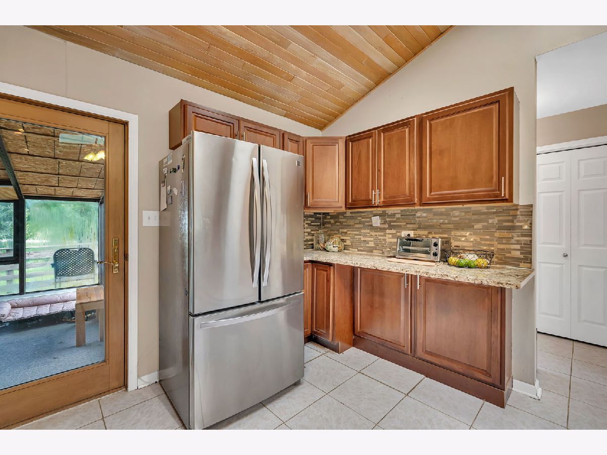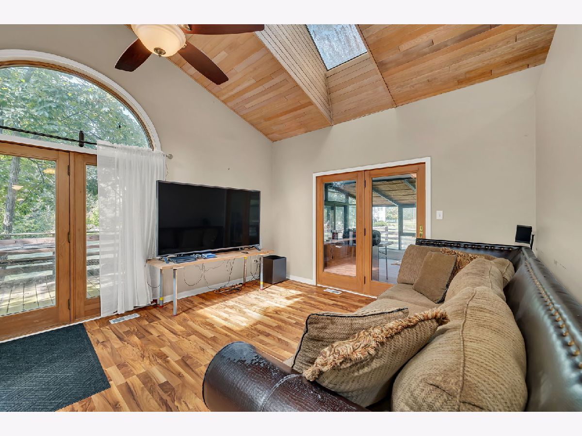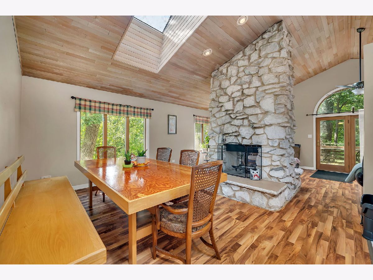 Discover this charming brick ranch set on a quiet street surrounded by mature trees, offering peace and privacy with beautiful pond views. Updates include furnace (2024), A/C (2018), washer/dryer (2024) and roof (around 10 years). This home features 3 bedrooms and 2 full bathrooms on the main level, including a primary suite with a walk-in closet and private bath. The open-concept kitchen, dining, and living areas showcase vaulted wood ceilings with oversized skylights, filling the space with natural light. A stunning stone, see-through fireplace serves as the centerpiece of the main level. Enjoy the outdoors from the wraparound deck overlooking the pond or the enclosed porch just off the kitchen-perfect for morning coffee or evening relaxation. The basement provides even more living space with a large family room, additional bedroom, full bathroom and a spacious crawl area for storage. Property includes a private well and septic system. This home provides a truly serene setting with modern comforts and is ideal for those seeking privacy, space and natural beauty. Ideal location just minutes from interstate access, schools, restaurants, bars, golf courses and so much more. Schedule your showing today!