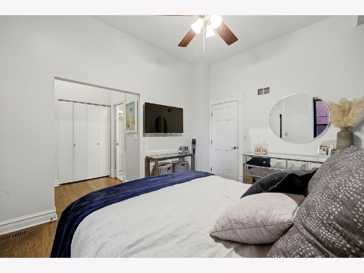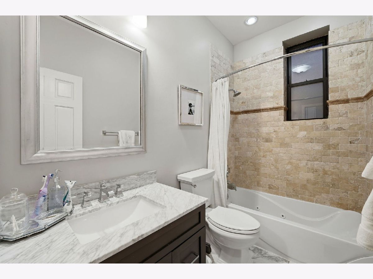This spacious 3-bedroom, 2-bathroom duplex-down residence is located in prime Lincoln Park, just steps from Trebes Park. It's situated within the highly sought-after Oscar Mayer School District. This home seamlessly blends vintage charm with thoughtful modern updates throughout. The open-concept kitchen, dining, and living area features tall ceilings, original crown molding and baseboards, hardwood floors, and fireplace. The fully renovated kitchen offers a clean, modern design ideal for both everyday living and entertaining. The primary suite includes two large closets and a beautifully renovated stone bath with a walk-in shower, along with access to a newly expanded private rear deck. A generously sized second bedroom-recently renovated-with ample closet space and an additional fully updated bathroom complete the main level. The expansive lower level boasts a large family room and a third bedroom with French doors, perfect for a home office or guest space. Additional improvements include a newer AC unit, new washer and dryer, and freshly painted interiors throughout. Enjoy unbeatable convenience with Trebes Park just across the street and a short walk to neighborhood favorites like Old Pueblo, Pequod's, Homeslice, and Range, along with numerous coffee shops. Easy street parking is available and rarely an issue. Located in the desirable Sheffield Neighbors district of Lincoln Park, this home truly stands out.