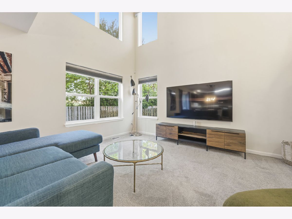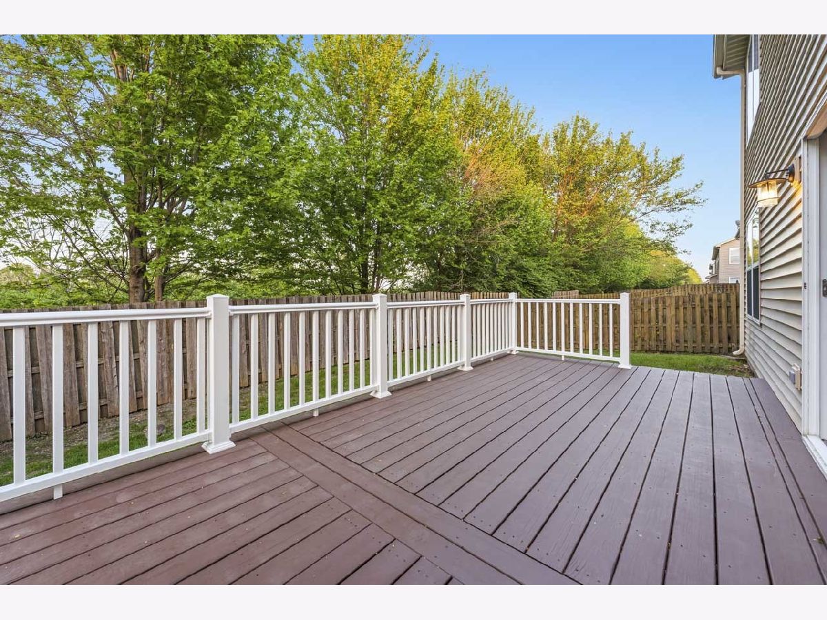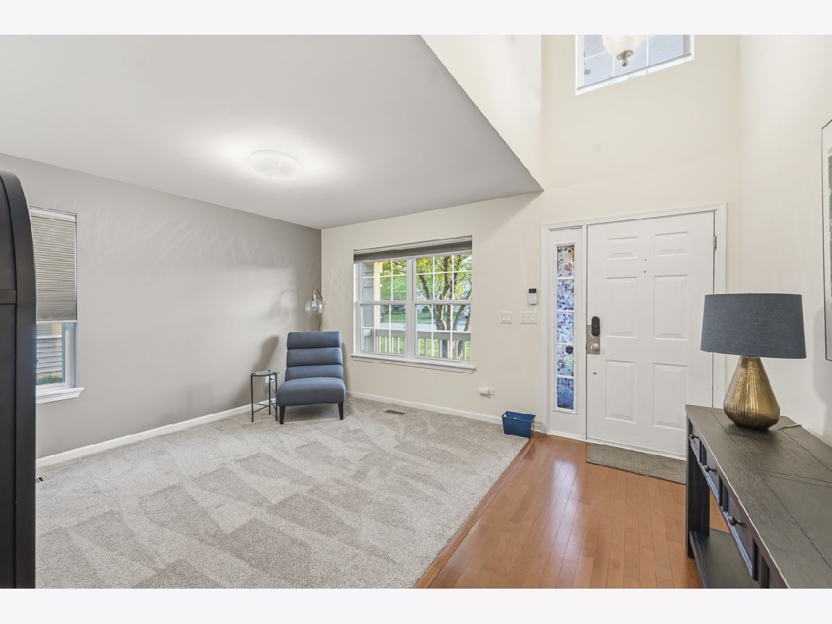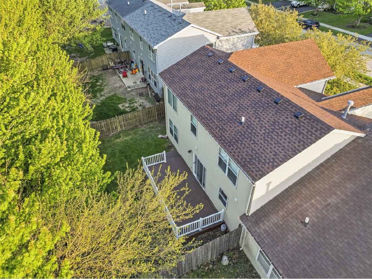 Welcome to this spacious and beautifully maintained duplex in the desirable Cambridge Crest community, ideally located within highly sought-after Plainfield School District 202. From the moment you step inside, you're greeted by a cozy den-perfect for a home office, reading nook, or flex space to fit your lifestyle. The inviting family room showcases a soaring two-story ceiling, creating an open and airy atmosphere that seamlessly flows into the breakfast area and kitchen-ideal for both everyday living and entertaining. The main level features brand NEW carpet, adding a fresh and comfortable feel throughout. The kitchen is well-appointed with an abundance of rich cherry cabinetry, Corian countertops, and sleek black stainless steel appliances. Step outside through the sliding glass doors to a wood deck overlooking a fenced-in yard, offering a private outdoor retreat perfect for relaxing or hosting gatherings. Upstairs, you'll find three generously sized bedrooms, including a primary suite featuring a walk-in closet with a built-in organizer. The shared full bathroom is thoughtfully designed with a dual sink vanity and tub/shower combination. The main level also includes a convenient half bath and laundry room for added functionality. An added value of a living room and primary bedroom TV's staying! Brand NEW roof (4/2026), A/C and water heater were replaced in 2024, Furnace replaced in 2022, Driveway has been freshly sealcoated - April 2026. Combining comfort, space, and a fantastic location, this home is a wonderful opportunity you won't want to miss.