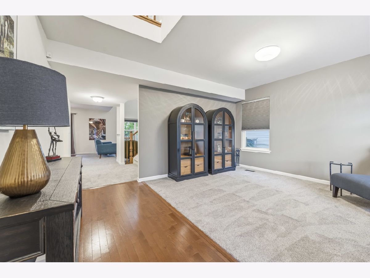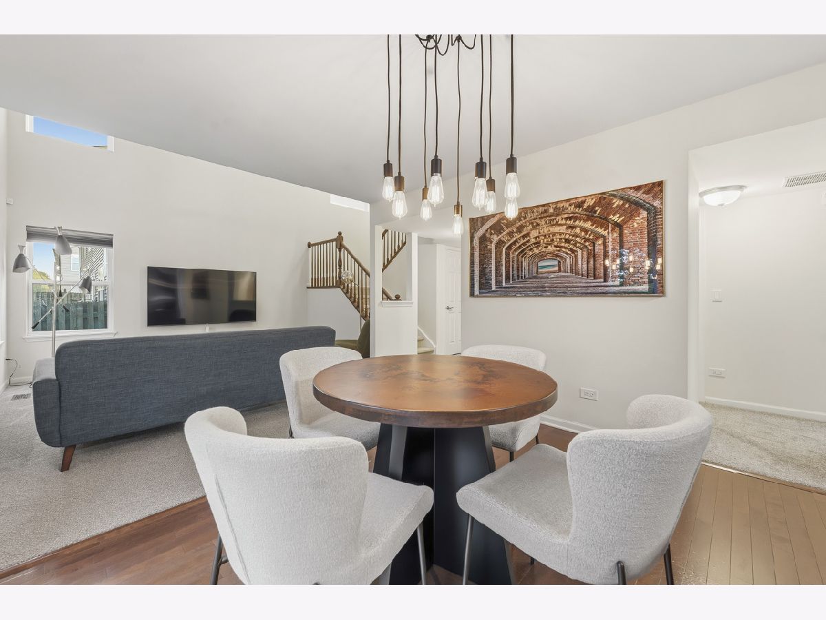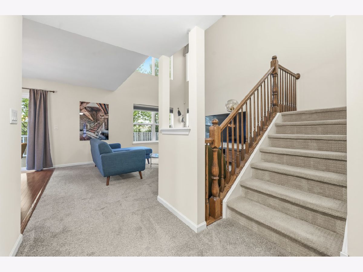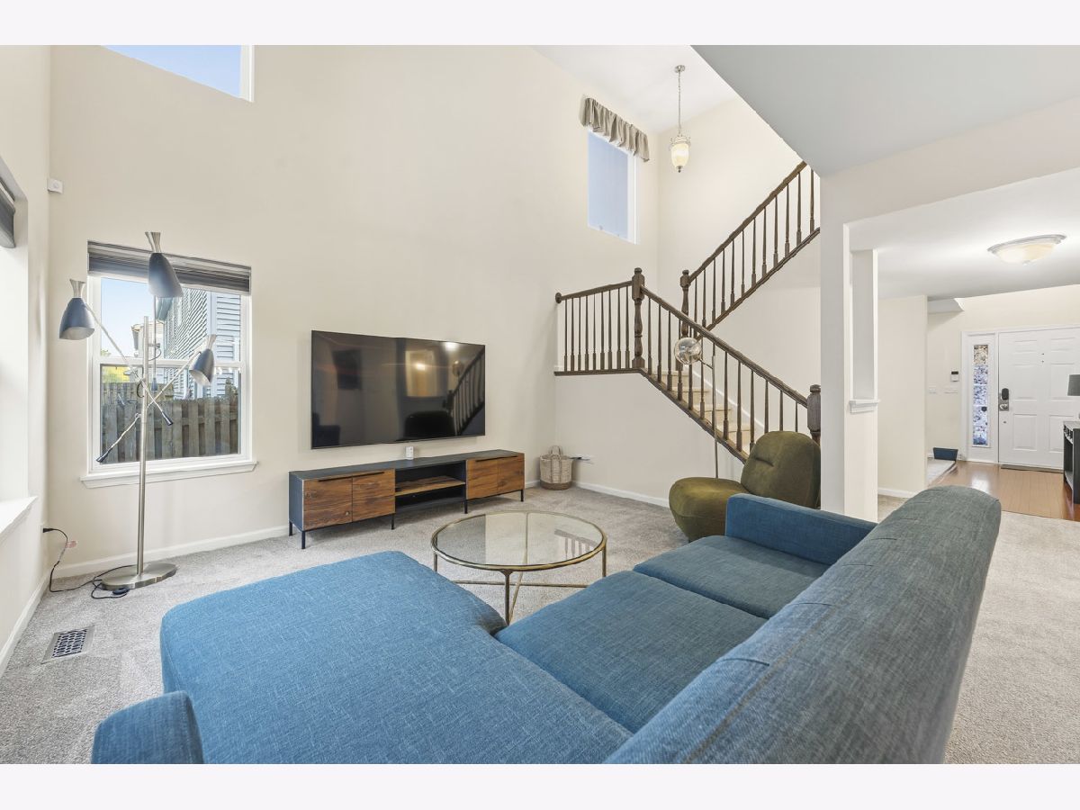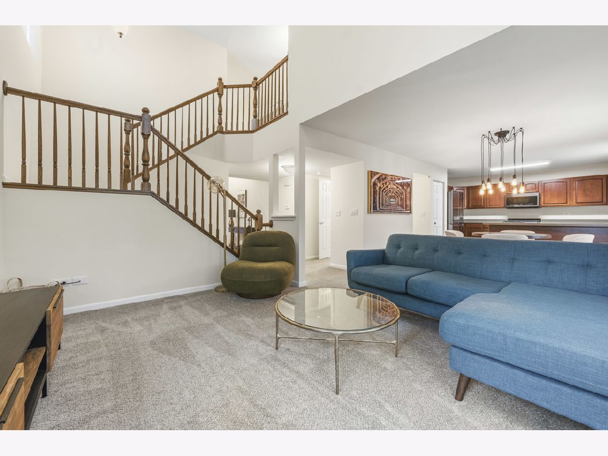 Welcome to this spacious and beautifully maintained duplex in the desirable Cambridge Crest community, ideally located within highly sought-after Plainfield School District 202. From the moment you step inside, you're greeted by a cozy den-perfect for a home office, reading nook, or flex space to fit your lifestyle. The inviting family room showcases a soaring two-story ceiling, creating an open and airy atmosphere that seamlessly flows into the breakfast area and kitchen-ideal for both everyday living and entertaining. The main level features brand NEW carpet, adding a fresh and comfortable feel throughout. The kitchen is well-appointed with an abundance of rich cherry cabinetry, Corian countertops, and sleek black stainless steel appliances. Step outside through the sliding glass doors to a wood deck overlooking a fenced-in yard, offering a private outdoor retreat perfect for relaxing or hosting gatherings. Upstairs, you'll find three generously sized bedrooms, including a primary suite featuring a walk-in closet with a built-in organizer. The shared full bathroom is thoughtfully designed with a dual sink vanity and tub/shower combination. The main level also includes a convenient half bath and laundry room for added functionality. An added value of a living room and primary bedroom TV's staying! Brand NEW roof (4/2026), A/C and water heater were replaced in 2024, Furnace replaced in 2022, Driveway has been freshly sealcoated - April 2026. Combining comfort, space, and a fantastic location, this home is a wonderful opportunity you won't want to miss.