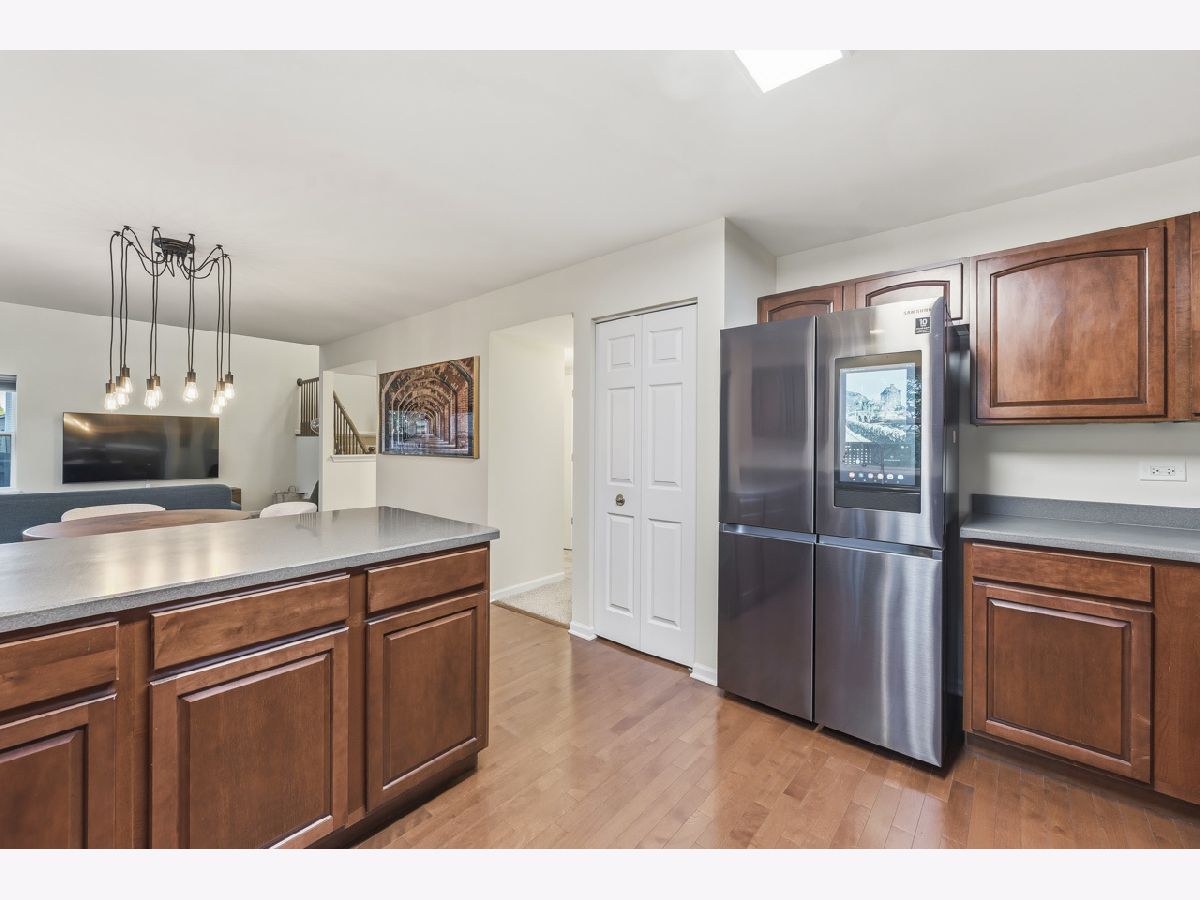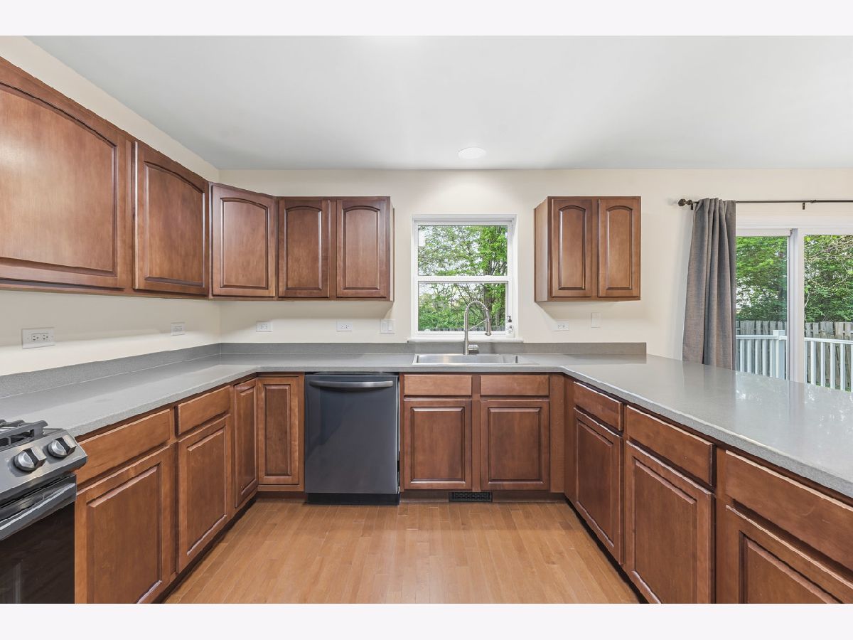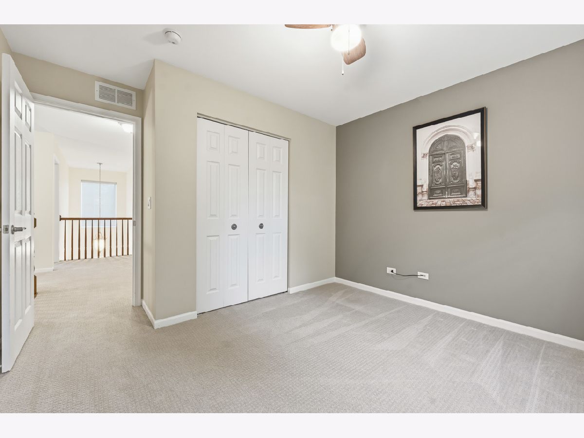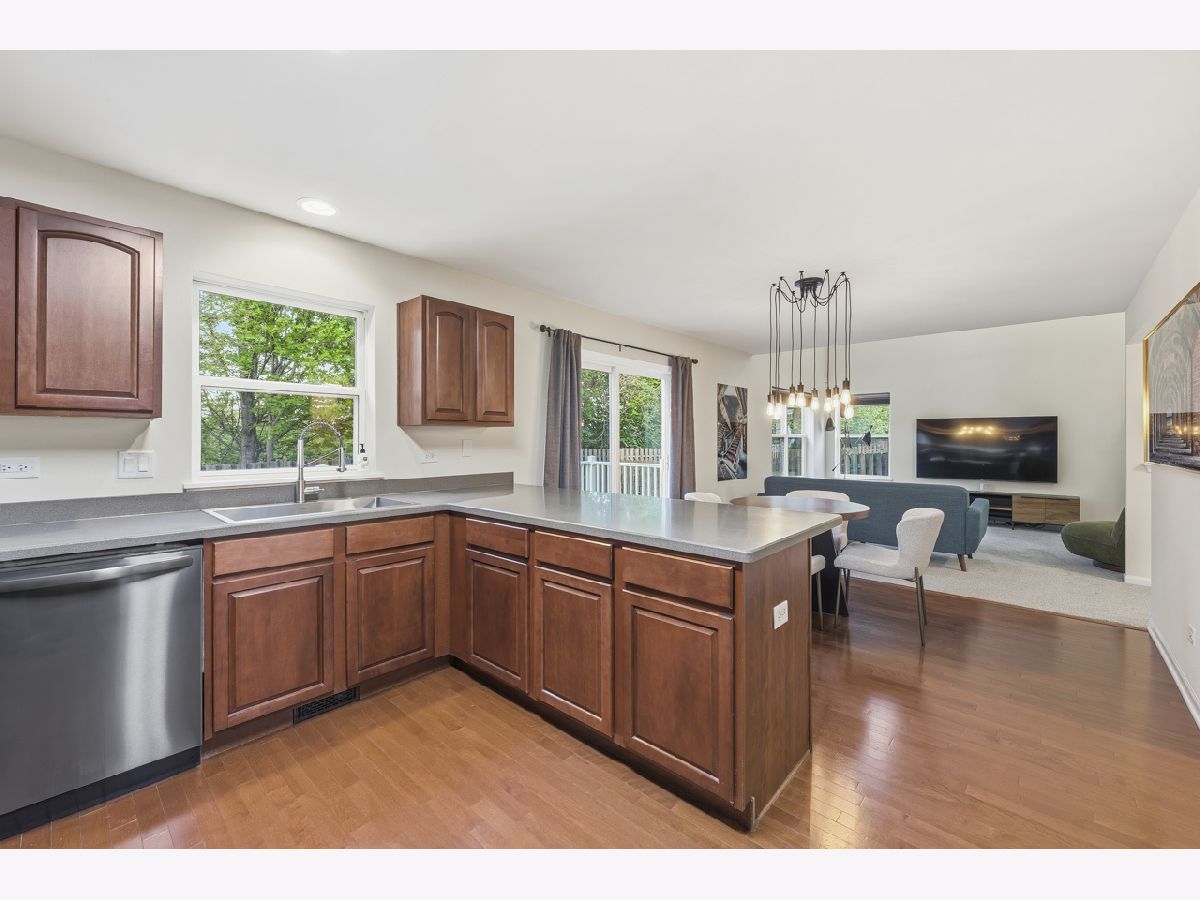Welcome to this spacious and beautifully maintained duplex in the desirable Cambridge Crest community, ideally located within highly sought-after Plainfield School District 202. From the moment you step inside, you're greeted by a cozy den-perfect for a home office, reading nook, or flex space to fit your lifestyle. The inviting family room showcases a soaring two-story ceiling, creating an open and airy atmosphere that seamlessly flows into the breakfast area and kitchen-ideal for both everyday living and entertaining. The main level features brand NEW carpet, adding a fresh and comfortable feel throughout. The kitchen is well-appointed with an abundance of rich cherry cabinetry, Corian countertops, and sleek black stainless steel appliances. Step outside through the sliding glass doors to a wood deck overlooking a fenced-in yard, offering a private outdoor retreat perfect for relaxing or hosting gatherings. Upstairs, you'll find three generously sized bedrooms, including a primary suite featuring a walk-in closet with a built-in organizer. The shared full bathroom is thoughtfully designed with a dual sink vanity and tub/shower combination. The main level also includes a convenient half bath and laundry room for added functionality. An added value of a living room and primary bedroom TV's staying! Brand NEW roof (4/2026), A/C and water heater were replaced in 2024, Furnace replaced in 2022, Driveway has been freshly sealcoated - April 2026. Combining comfort, space, and a fantastic location, this home is a wonderful opportunity you won't want to miss.