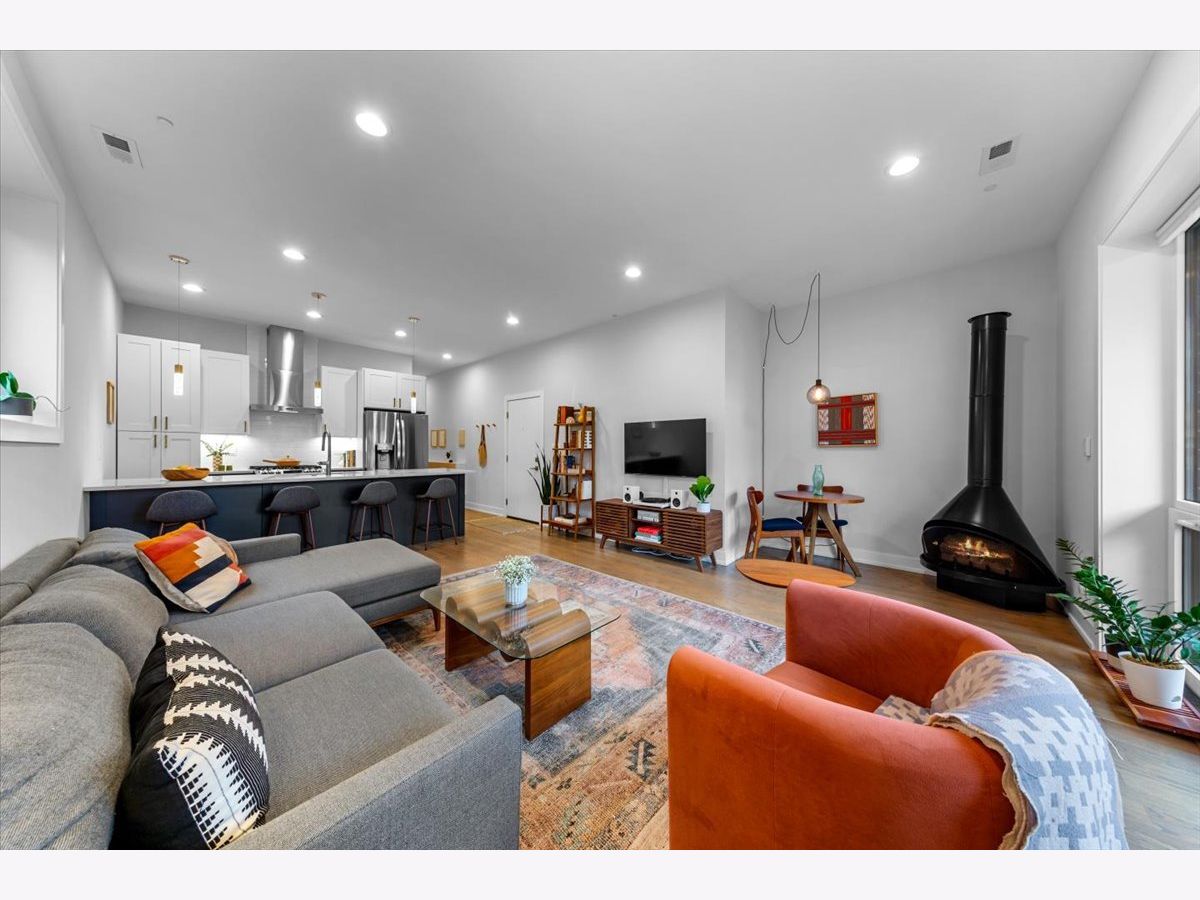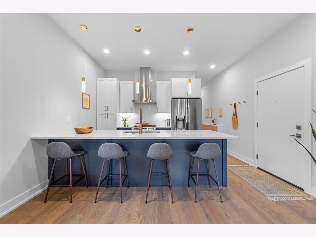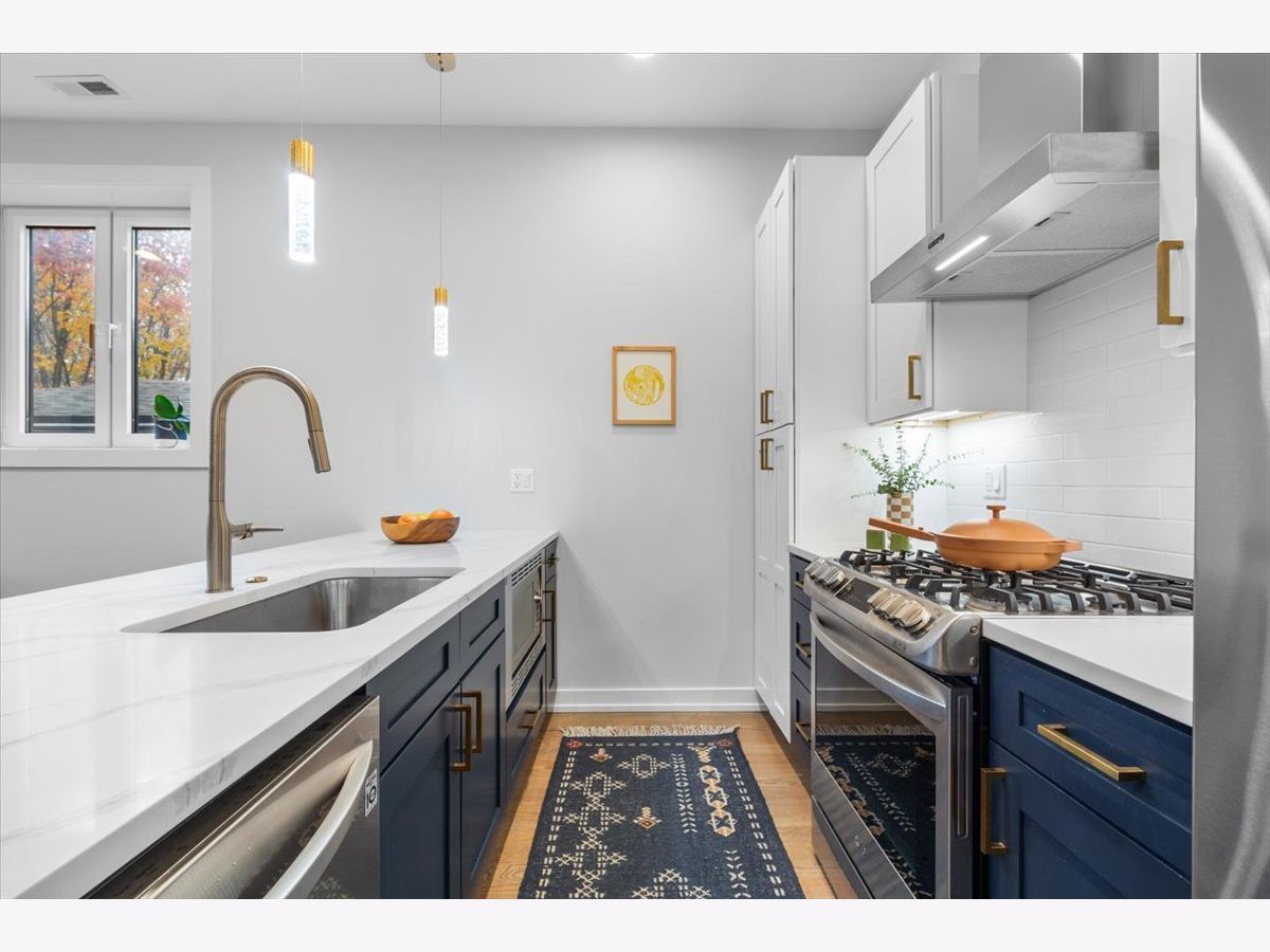 Experience refined living in this all-brick, modern 2-bedroom, 2-bath condo, perfectly situated across from the tranquil expanse of Winnemac Park. This newer construction home showcases an open floor plan bathed in natural light, featuring custom two-tone kitchen cabinets, quartz countertops, and a spacious island ideal for entertaining. The kitchen is equipped with premium LG stainless steel appliances. The bright, combined living and dining areas offer a seamless flow, enhanced by the elegance of hardwood floors. Retreat to the luxurious main bedroom suite which shows a generous walk-in closet. This suite is completed with spa-like bathroom with double vanities and a walk-in shower. Additional amenities include charming decorative lighting throughout, in-unit laundry, a covered garage parking spot, and a private front-facing balcony for outdoor enjoyment. Nestled near the vibrant communities of Lincoln Square and Andersonville, this pet-friendly residence offers an exquisite blend of comfort and convenience. Winnemac Park is a neighborhood favorite, offering a picturesque prairie garden, peaceful nature trails, three softball fields, a soccer and football field, a fieldhouse, and a playground. Ideally situated in the highly sought-after Amundsen High School district, this home also provides easy access to public transportation and all the amenities of vibrant Lincoln Square and Ravenswood.