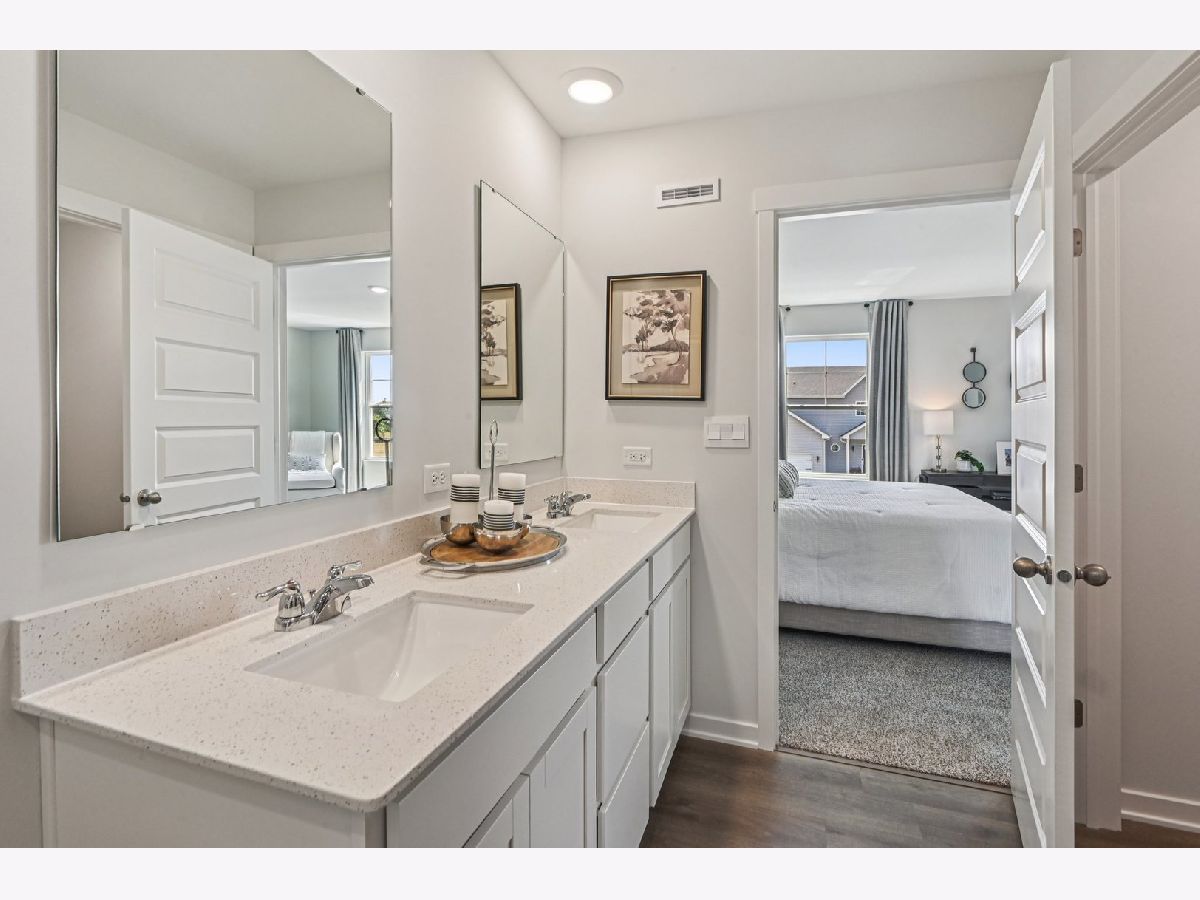 Discover yourself at 2150 Sandhill Court in Joliet, IL a beautiful new home in our Prairie Landing community. This home will be ready for a May delivery ! This home site includes a fully sodded yard. The Bellamy floor plan offers over 2,051 square feet of living space with a flex room, 4 bedrooms, 2.5 baths, 2-car garage and a full basement. Enjoy this home's open-concept great room and kitchen, which gives you the perfect space for entertaining friends and family. Your kitchen features designer cabinetry with quartz countertops and a pantry. Experience your private get away with a large primary suite on its own side of the second floor with a deluxe bathroom containing a raised dual quartz vanity and walk-in closet. Convenient second-floor walk-in laundry room and all secondary bedrooms upstairs with a full second bath and linen closet. Luxury vinyl plank flooring throughout the main level living space, bathrooms, and laundry. All Chicago homes include our America's Smart Home Technology. Photos are of similar home and model home. Actual home built may vary.