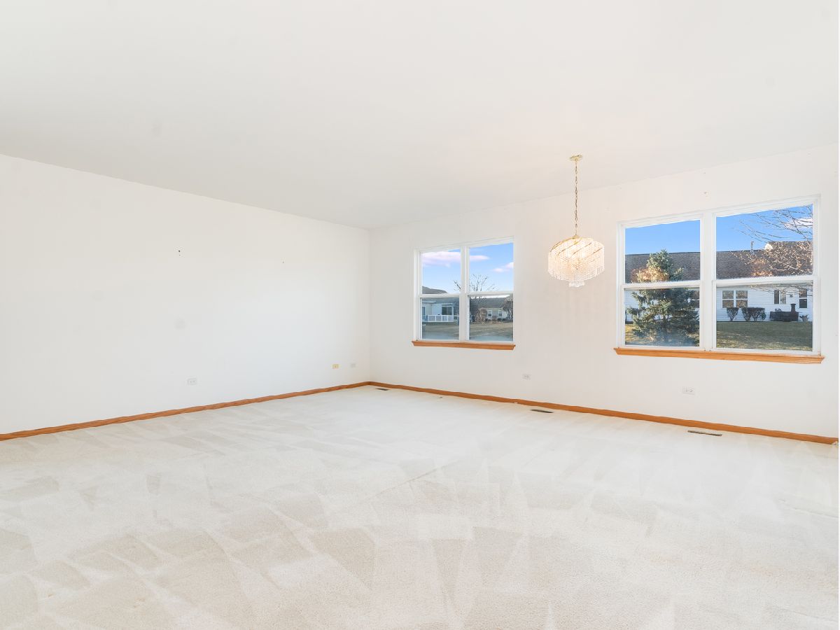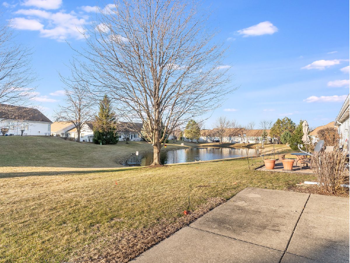 Sprawling ranch townhome with stunning pond views in the sought after 55+ Carillon community. With nearly 1,900 square feet of bright living space, this home offers tons of windows, a spacious formal dining area, and a large family room made for entertaining. The kitchen features hardwood flooring, an island, abundant cabinet space, an oversized pantry, and a sliding door leading to the patio with views of the pond. Huge primary suite with vaulted ceiling, walk in closet, and private bath with soaking tub, separate shower, and dual sinks. Full guest bath, first-floor laundry, and utility room with a deep utility sink. Enjoy resort style amenities including 24 hour security, golf course, pool, clubhouse, fitness center, tennis, pickleball, and more. Terrific location near I 55 and Weber Rd.