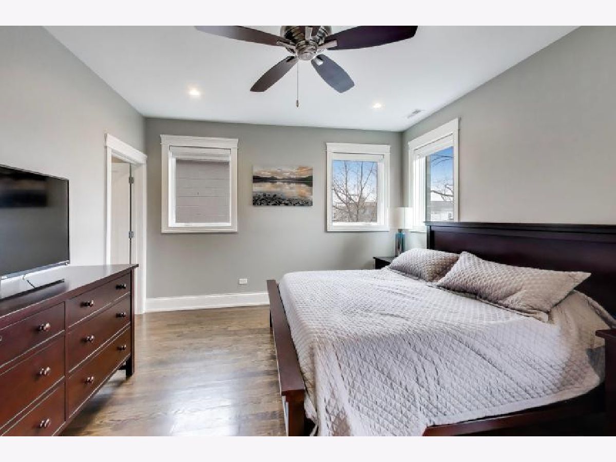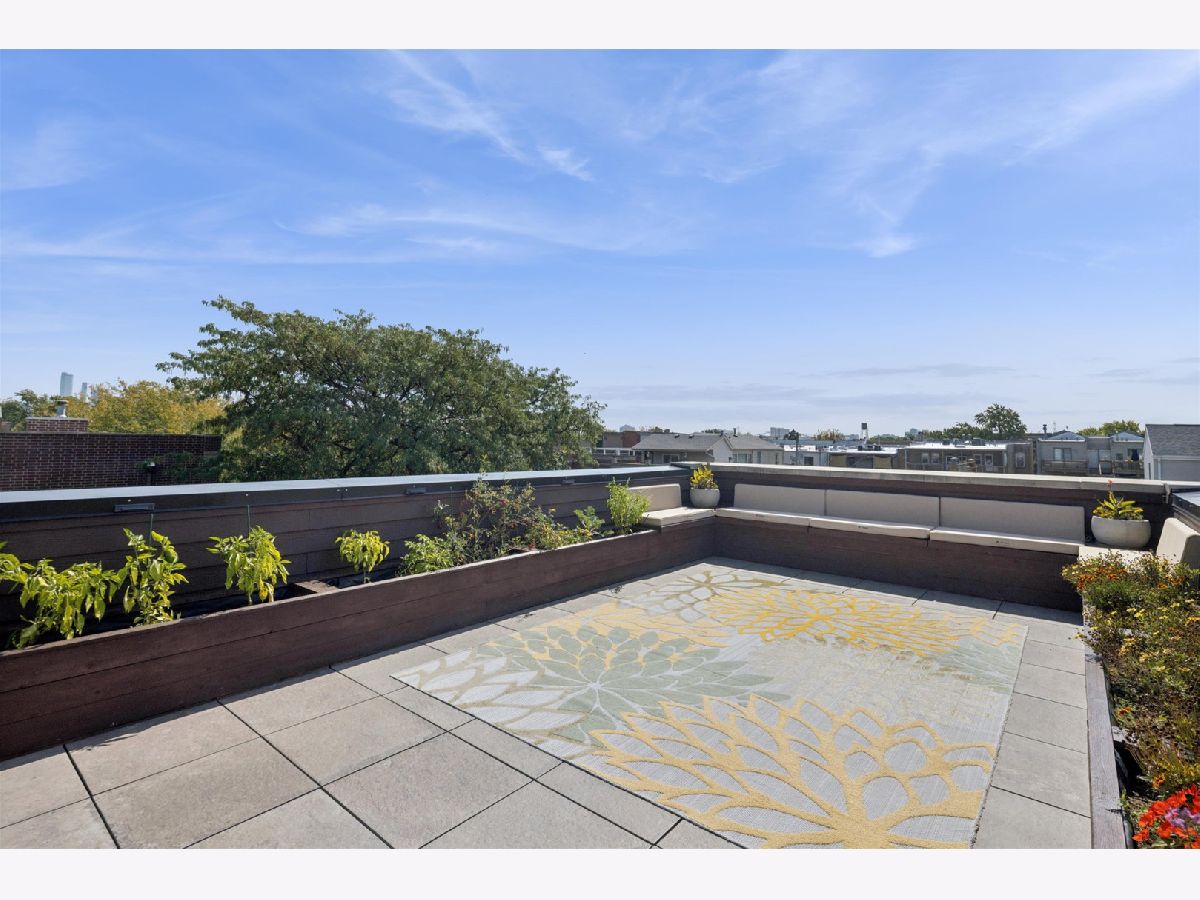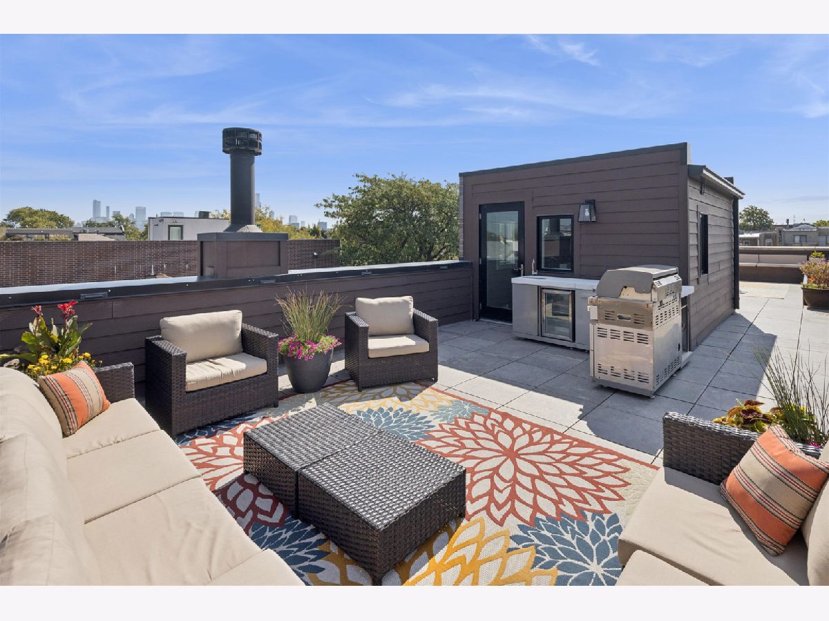 Stunning newer-construction single-family home on one of West Town's best blocks, located within the Mitchell School District. Built in 2019, this 4BD + 1 flex room, 3.2BA home offers approximately 3,608 square feet of living space across three levels. The open floor plan features hardwood floors, oversized windows, and high ceilings. The kitchen includes quartz and walnut countertops, a large island, stainless steel appliances, and custom cabinetry. The primary suite offers dual vanities, a steam shower with body sprays, and a walk-in closet. The finished lower level includes a wet bar with a beverage and wine refrigerator. The expansive rooftop deck features an outdoor kitchen, stunning city views, and multiple seating areas. Additional highlights include a fireplace in the living room, two laundry areas (one with a washer and dryer installed), EV-ready 220-volt wiring, and flush-mounted speakers throughout. Located in a prime Chicago location with easy access to restaurants, shops, parks, and public transportation, this home offers an ideal urban lifestyle.
