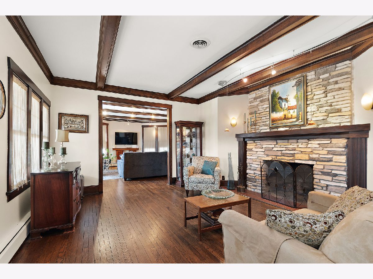 Welcome to this beautifully maintained 3-bedroom, 3-bath home offering spacious living, character-rich details, and unbeatable convenience. Each bedroom features a walk-in closet, LVP flooring and freshly painted while the expansive primary suite includes a private sitting room-perfect for unwinding after a long day. Enjoy wood-beamed ceilings in both the living and family rooms, adding warmth and timeless charm. The eat-in kitchen boasts a massive walk-in pantry and flows effortlessly into the living areas, ideal for everyday living and entertaining. The fully finished basement includes a huge recreation room offering endless possibilities for play, fitness, or media. Step outside to a stone brick patio and relax in your own studio space-attached to a heated 2.5-car detached garage-perfect for band practice, art studio, or work out area. The inviting front porch, complete with ceiling fans, offers a relaxing spot to enjoy the peaceful, private corner lot. All of this within walking distance to the Homewood Metra station, shops, dining, and parks. A rare find blending comfort, space, and location!