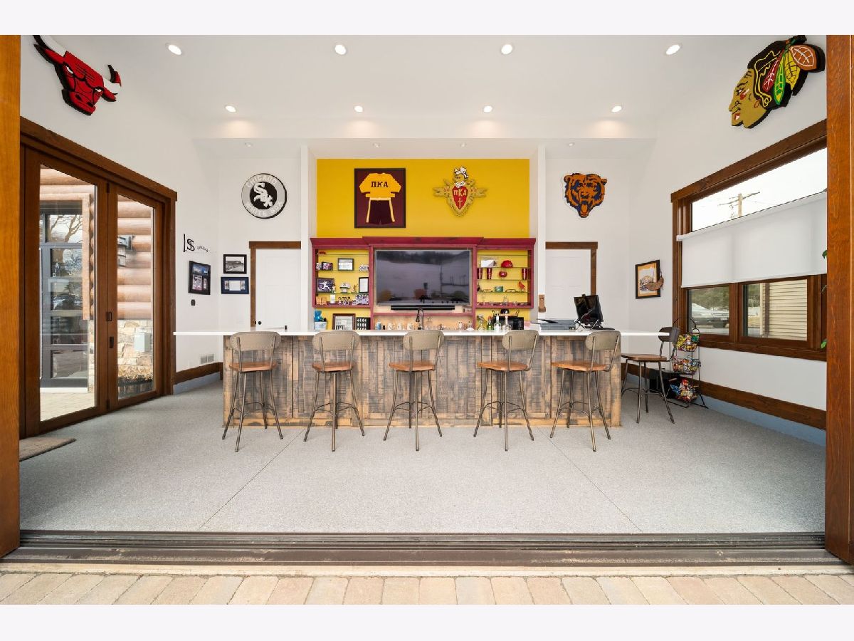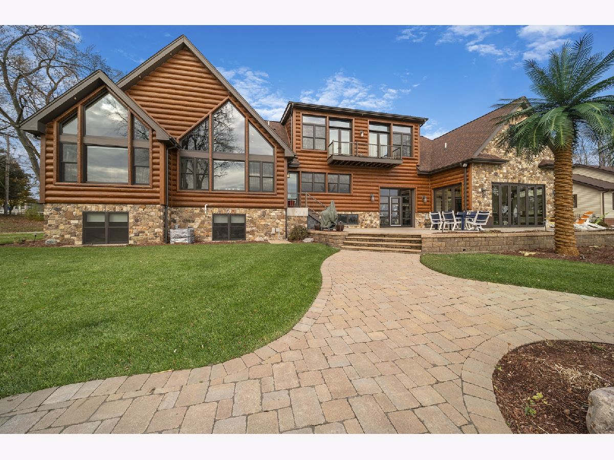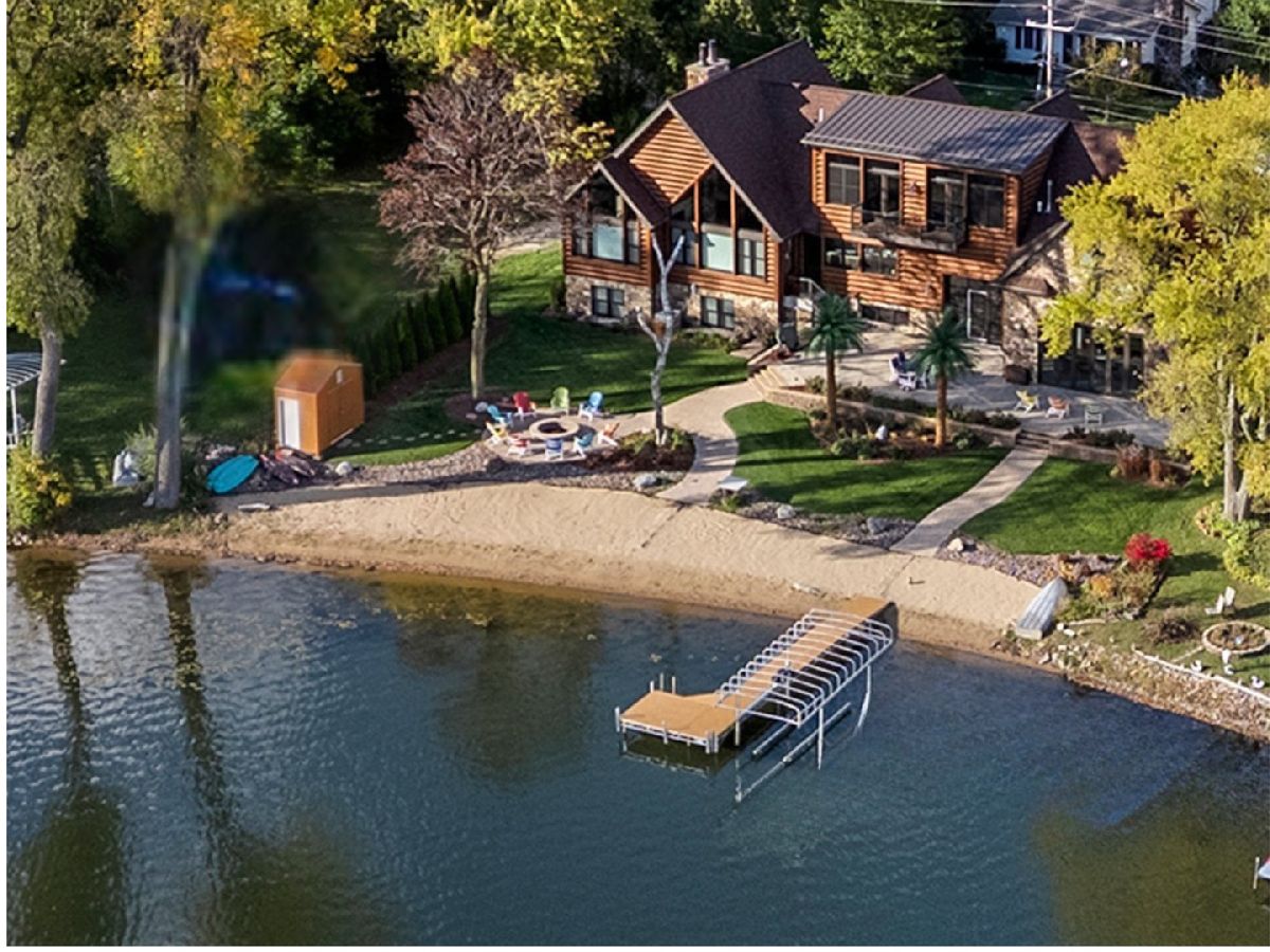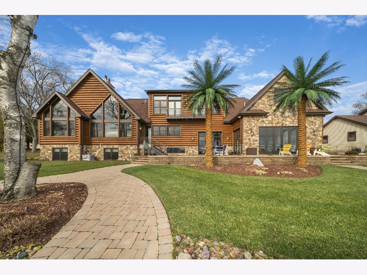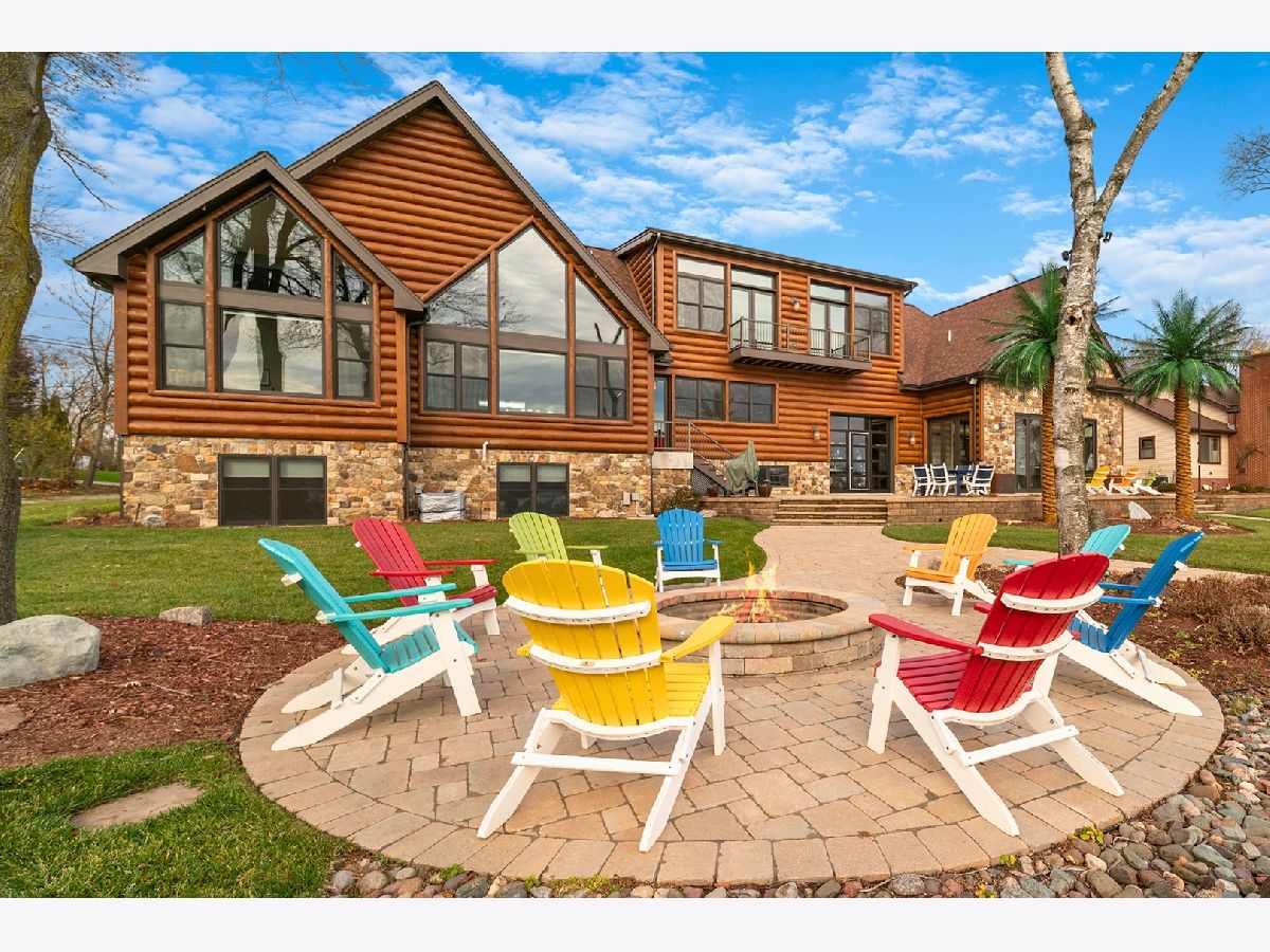 Welcome to Paradise on Lake Shangrila-an extraordinary furnished waterfront estate where luxury lakefront living meets lifestyle and income potential in Southeast Wisconsin. Located in Bristol, WI, just a short drive from Chicago and Milwaukee, this one-of-a-kind property blends high-end design, privacy, and resort-style amenities. From the moment you arrive, the striking exterior-crafted with low-maintenance fiber-concrete logs and hand-selected stone-sets the tone for the craftsmanship throughout. Outside, 120 feet of manicured sandy beachfront, lifelike palm trees, a 10-person firepit, and curated landscape lighting create a private resort atmosphere, while expansive patios and walkways seamlessly connect indoor and outdoor living for effortless entertaining. Inside, the Aspen-inspired interior features soaring A-frame architecture and floor-to-ceiling south-facing windows that flood the home with natural light, flowing into a chef's kitchen with bold custom cabinetry, a 12-foot quartz island, Sub-Zero refrigerator, and premium designer appliances. Designed for both relaxation and recreation, the home offers a luxurious primary suite with a spa-inspired steam shower, private fitness room, and a state-of-the-art golf simulator and theater. The oversized heated garage with pass-through doors opens to an epic indoor-outdoor bar with floor-to-ceiling sliding glass doors, perfect for year-round enjoyment. With no HOA or deed restrictions, this property is ideal for short-term rental investors seeking strong income potential in a growing luxury vacation market. Set along the 185-acre Lake Shangrila with 6.2 miles of shoreline, enjoy boating, kayaking, fishing, and lakeside living, with nearby access to skiing at Wilmot Mountain, scenic forest preserves, golf courses, dining, and convenient access to both Chicago and Milwaukee. This is more than a home-it's a fully furnished waterfront lifestyle investment and one of the most iconic properties in Southeast Wisconsin.