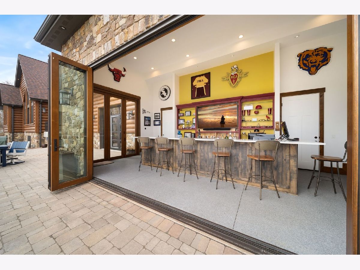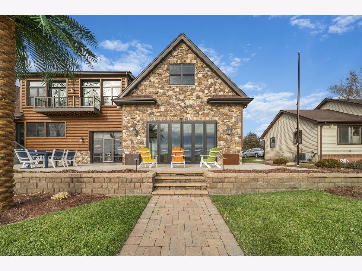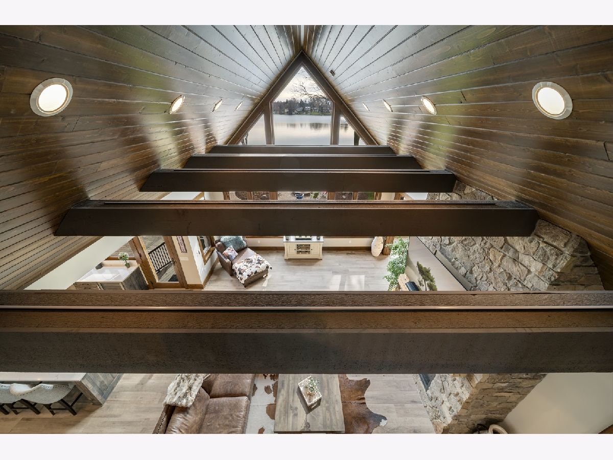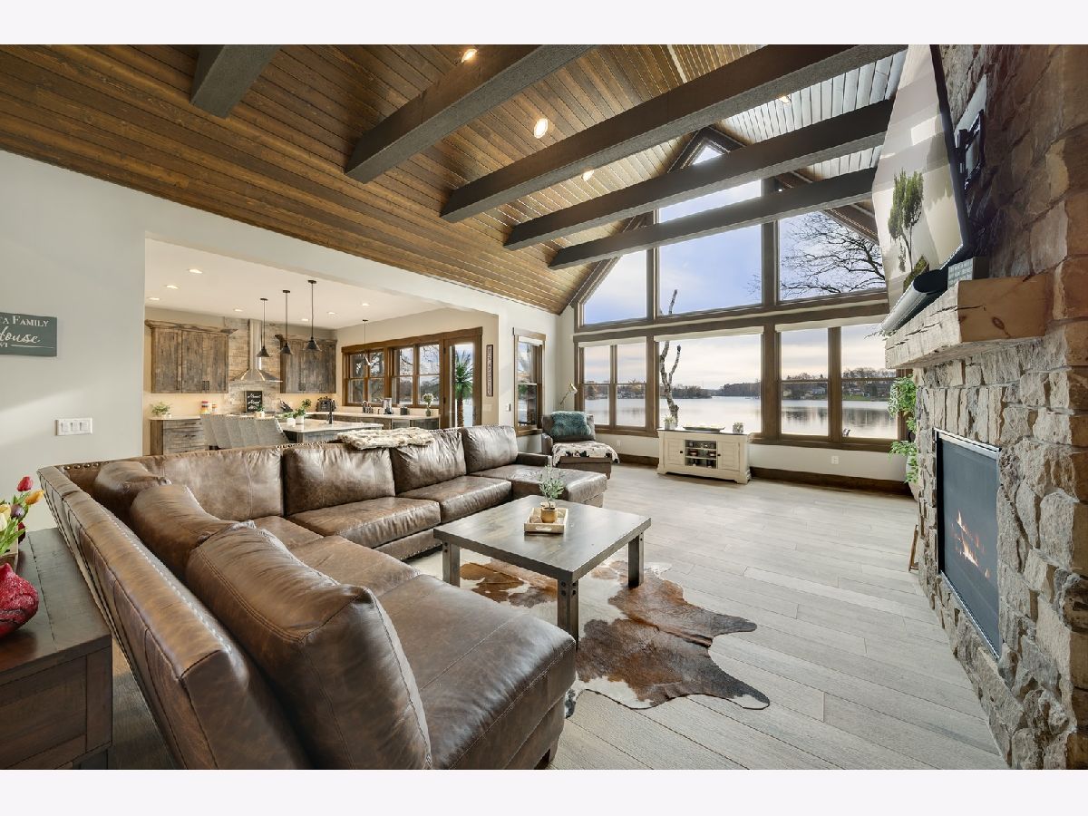 Welcome to Paradise on Lake Shangrila-an extraordinary furnished waterfront estate where luxury lakefront living meets lifestyle and income potential in Southeast Wisconsin. Located in Bristol, WI, just a short drive from Chicago and Milwaukee, this one-of-a-kind property blends high-end design, privacy, and resort-style amenities. From the moment you arrive, the striking exterior-crafted with low-maintenance fiber-concrete logs and hand-selected stone-sets the tone for the craftsmanship throughout. Outside, 120 feet of manicured sandy beachfront, lifelike palm trees, a 10-person firepit, and curated landscape lighting create a private resort atmosphere, while expansive patios and walkways seamlessly connect indoor and outdoor living for effortless entertaining. Inside, the Aspen-inspired interior features soaring A-frame architecture and floor-to-ceiling south-facing windows that flood the home with natural light, flowing into a chef's kitchen with bold custom cabinetry, a 12-foot quartz island, Sub-Zero refrigerator, and premium designer appliances. Designed for both relaxation and recreation, the home offers a luxurious primary suite with a spa-inspired steam shower, private fitness room, and a state-of-the-art golf simulator and theater. The oversized heated garage with pass-through doors opens to an epic indoor-outdoor bar with floor-to-ceiling sliding glass doors, perfect for year-round enjoyment. With no HOA or deed restrictions, this property is ideal for short-term rental investors seeking strong income potential in a growing luxury vacation market. Set along the 185-acre Lake Shangrila with 6.2 miles of shoreline, enjoy boating, kayaking, fishing, and lakeside living, with nearby access to skiing at Wilmot Mountain, scenic forest preserves, golf courses, dining, and convenient access to both Chicago and Milwaukee. This is more than a home-it's a fully furnished waterfront lifestyle investment and one of the most iconic properties in Southeast Wisconsin.